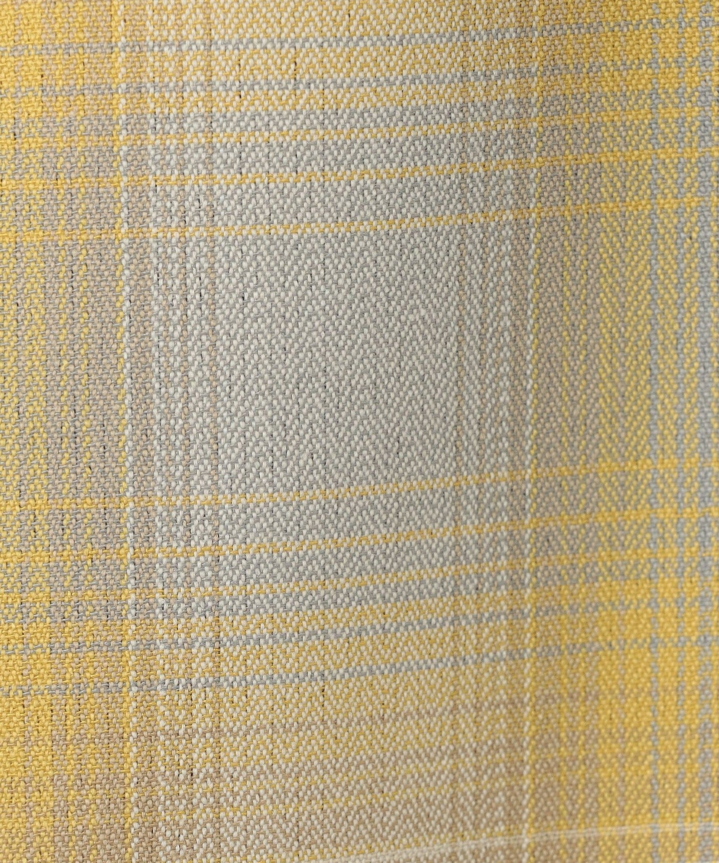 A pre-dyed check material made from tightly twisted polyester yarn.