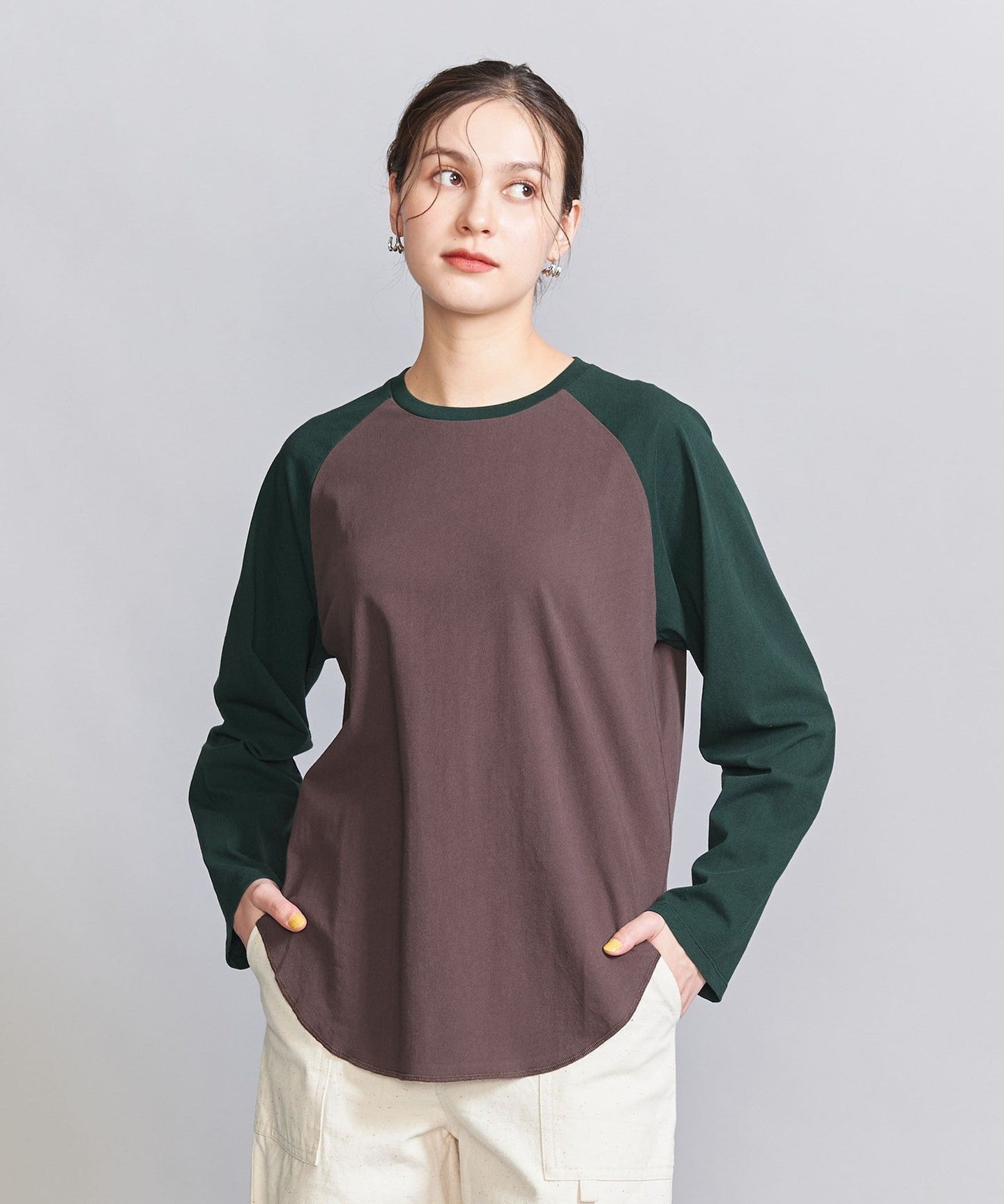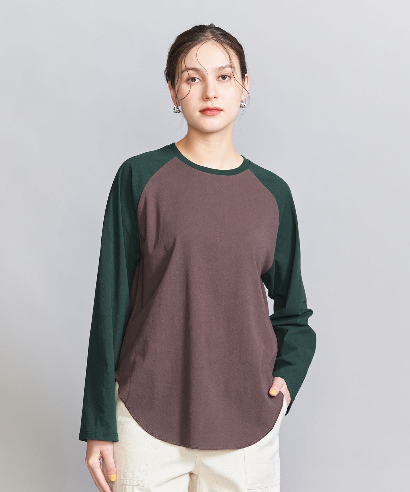 A raglan sleeve T-shirt with a muted color scheme that exudes a retro feel.
