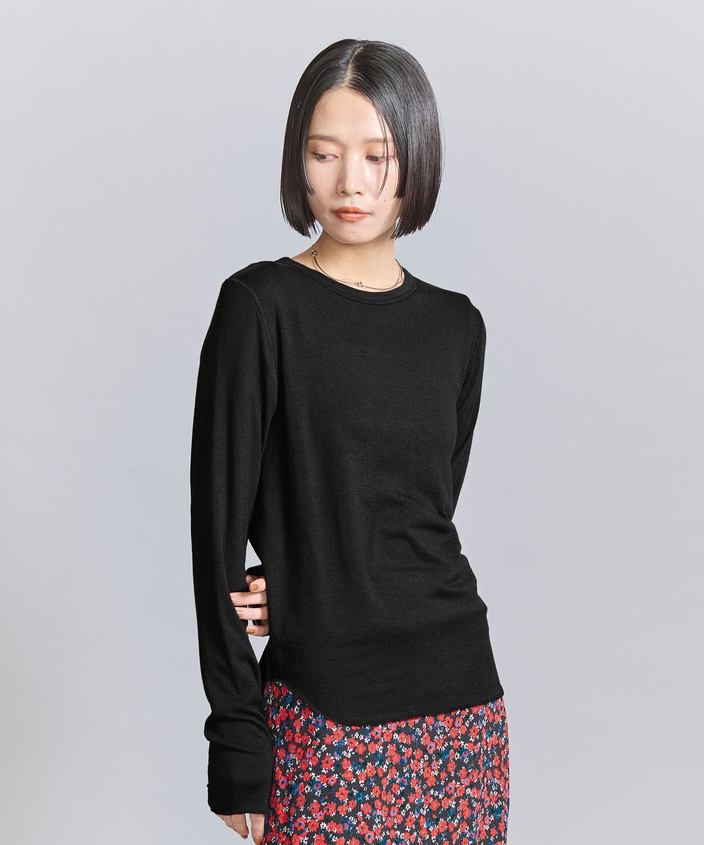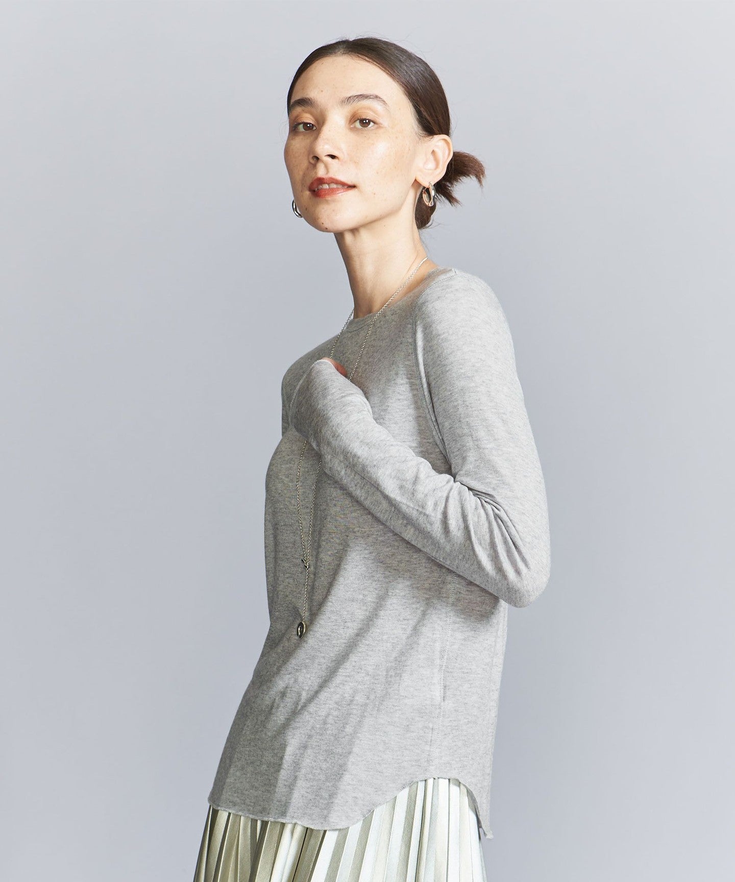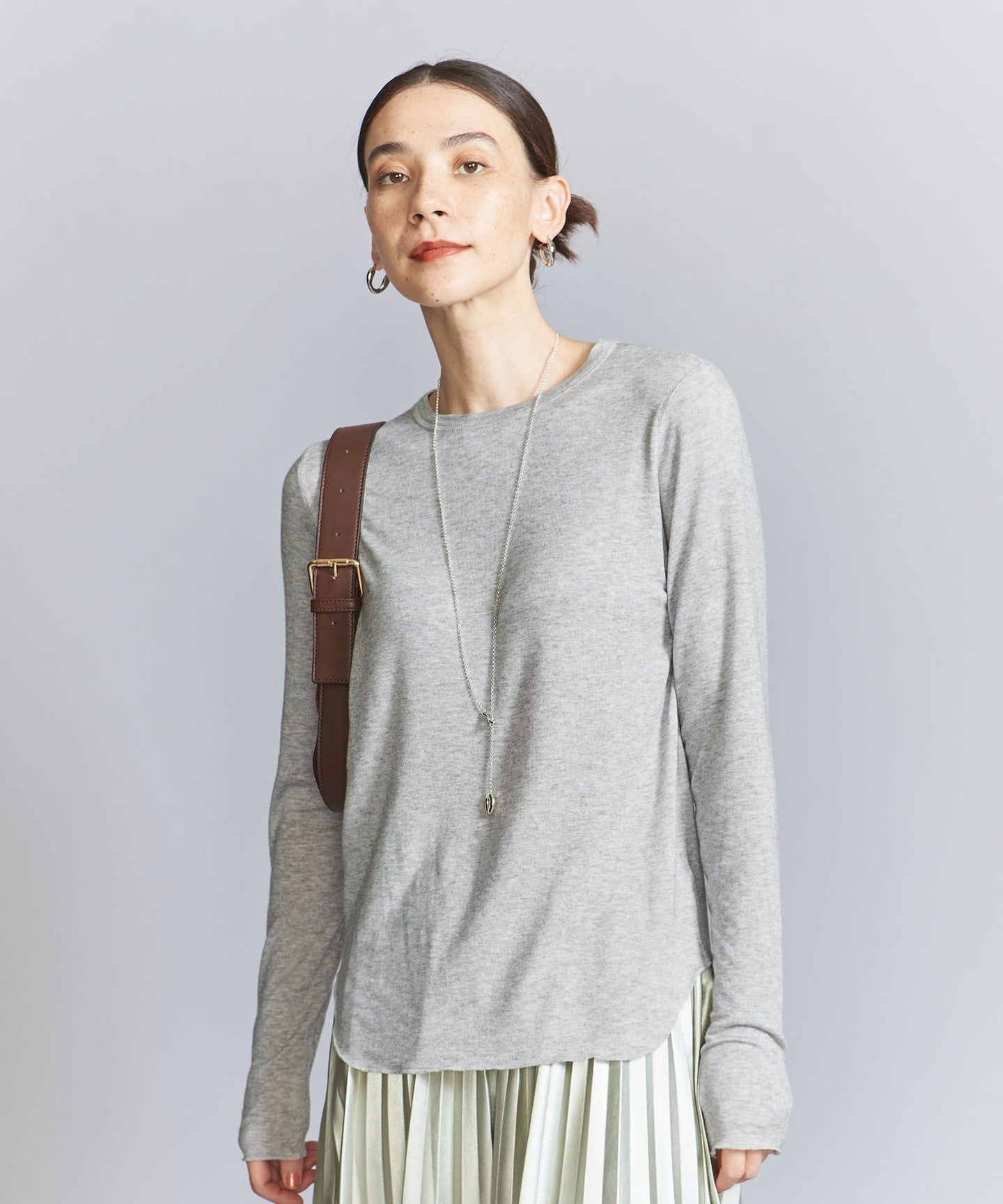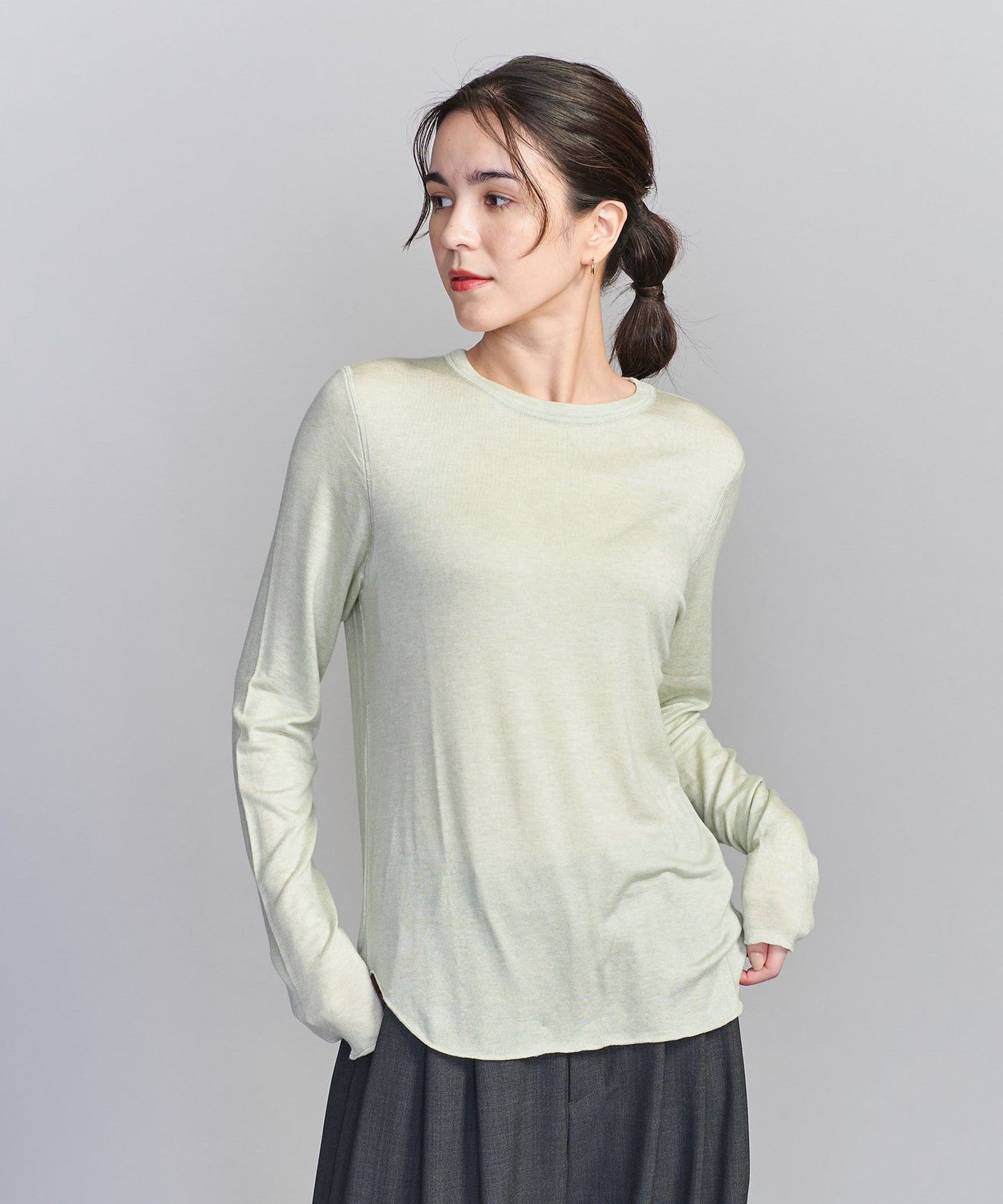 A crew neck cut-and-sew that accentuates femininity and is comfortable to wear.