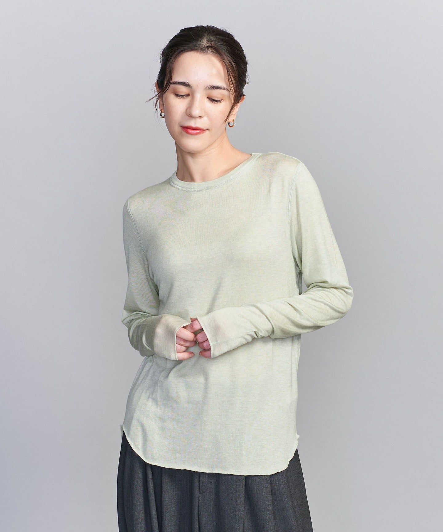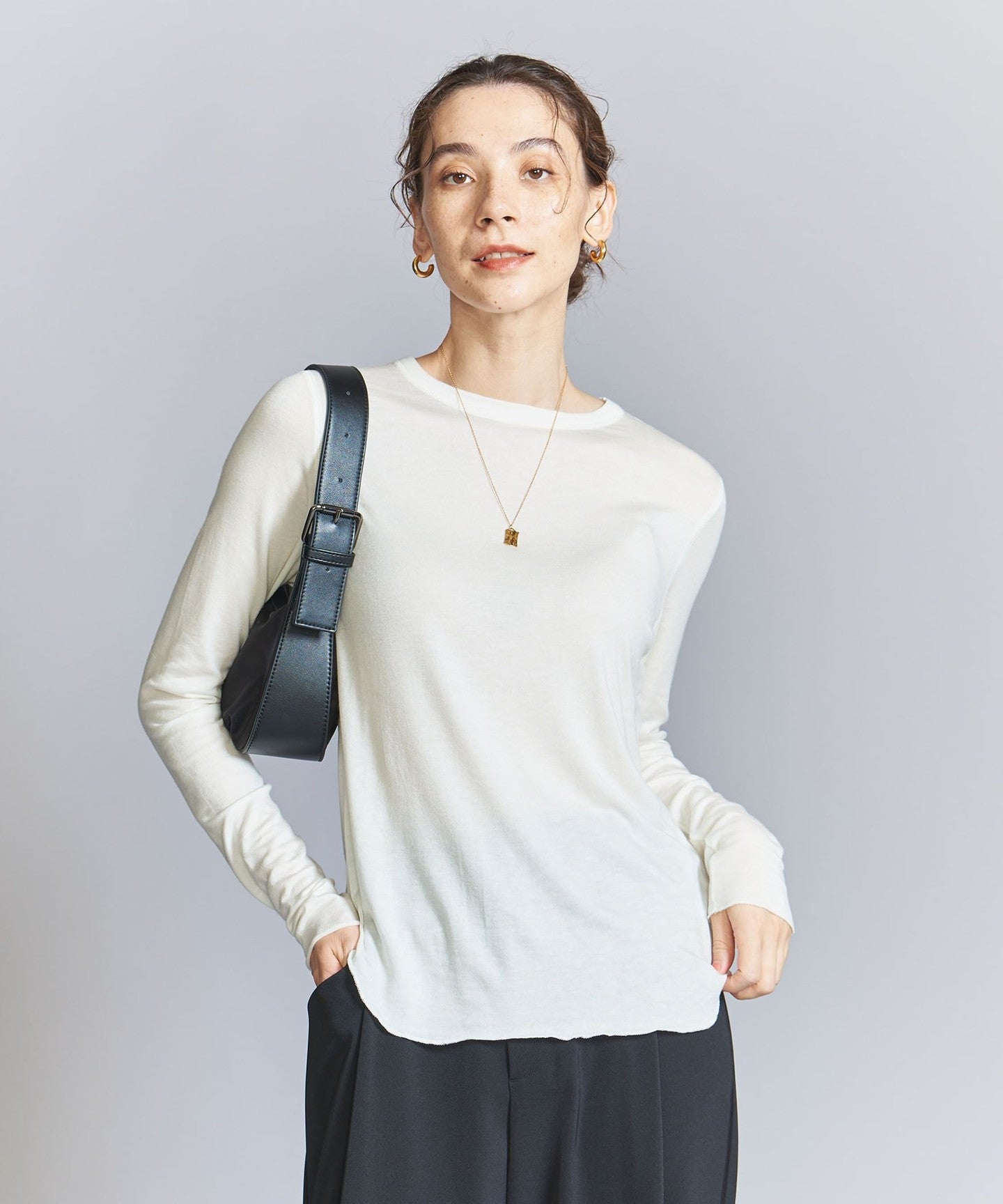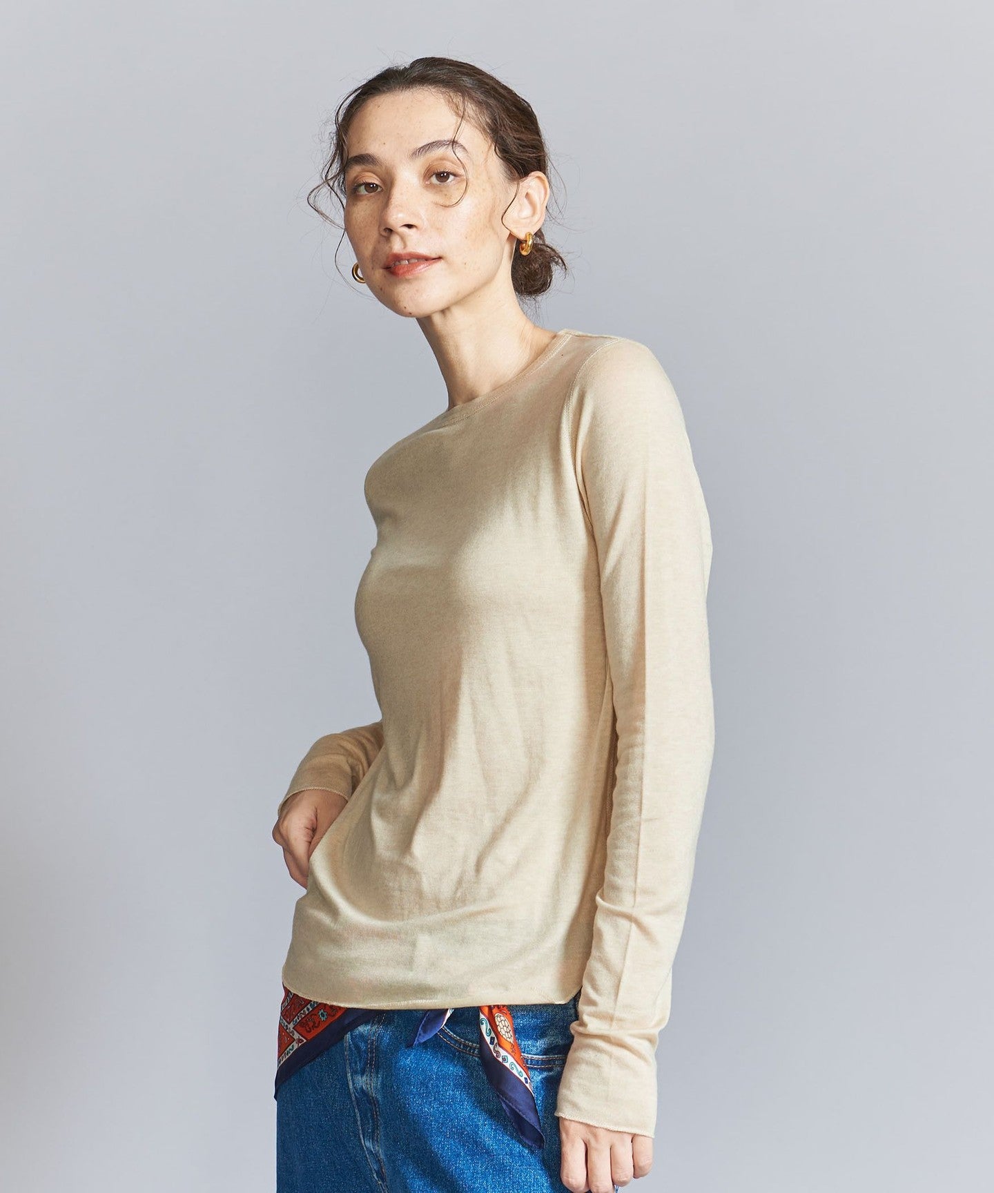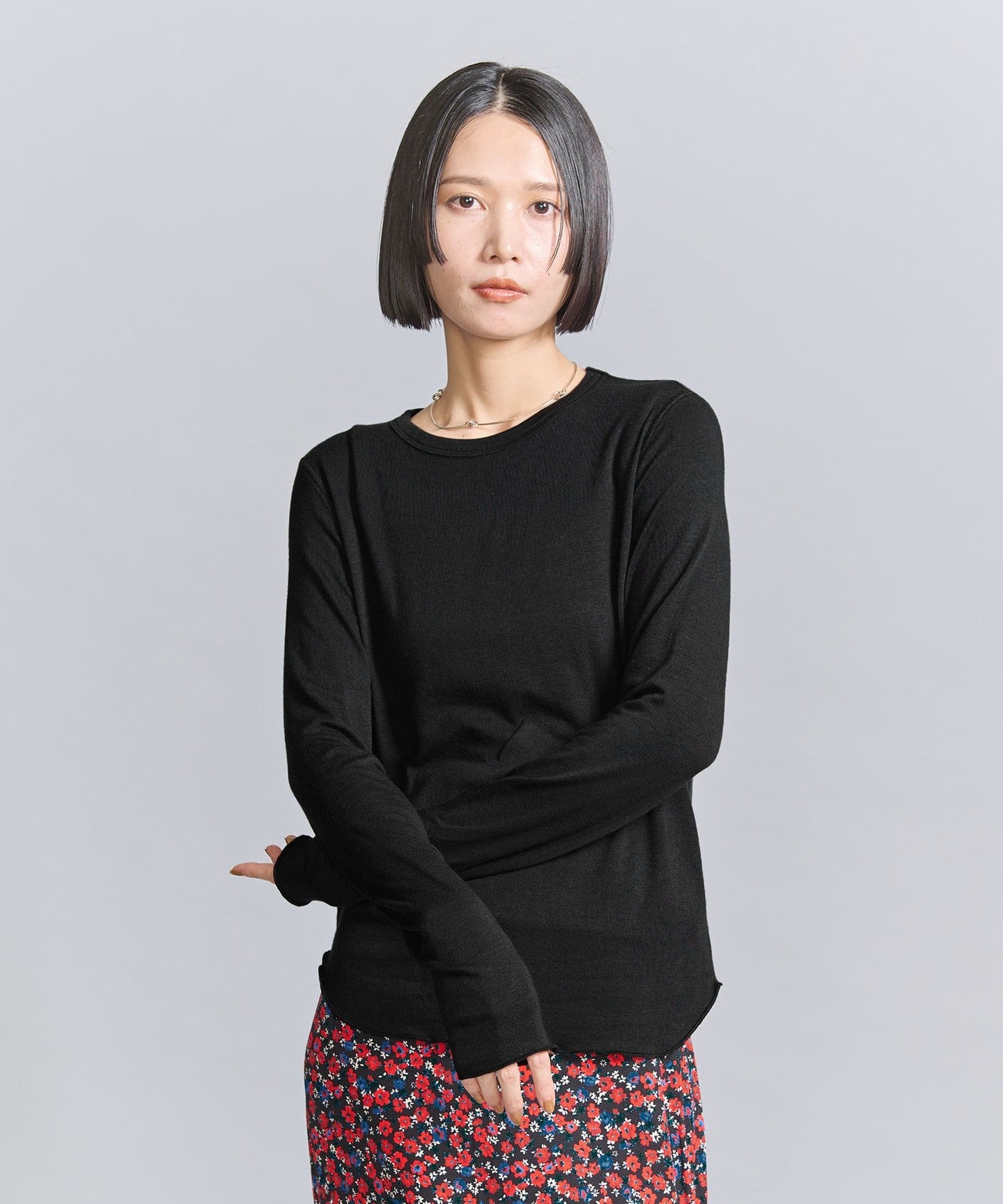 A crew neck cut-and-sew that accentuates femininity and is comfortable to wear.