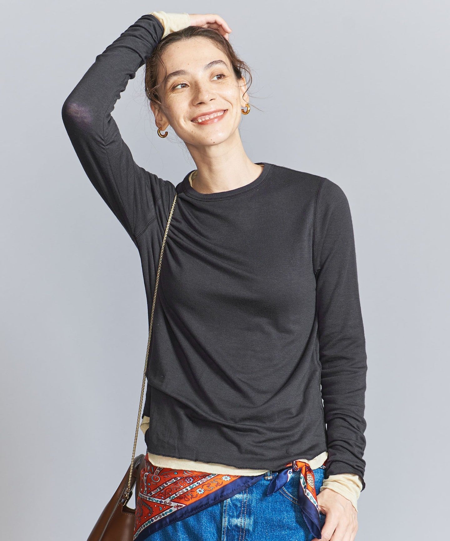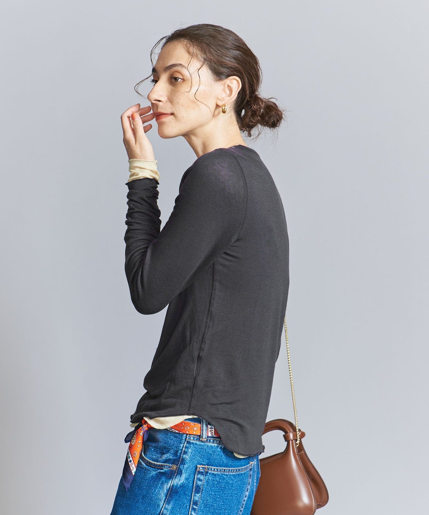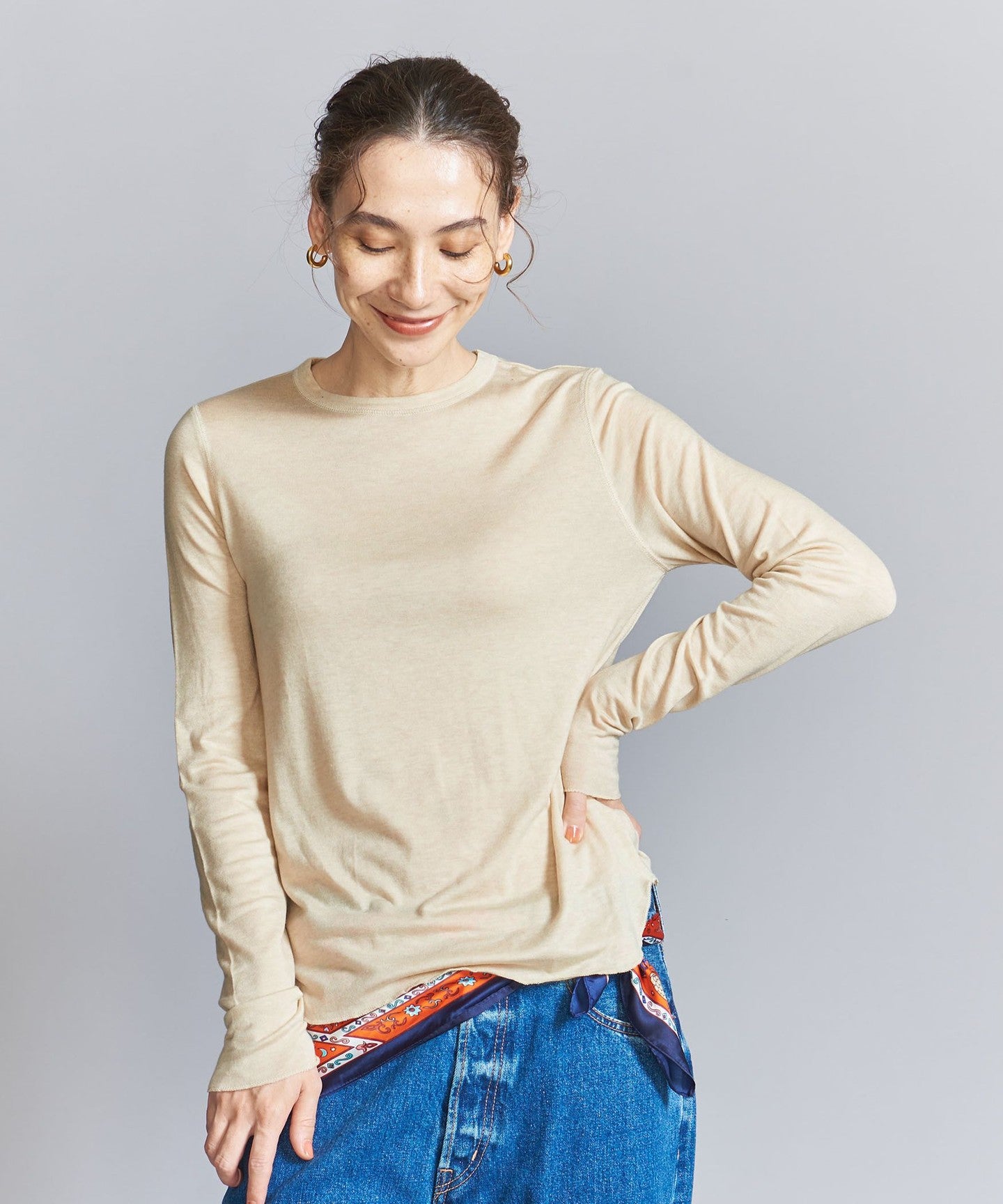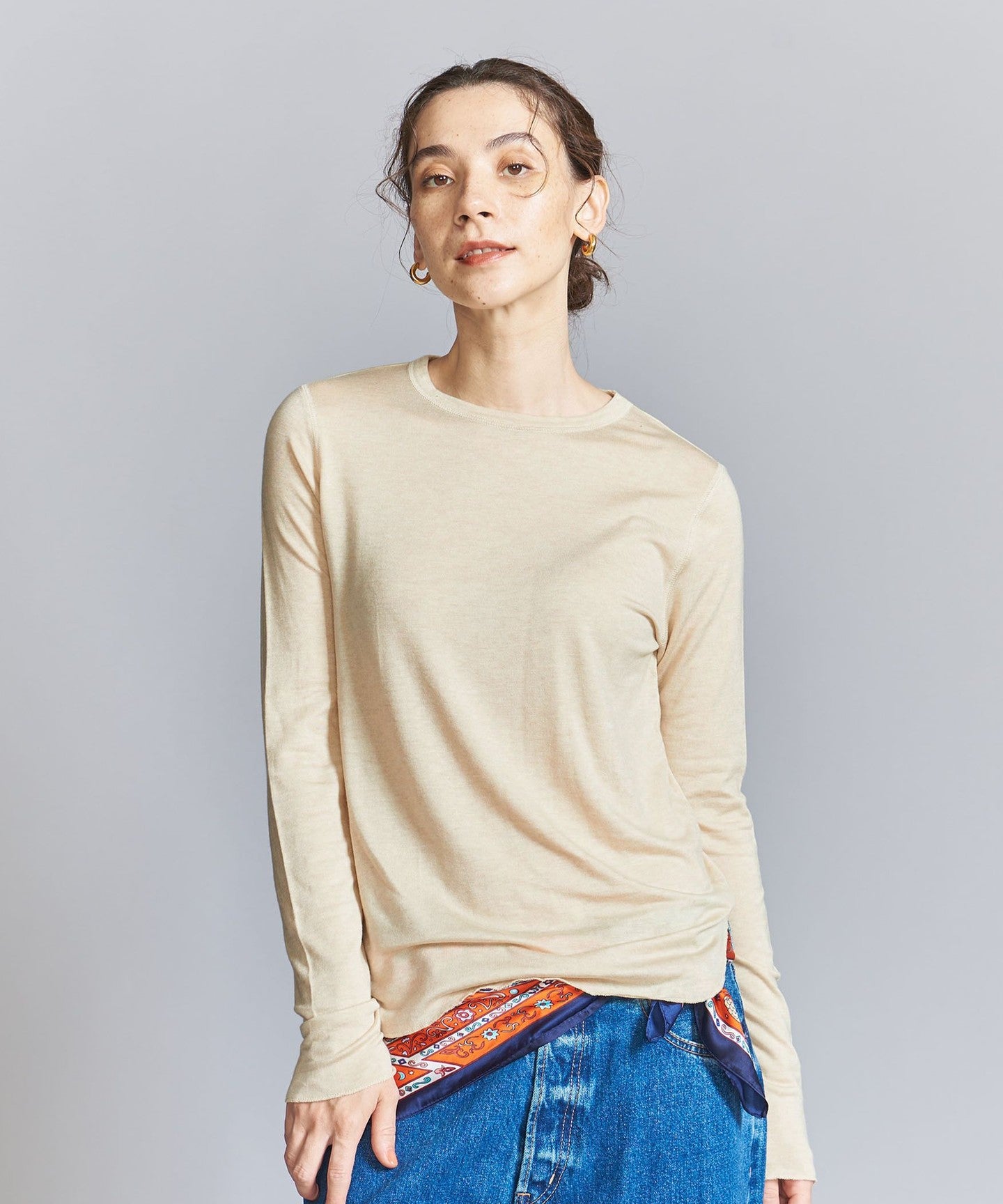 A crew neck cut-and-sew that accentuates femininity and is comfortable to wear.
