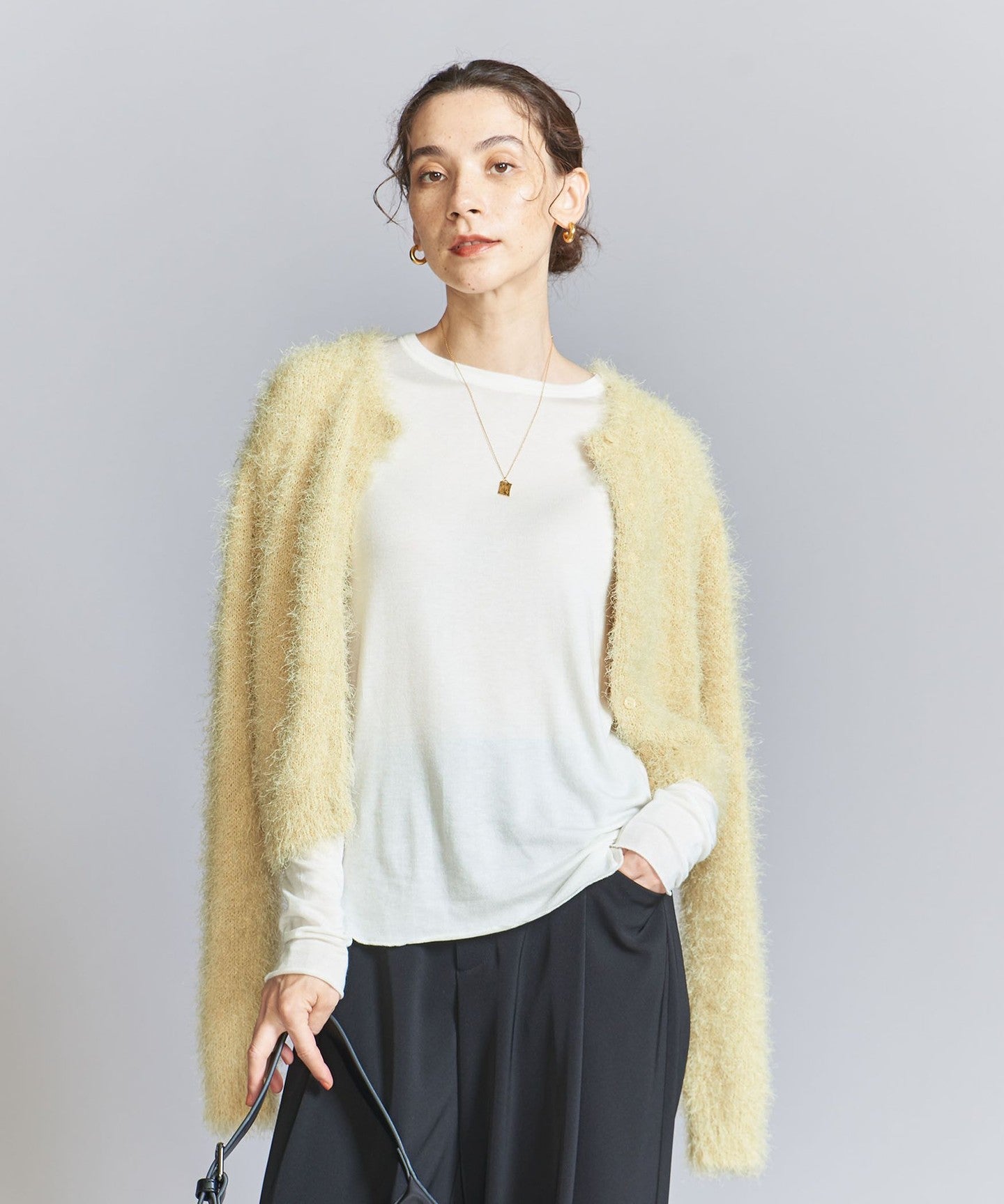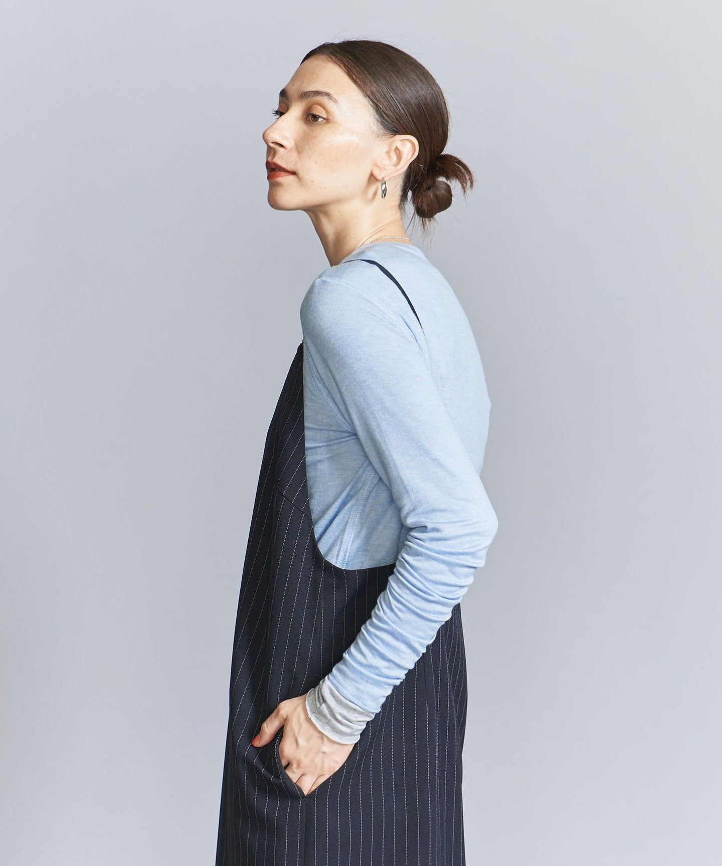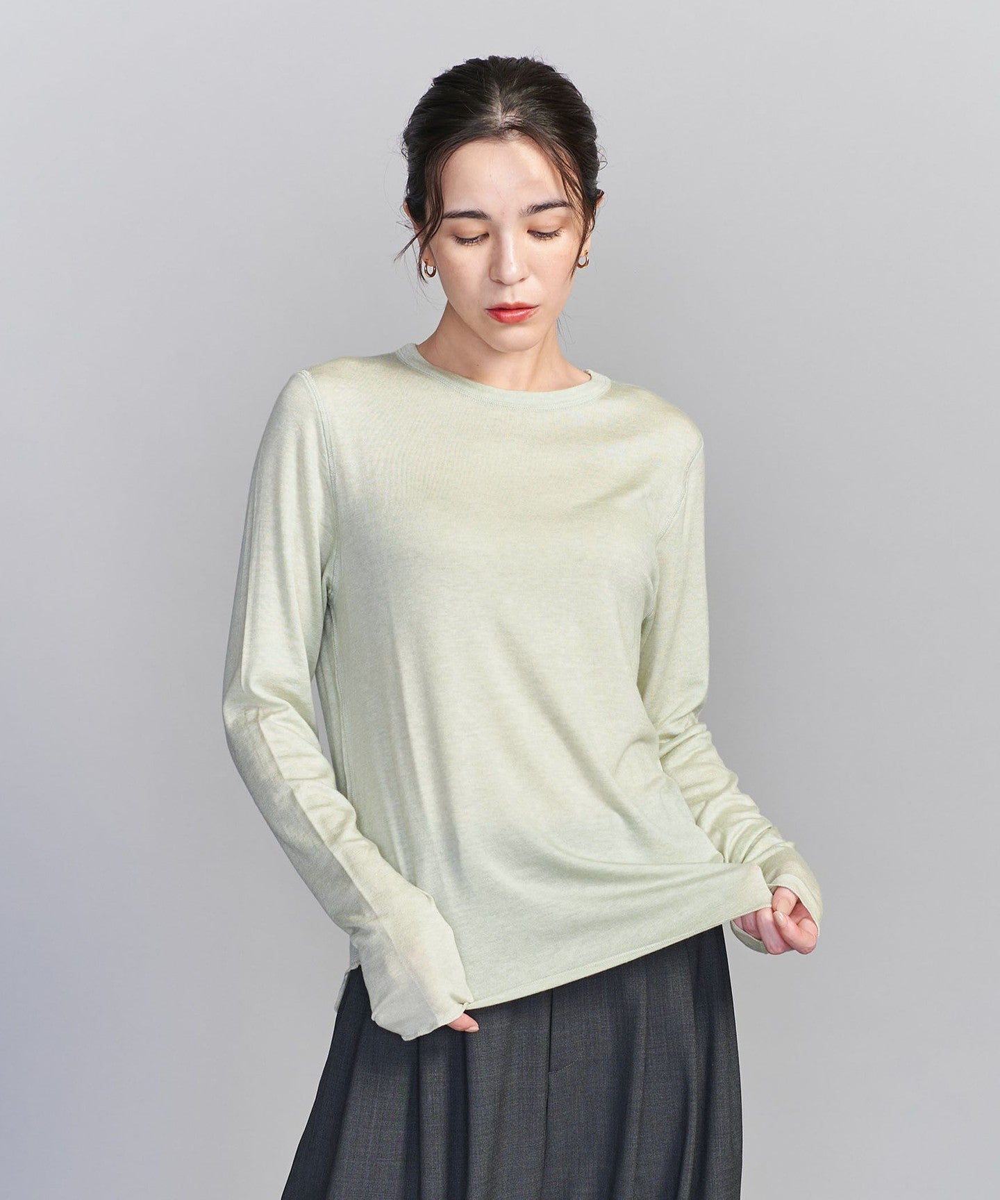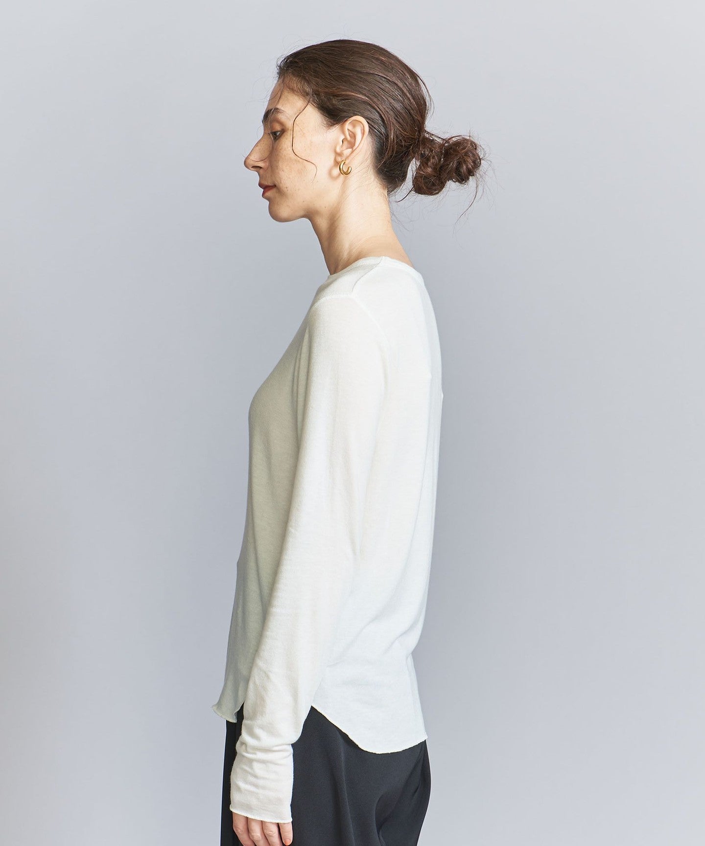 A crew neck cut-and-sew that accentuates femininity and is comfortable to wear.