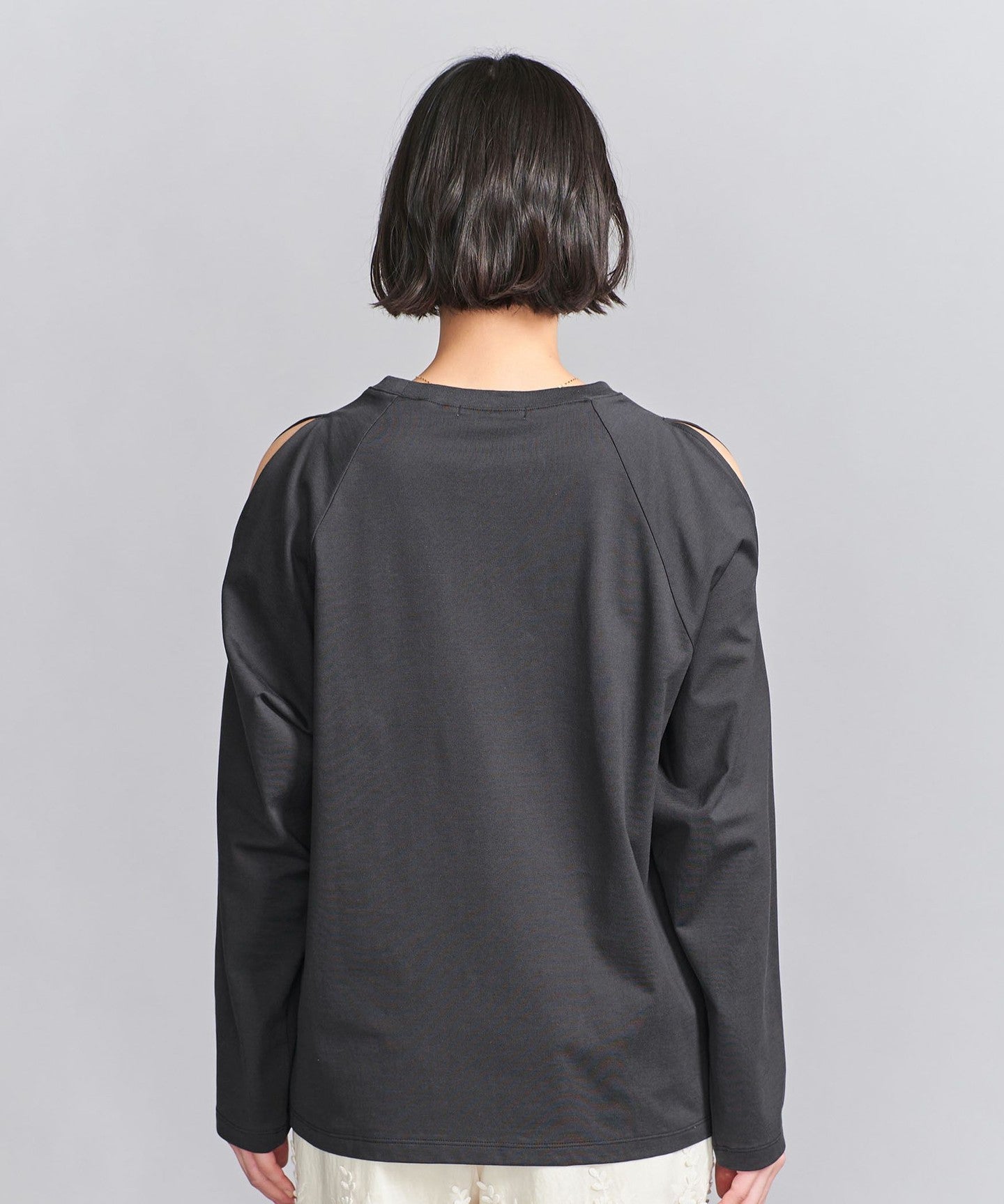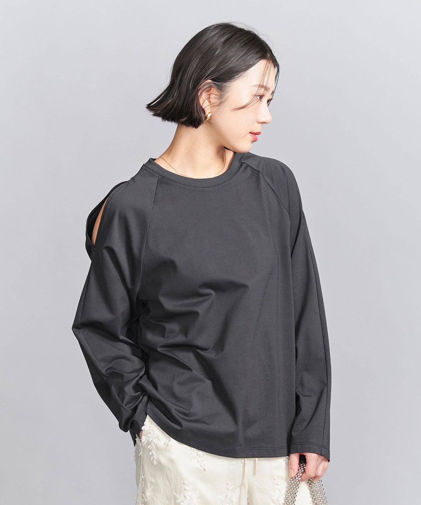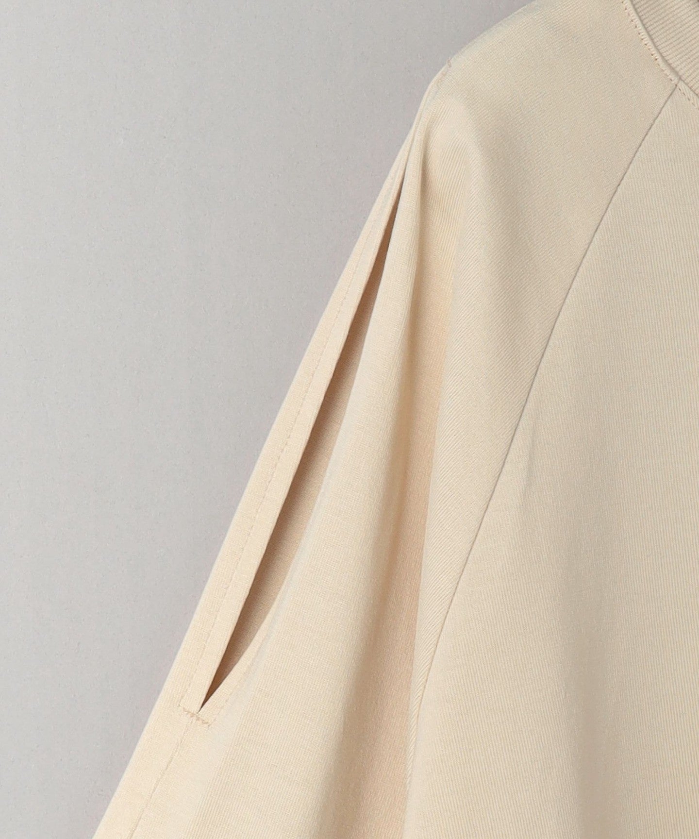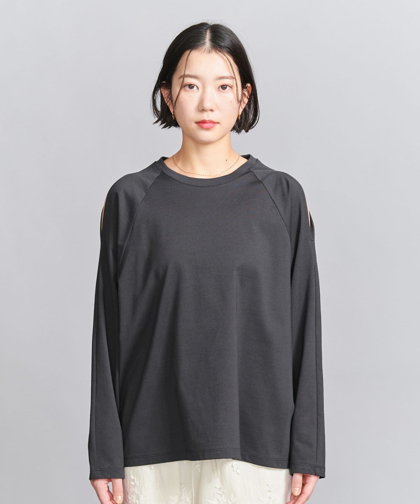This cut-and-sew top features slits at the shoulders of the raglan sleeves, making it a statement piece on its own.