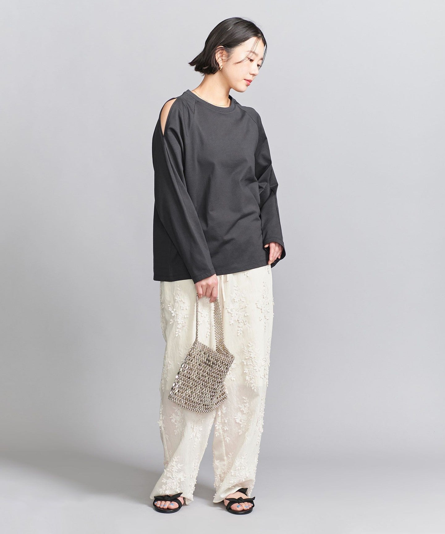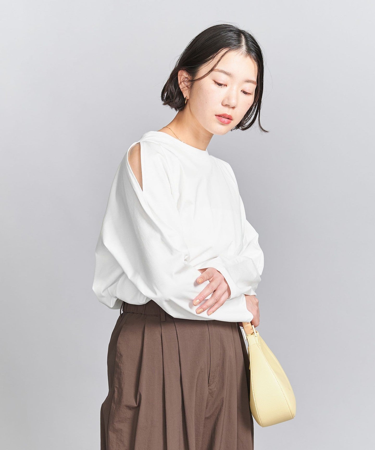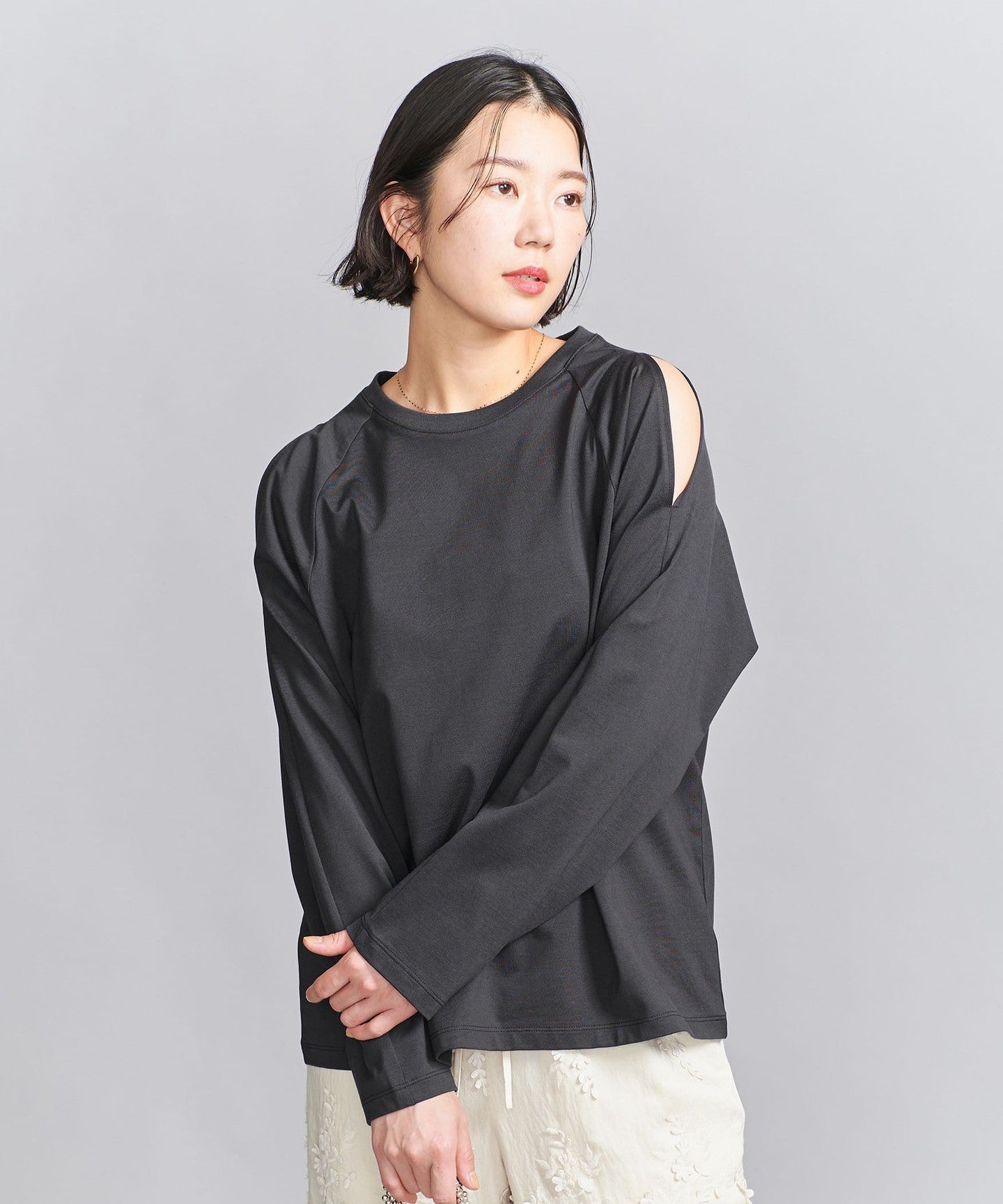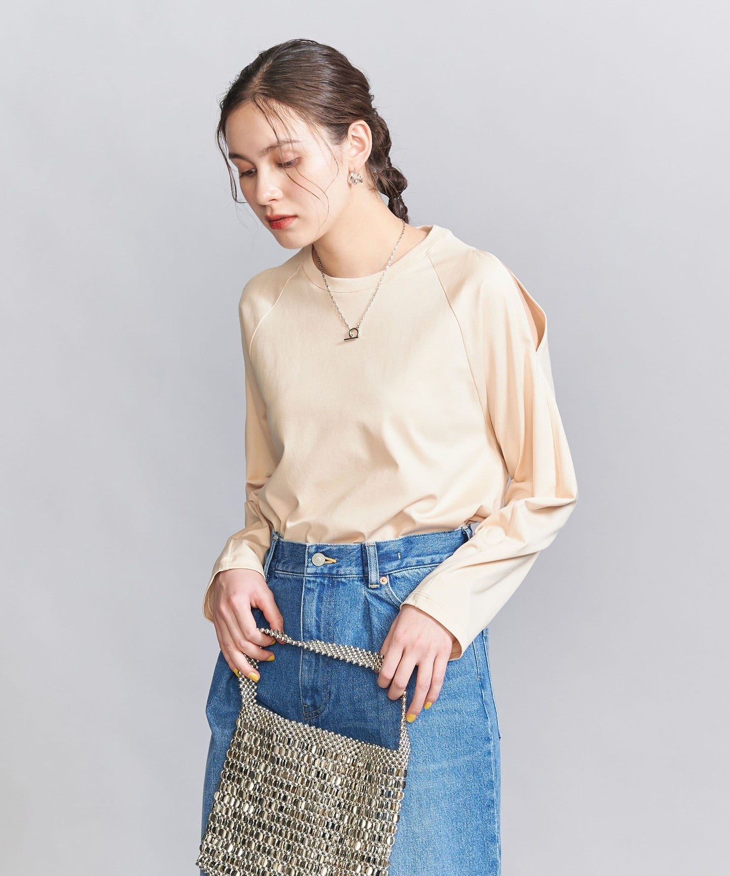 This cut-and-sew top features slits at the shoulders of the raglan sleeves, making it a statement piece on its own.