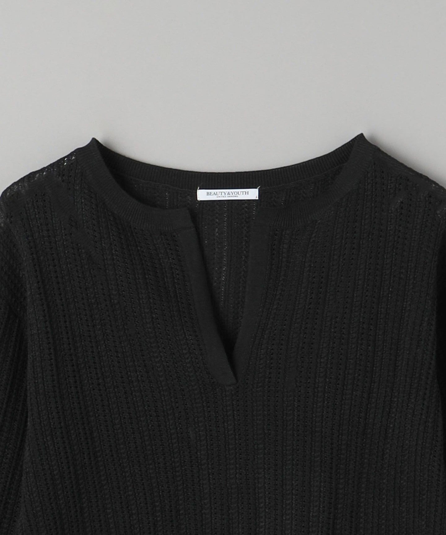 The key feature is the knitted pattern that combines eyelets and cable patterns.