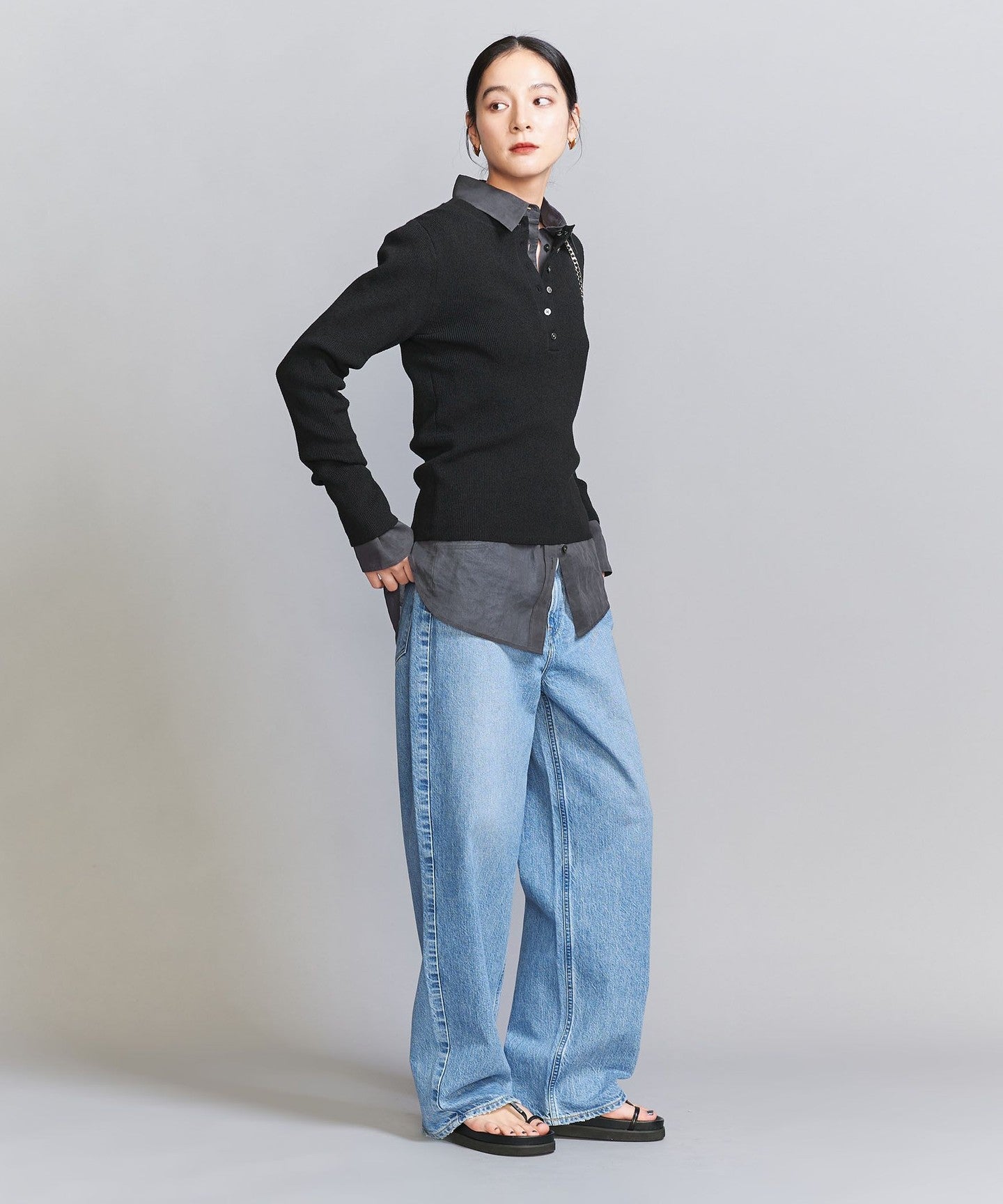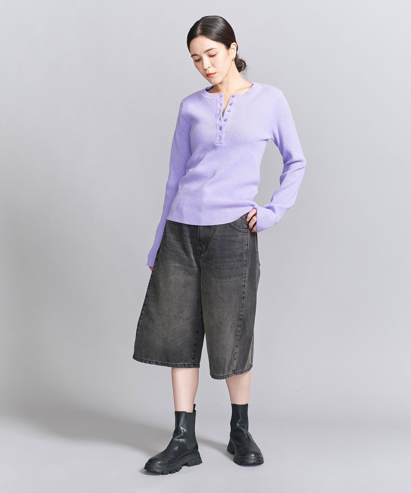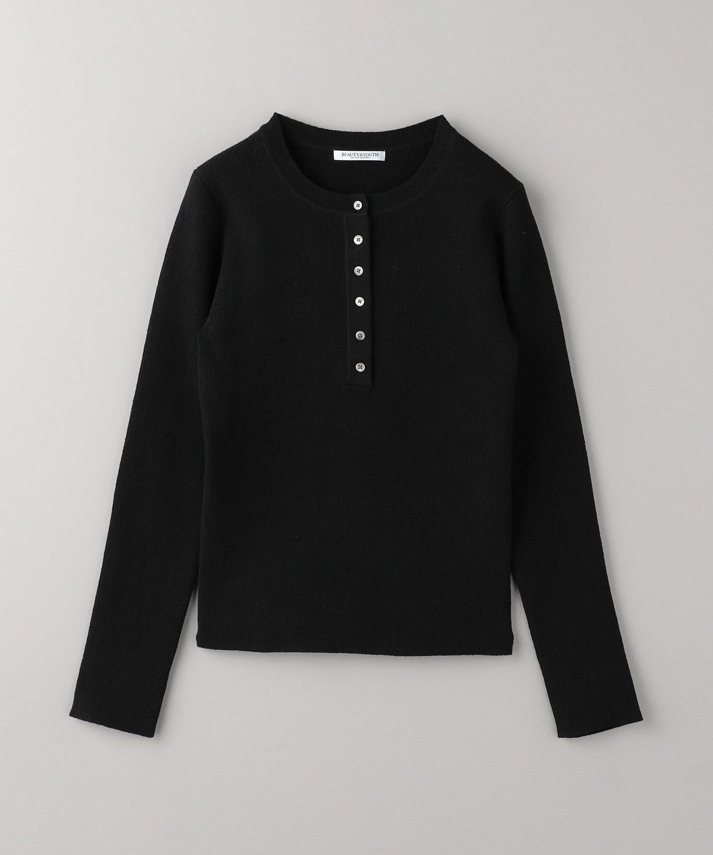 Rib Henley Neck Knit -Washable-