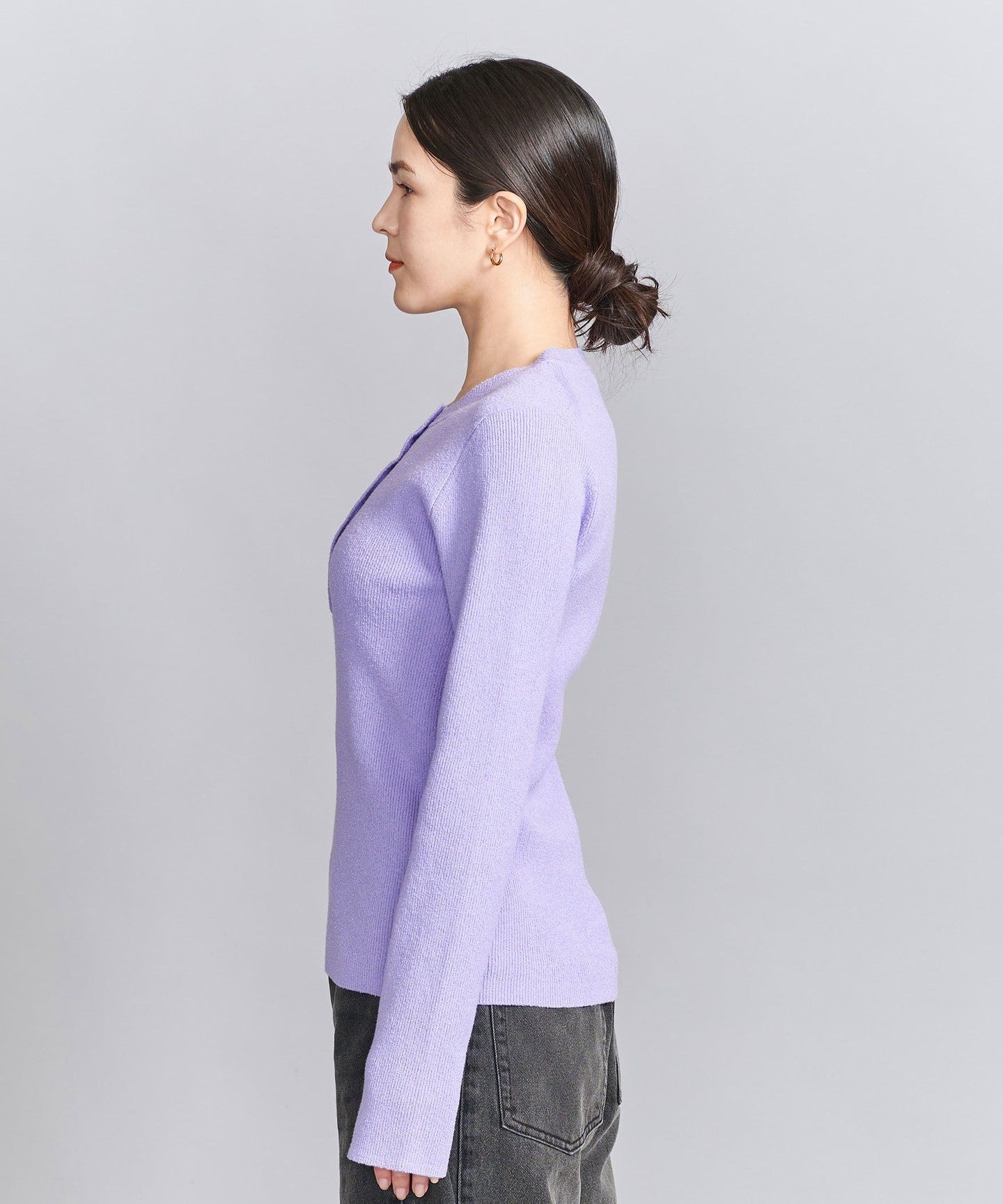 The moderate fit of the ribbing creates a feminine look.