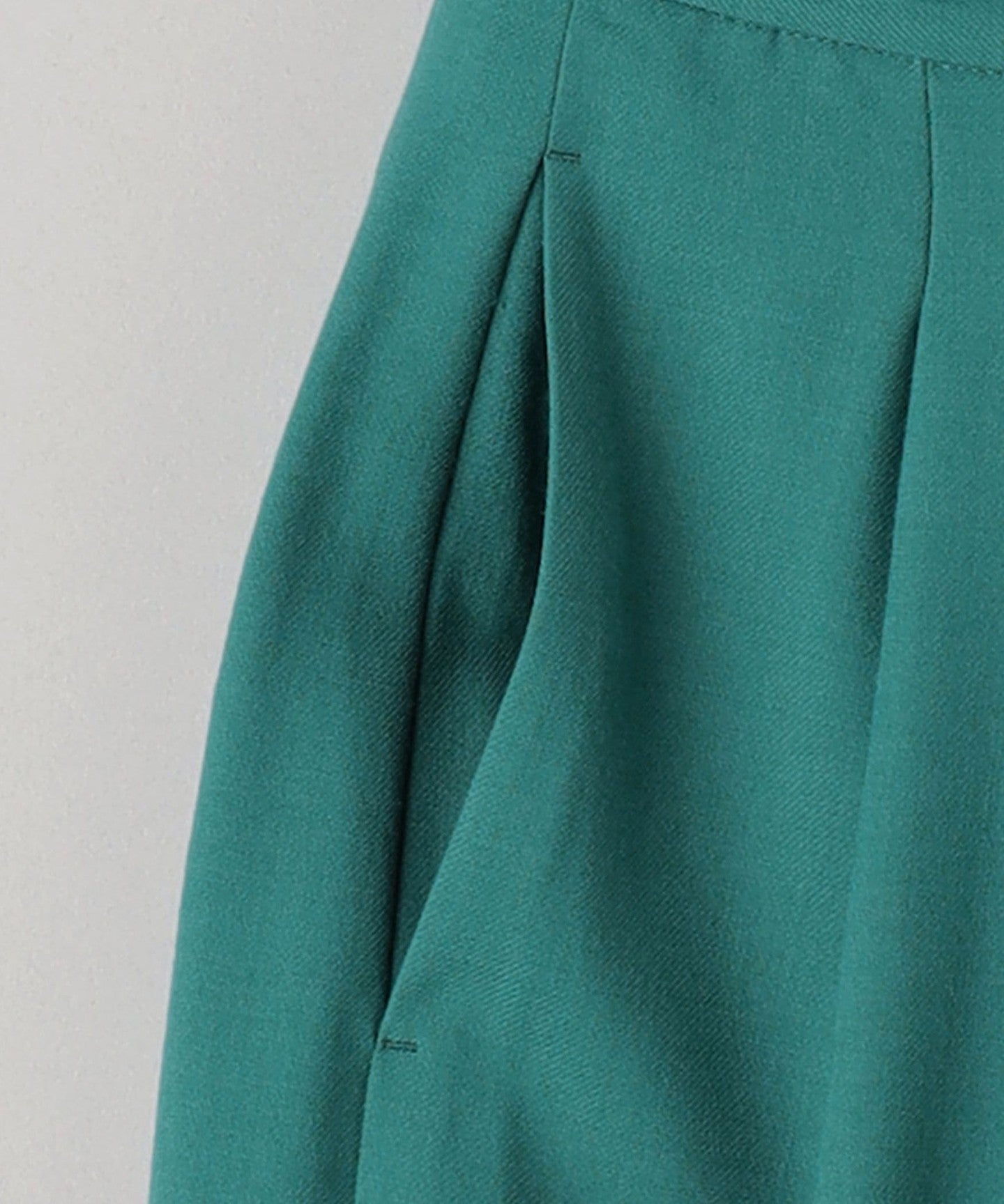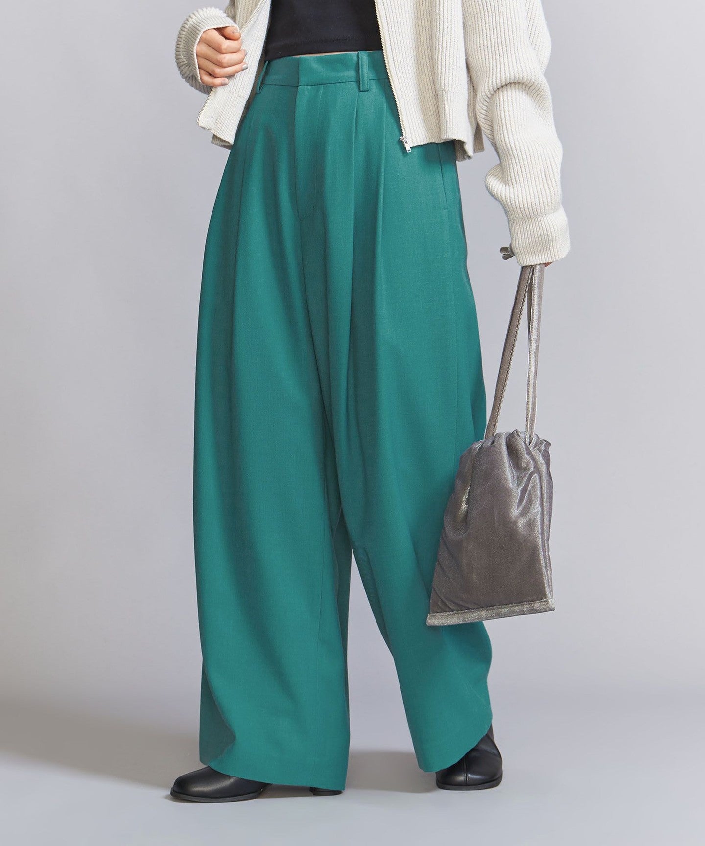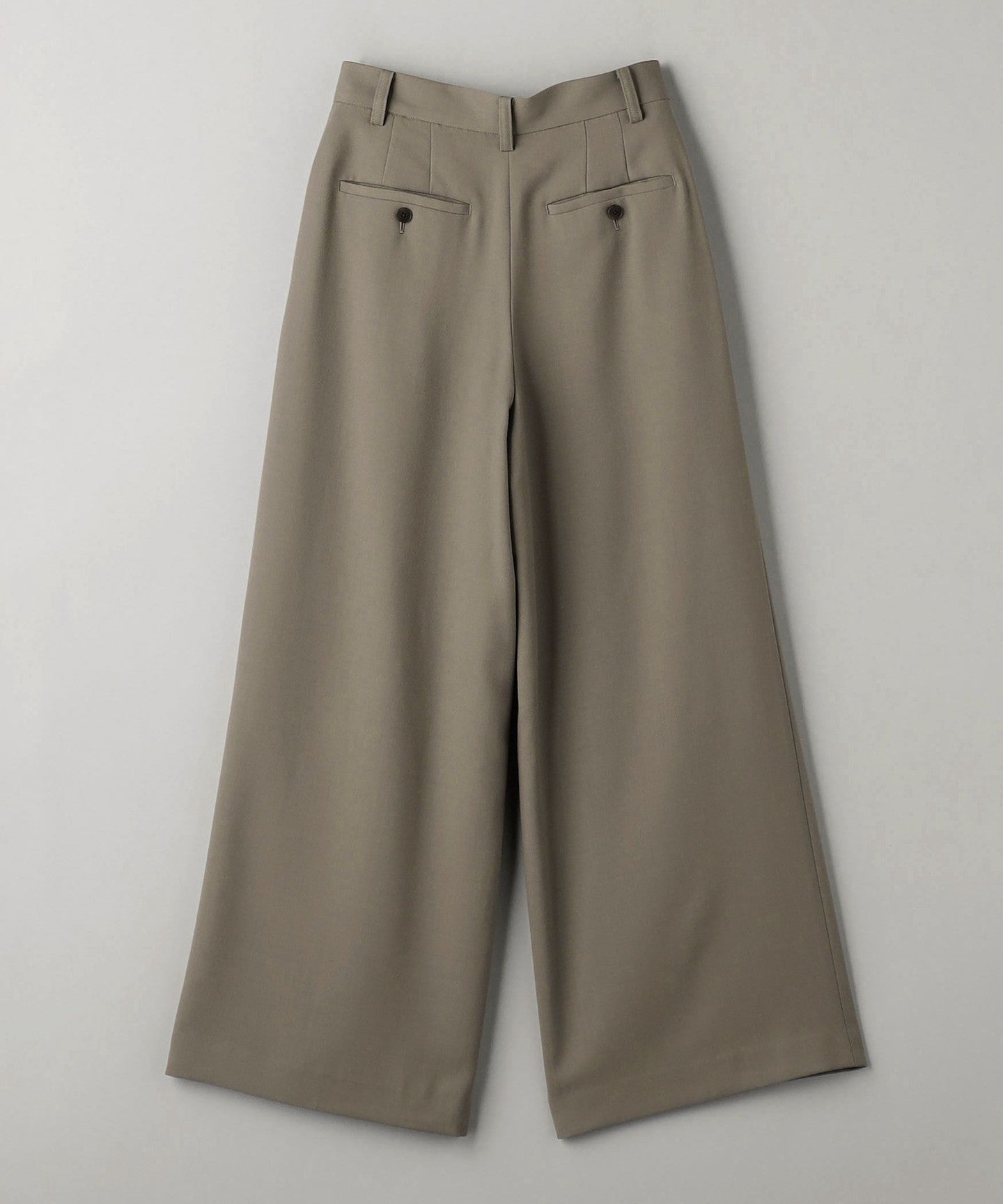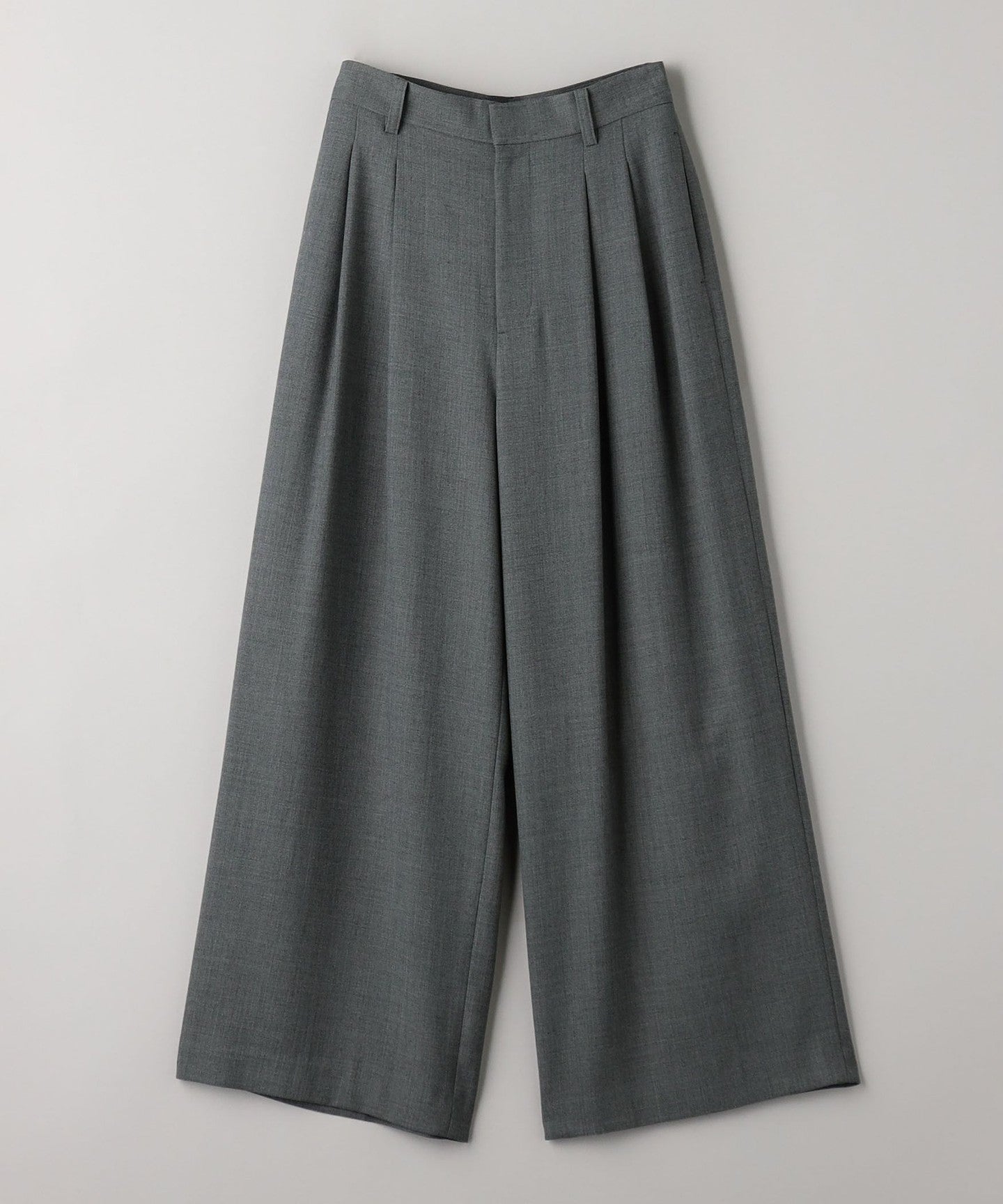Deep tucks that disappear around the knees and a wide silhouette.