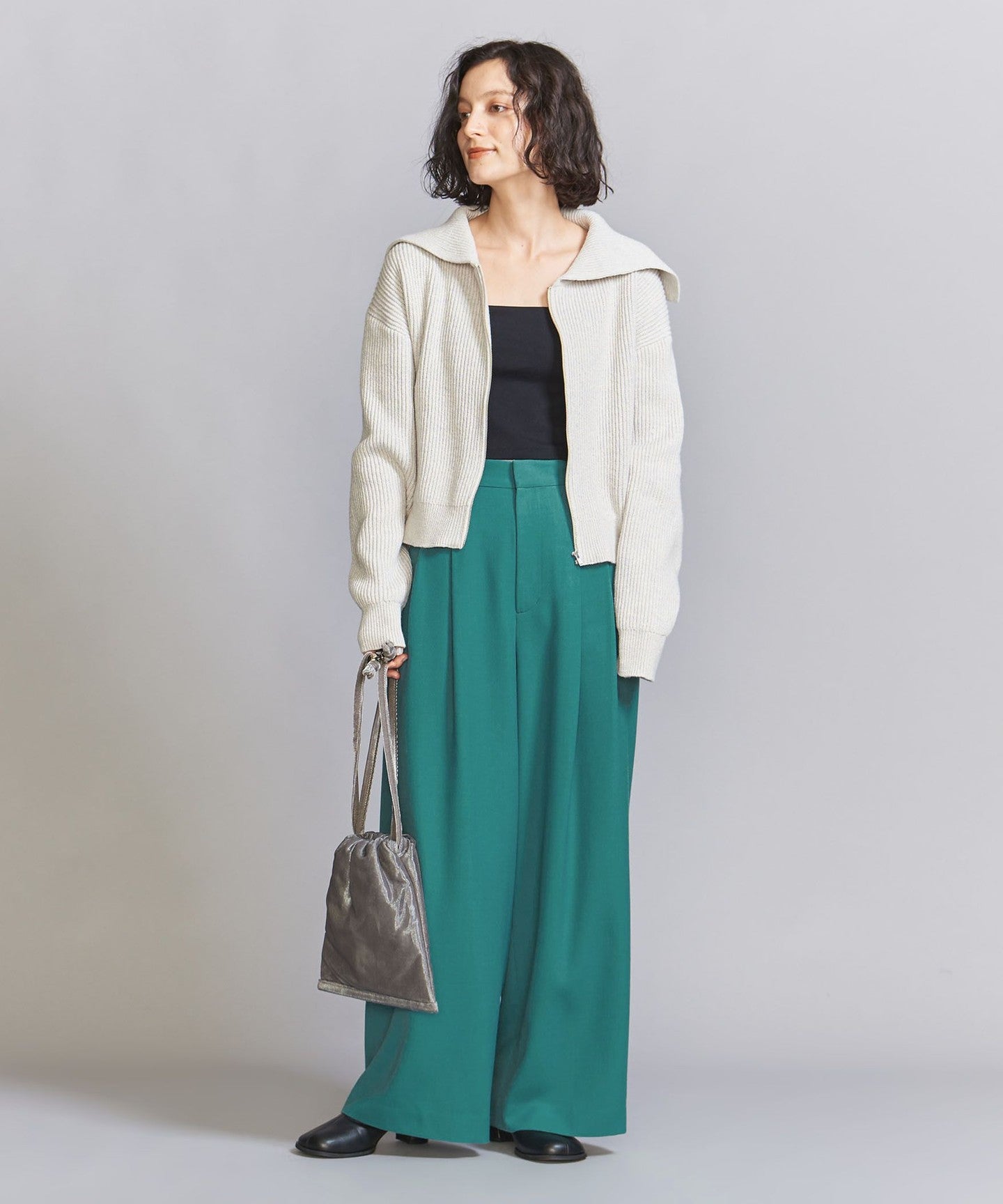 It is also recommended to pair it with sharp and feminine items such as pointed shoes.