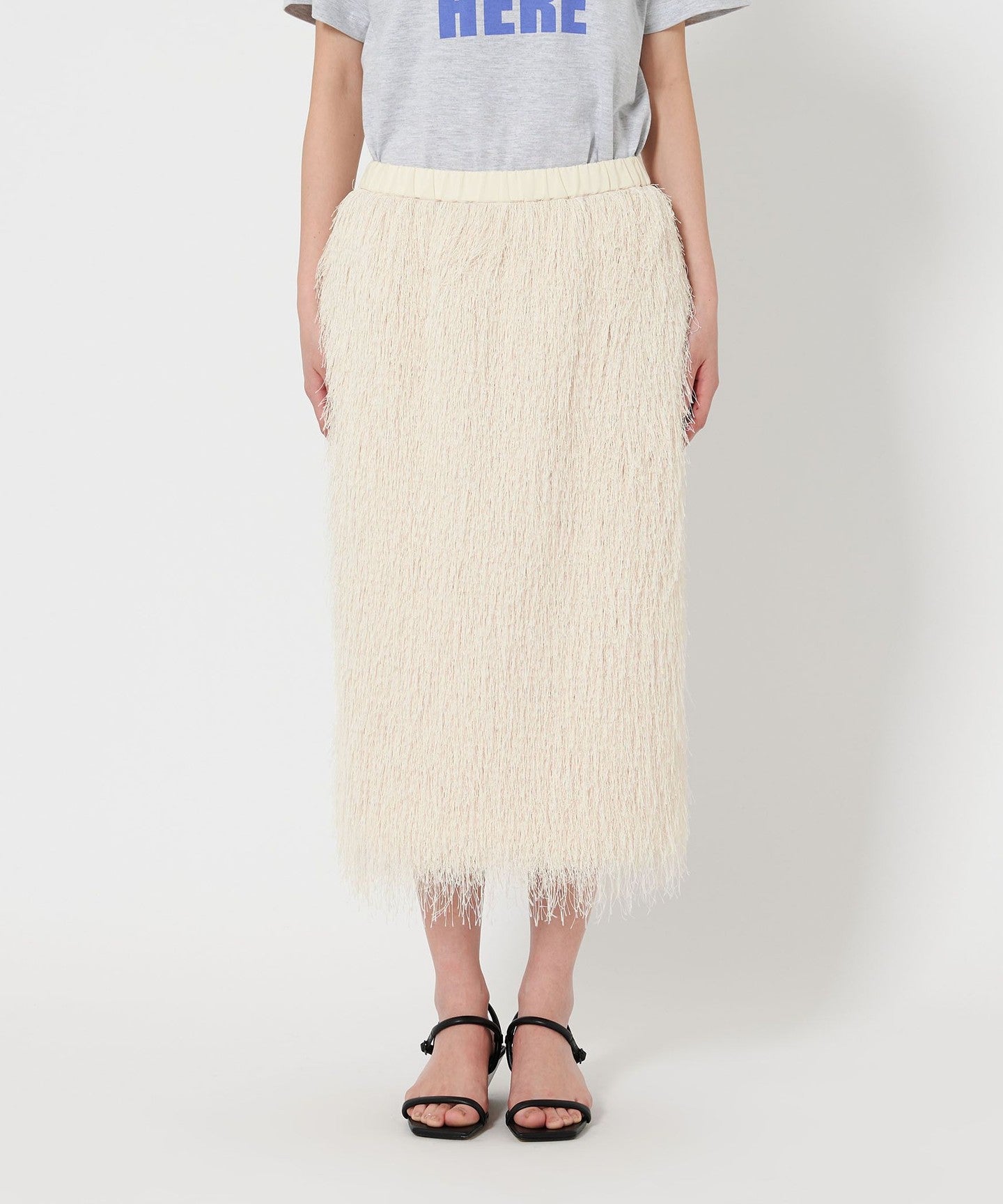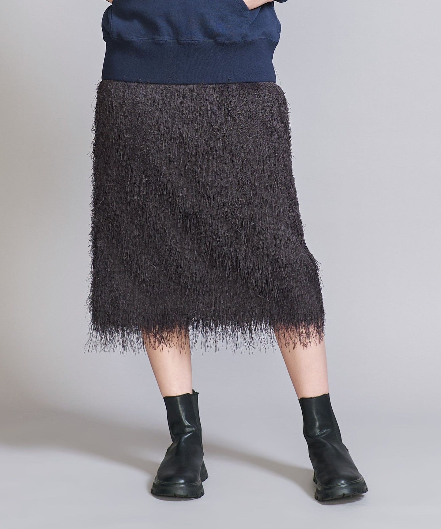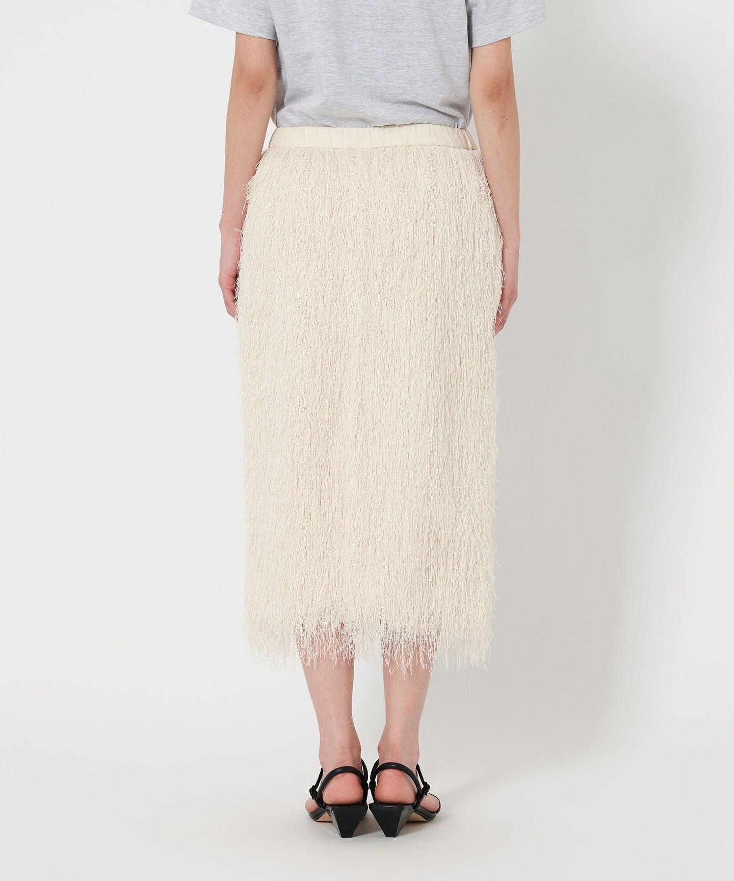 Taking advantage of the distinctive material, the dress has a simple midi-length I-line shape.