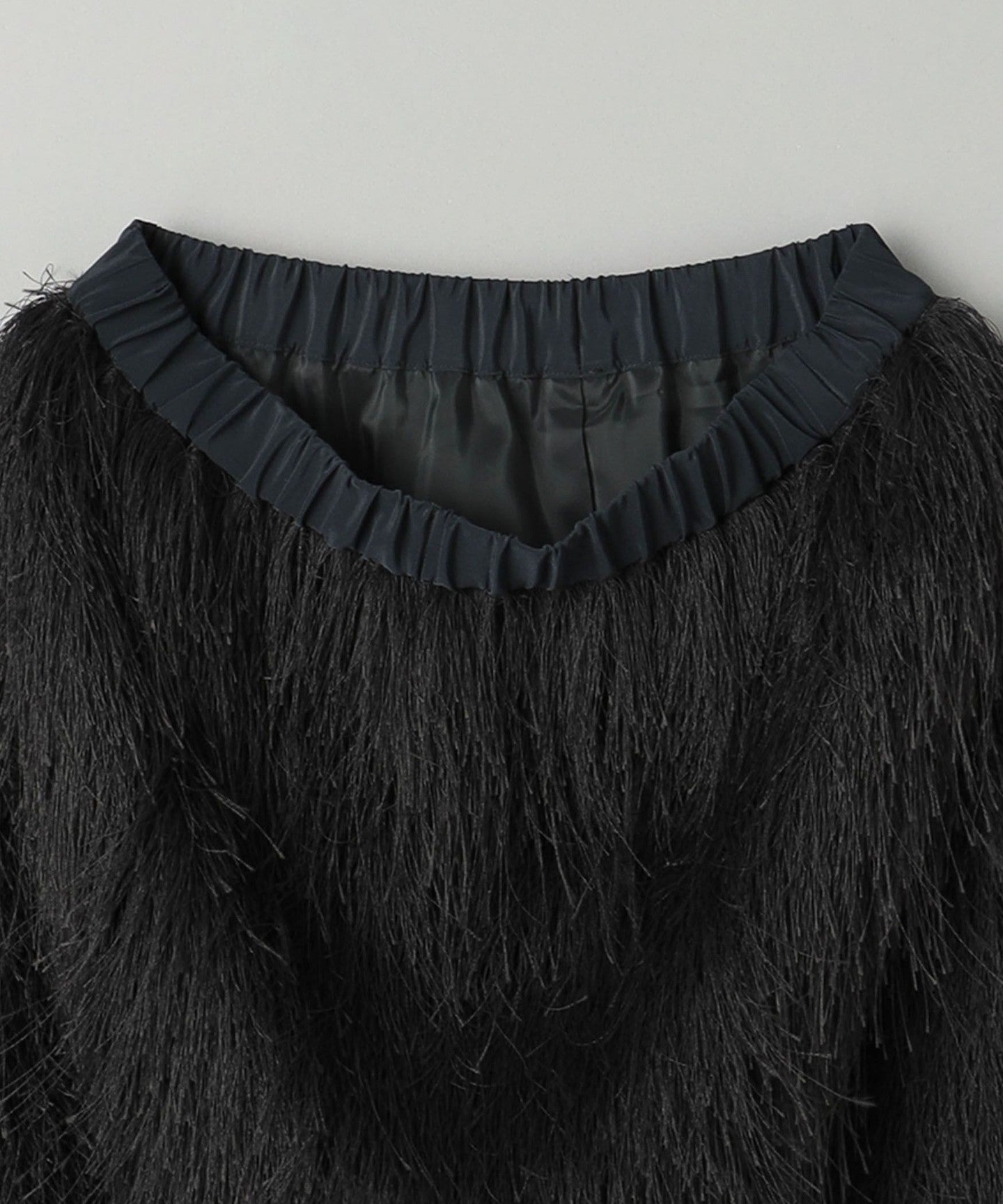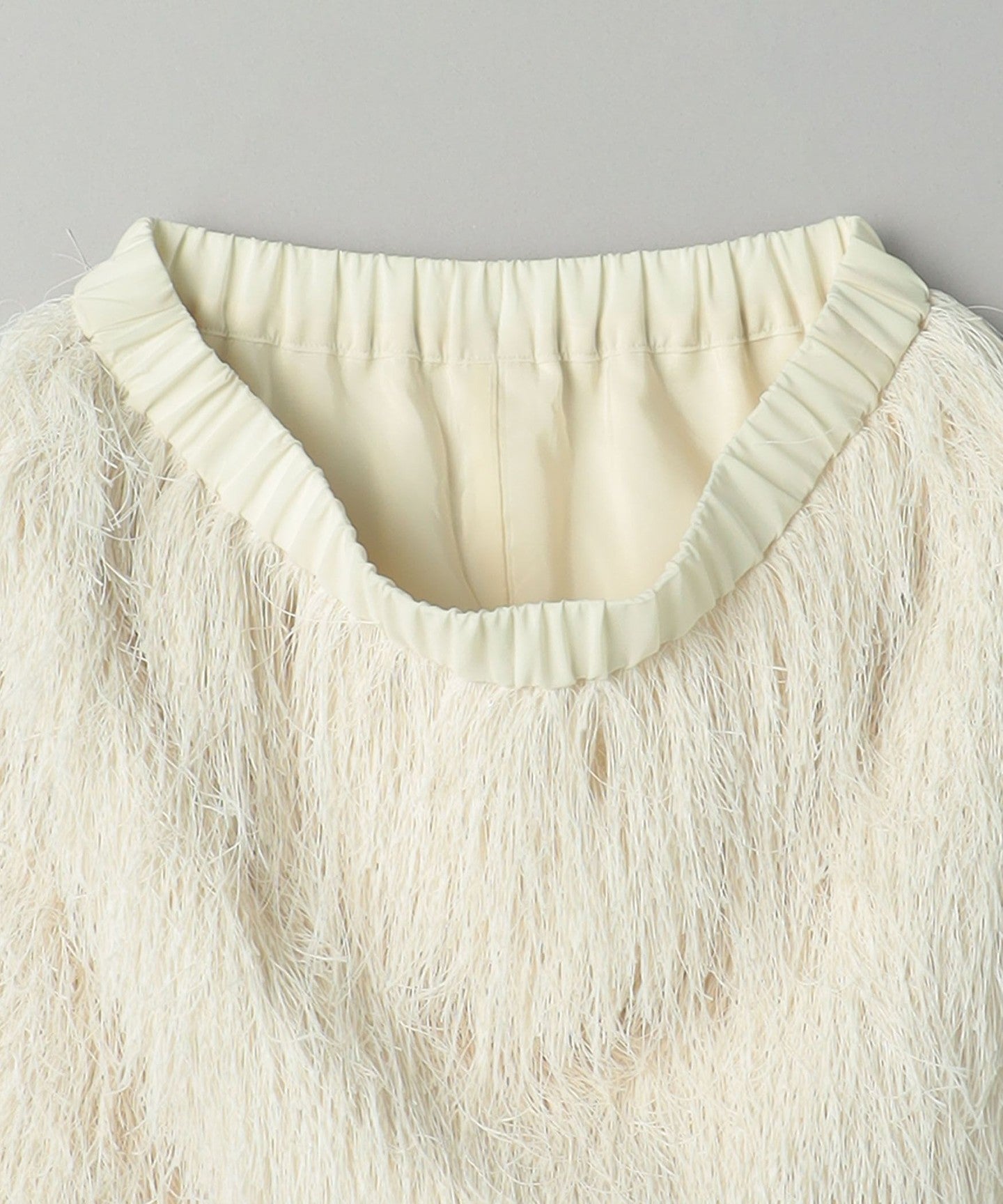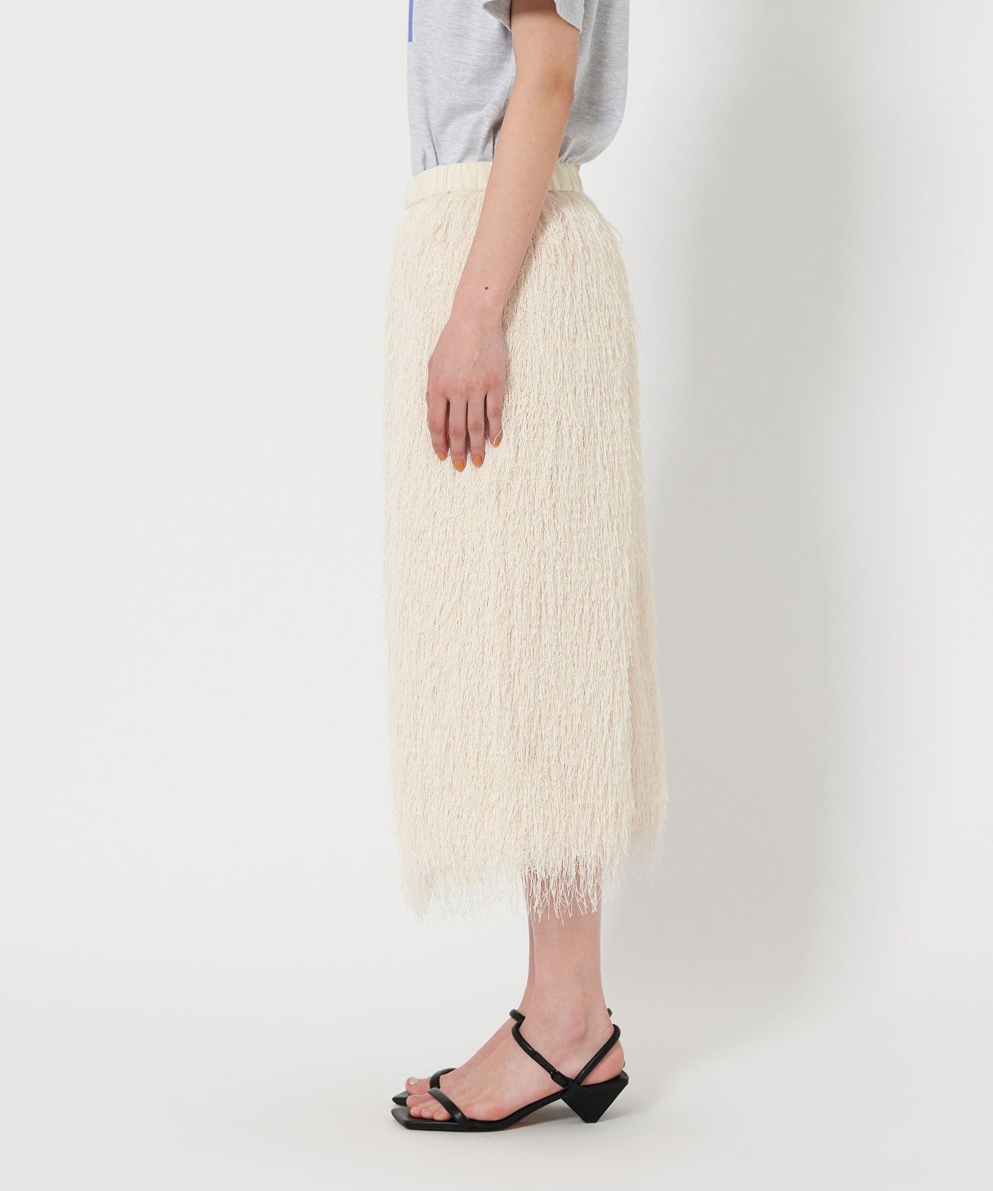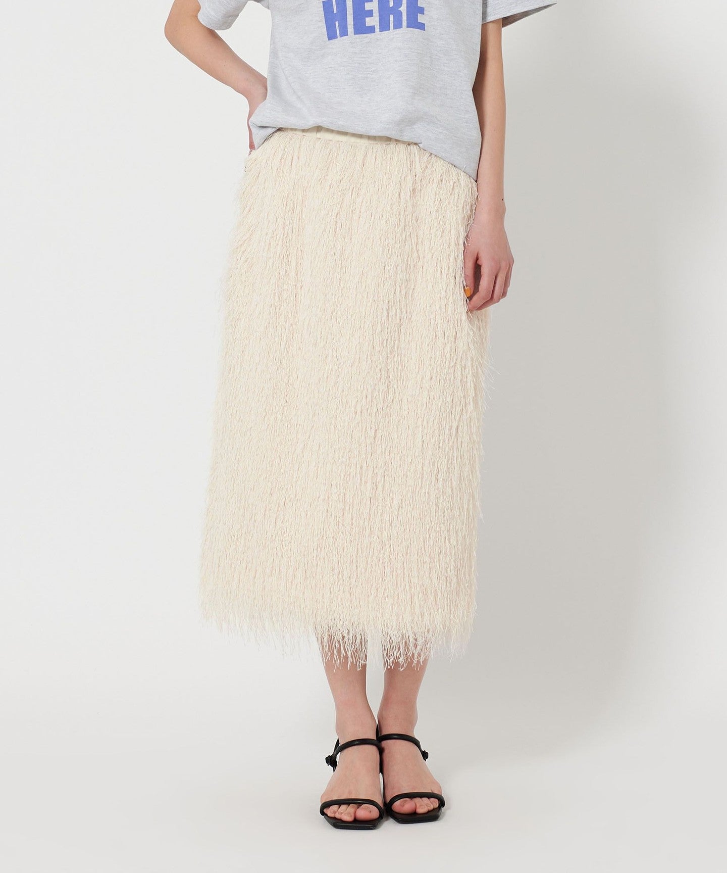 Taking advantage of the distinctive material, the dress has a simple midi-length I-line shape.