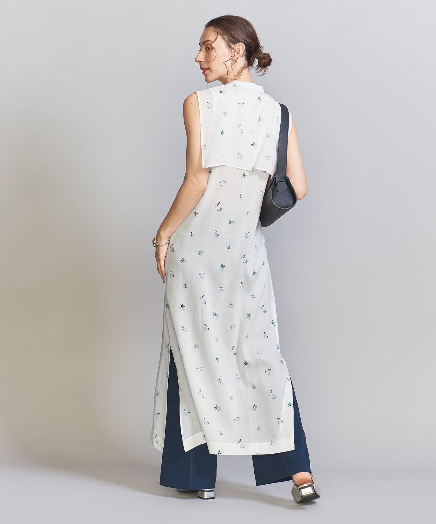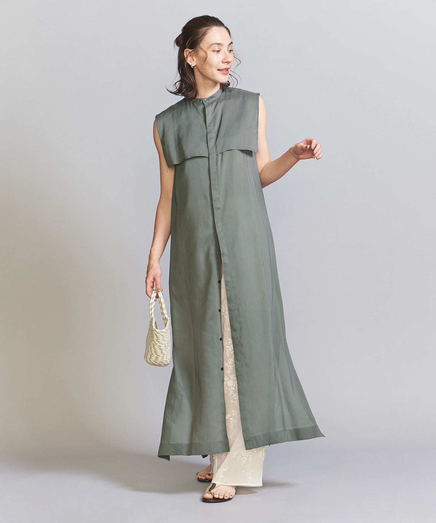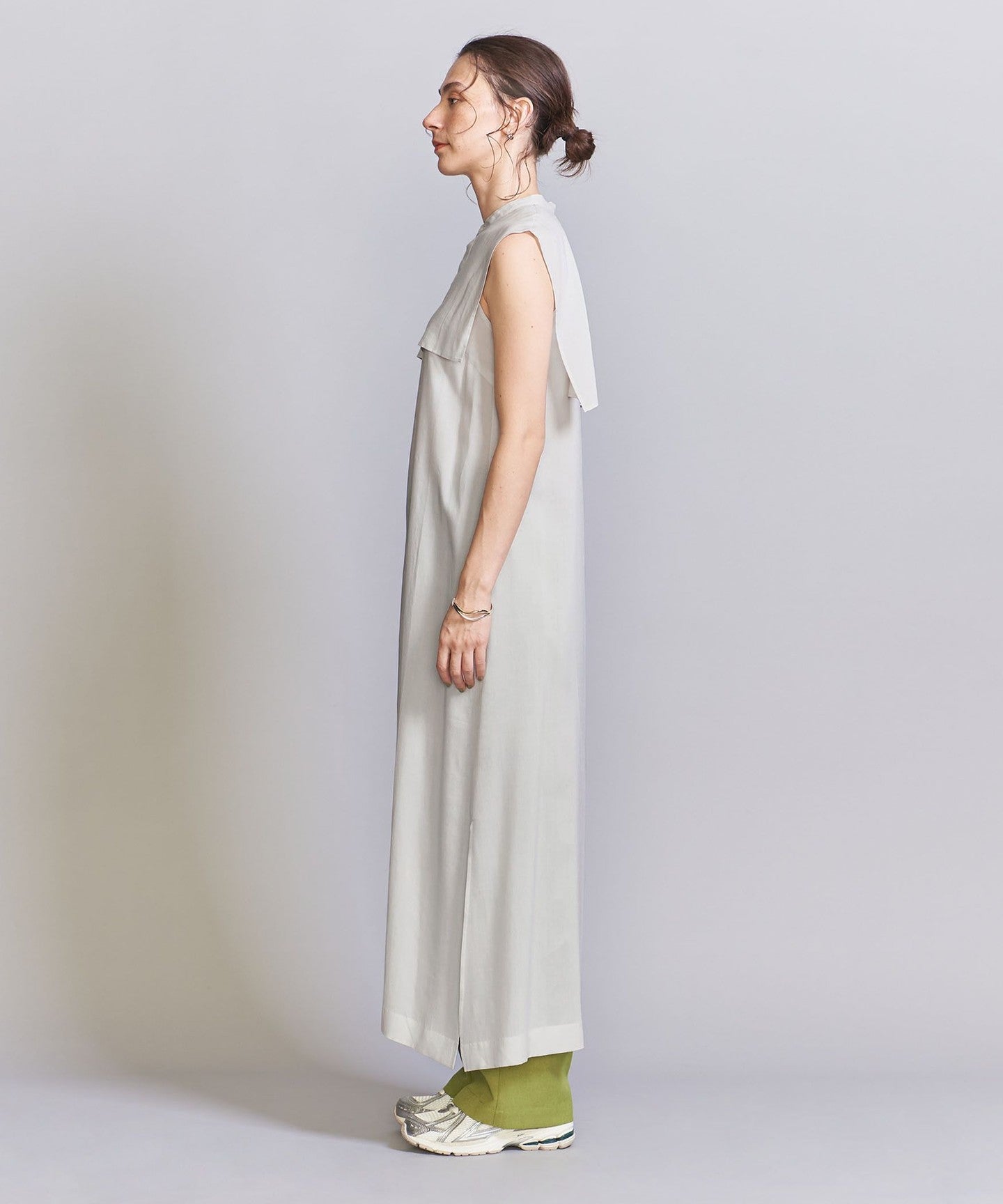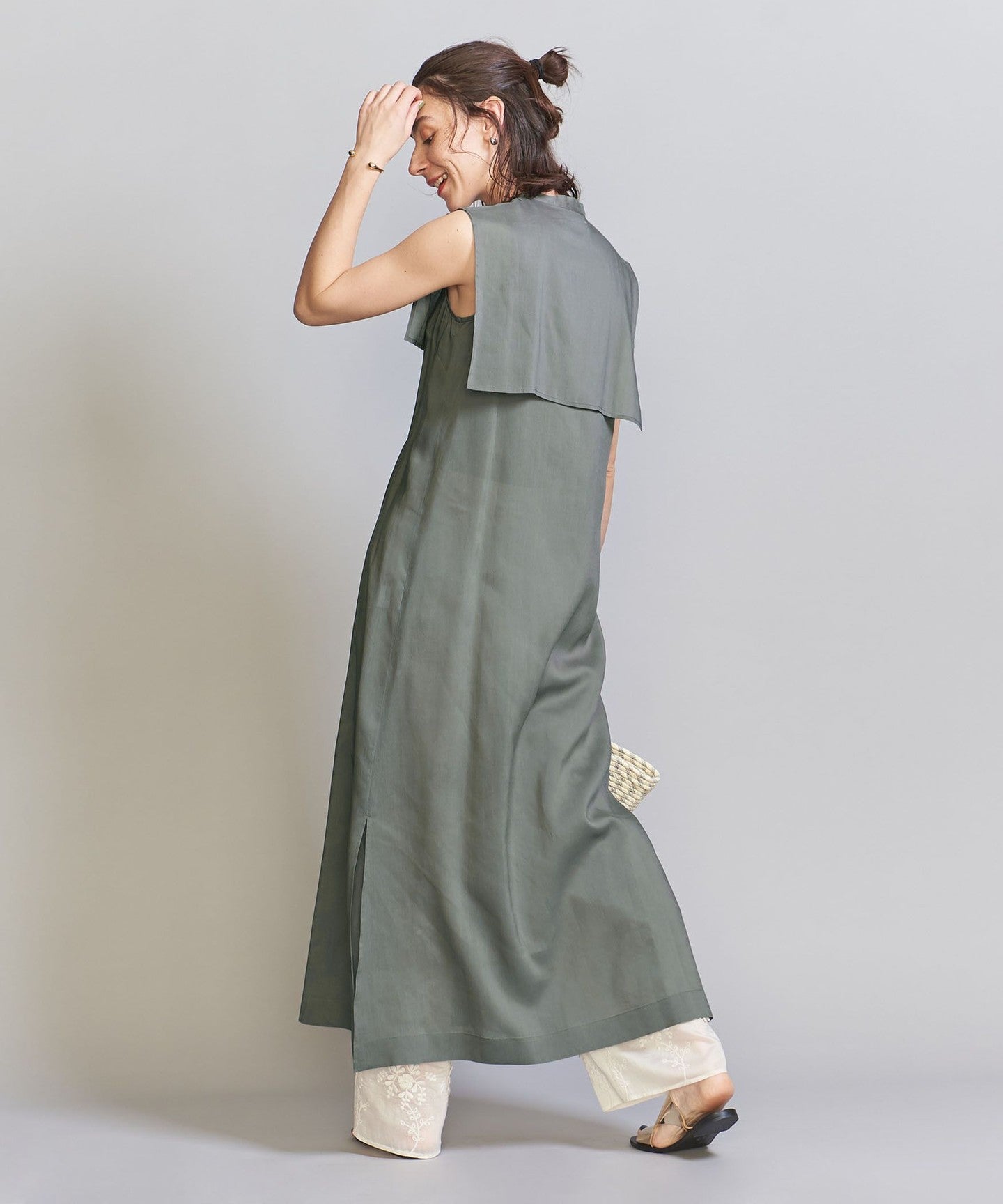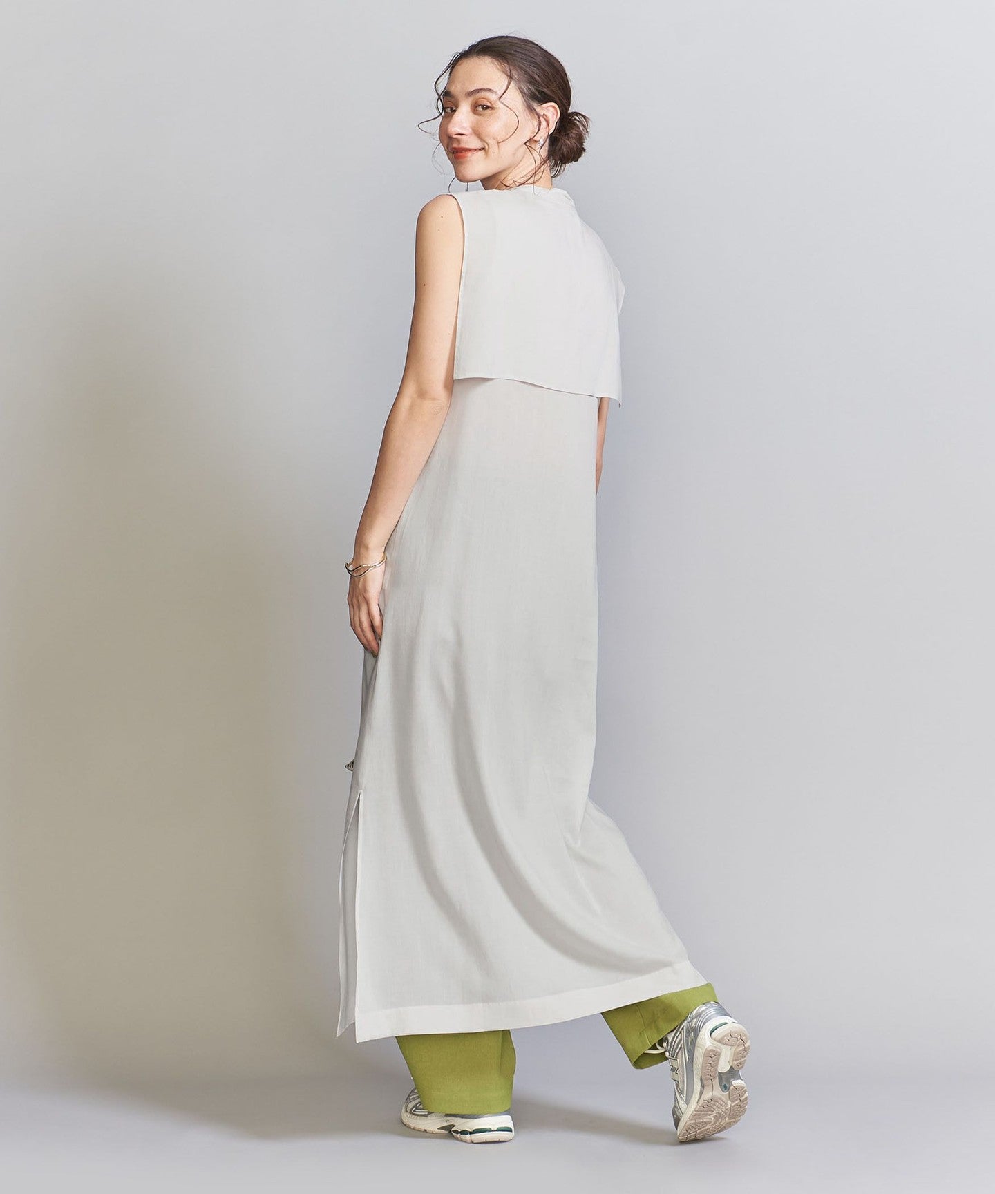A sleeveless top with a clean I-line silhouette and cape-like details that add a touch of glamour to your outfit.DRESS .