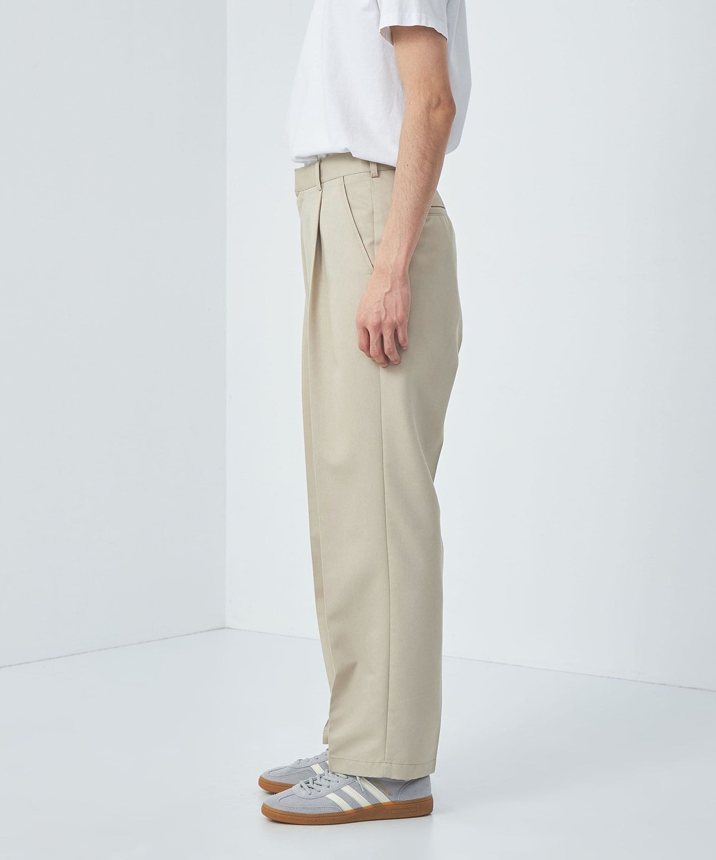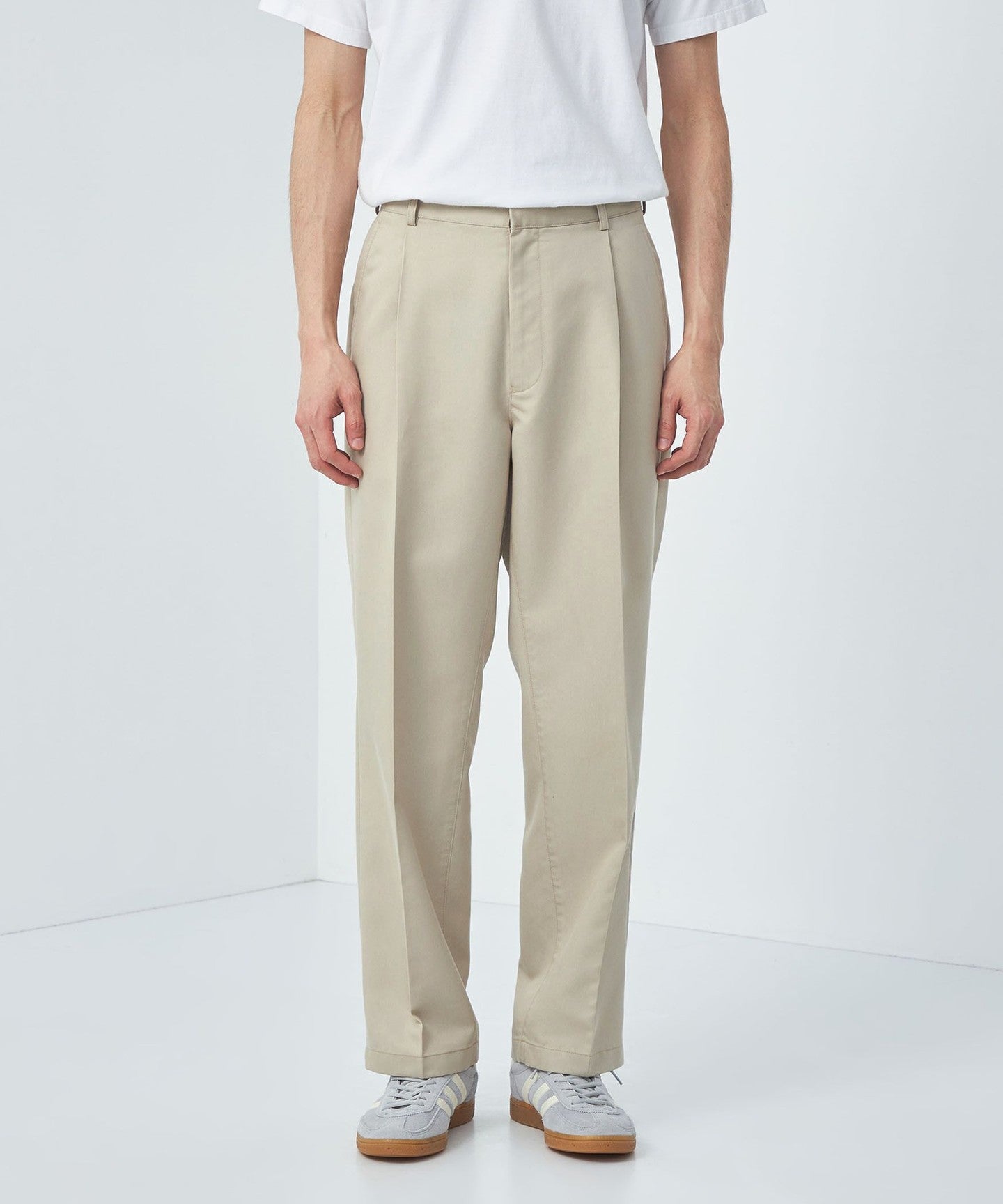These are wide pants with a single pleat and a relaxed fit around the waist.