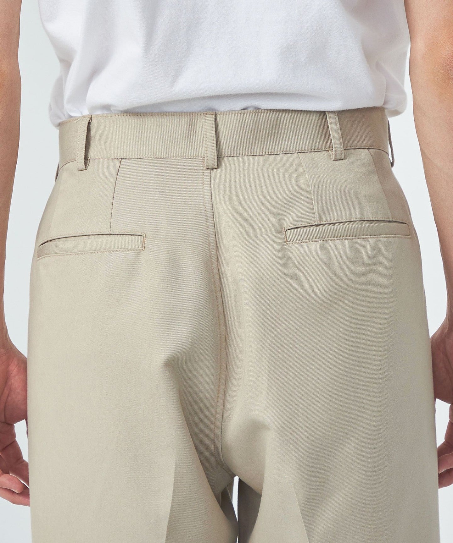Attention has been paid to the fine details, such as the mar-belt style design on the back of the waist and the hip pockets with welt edges.