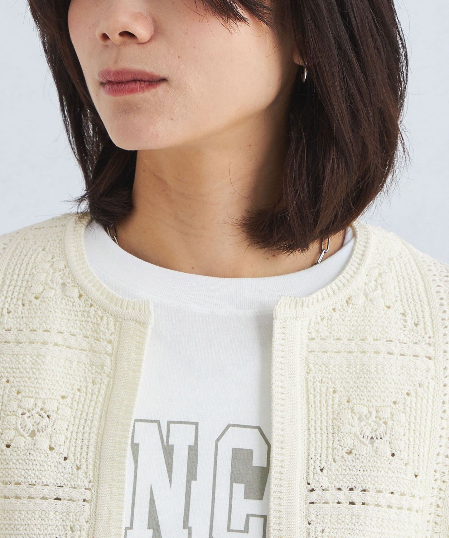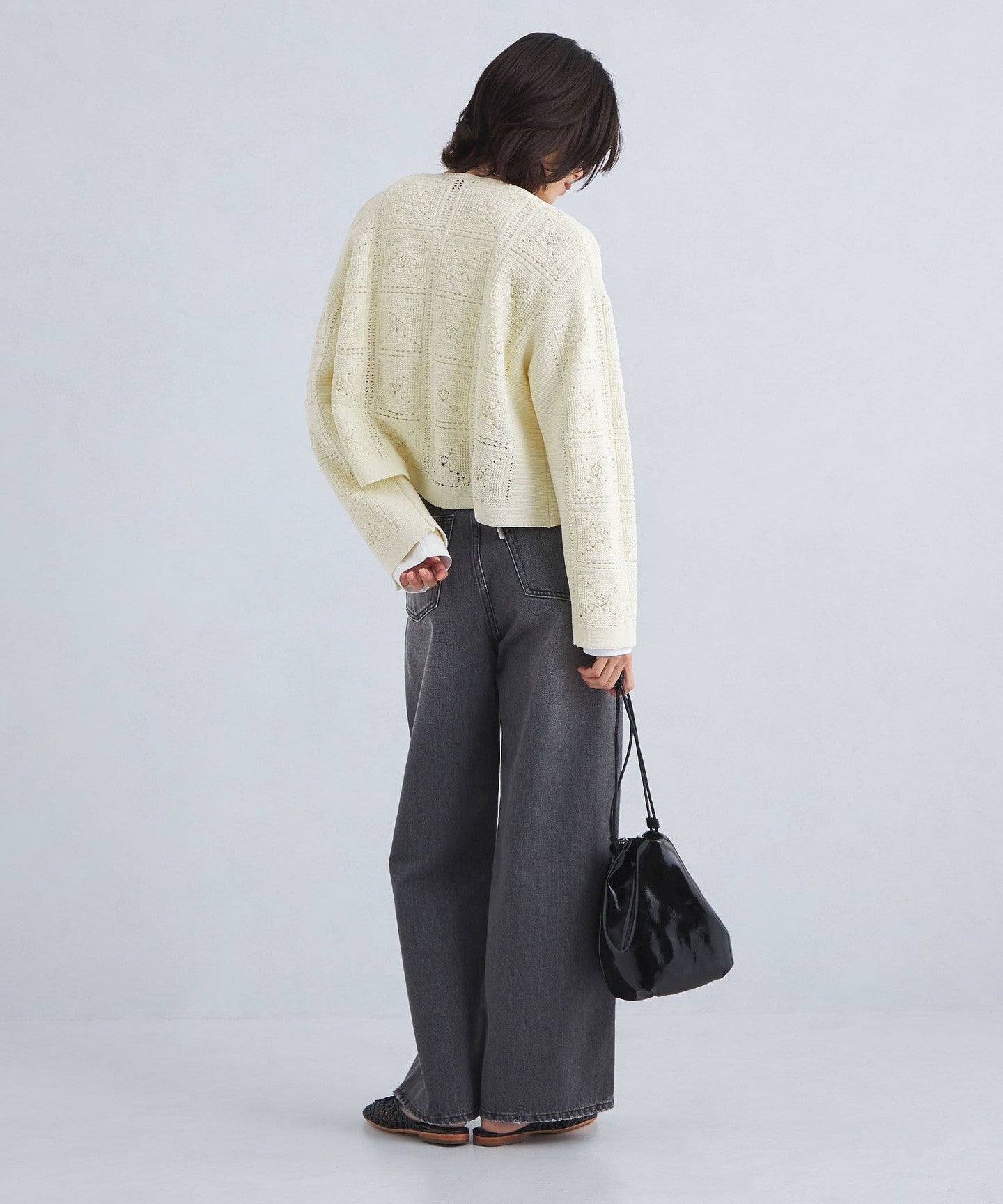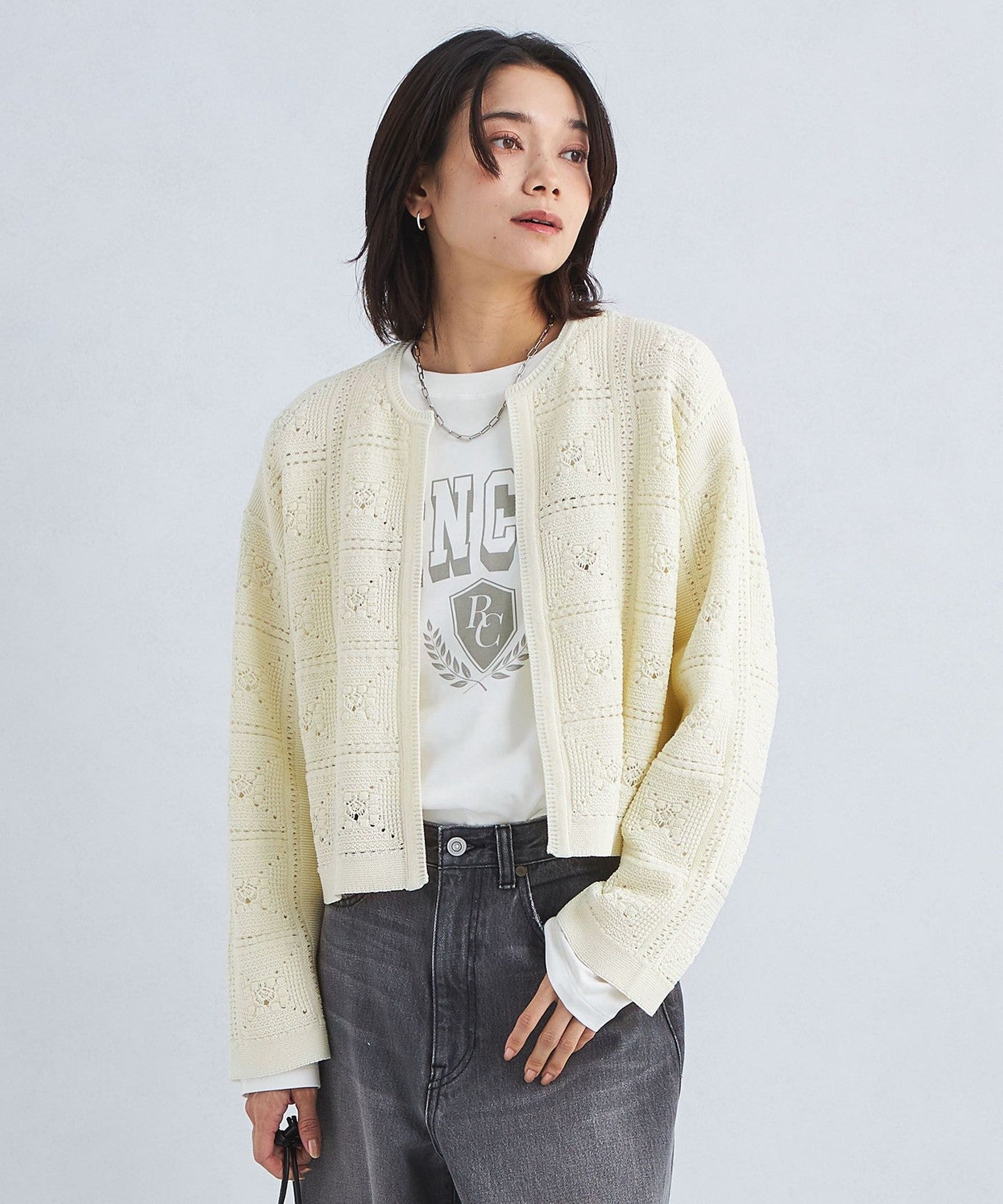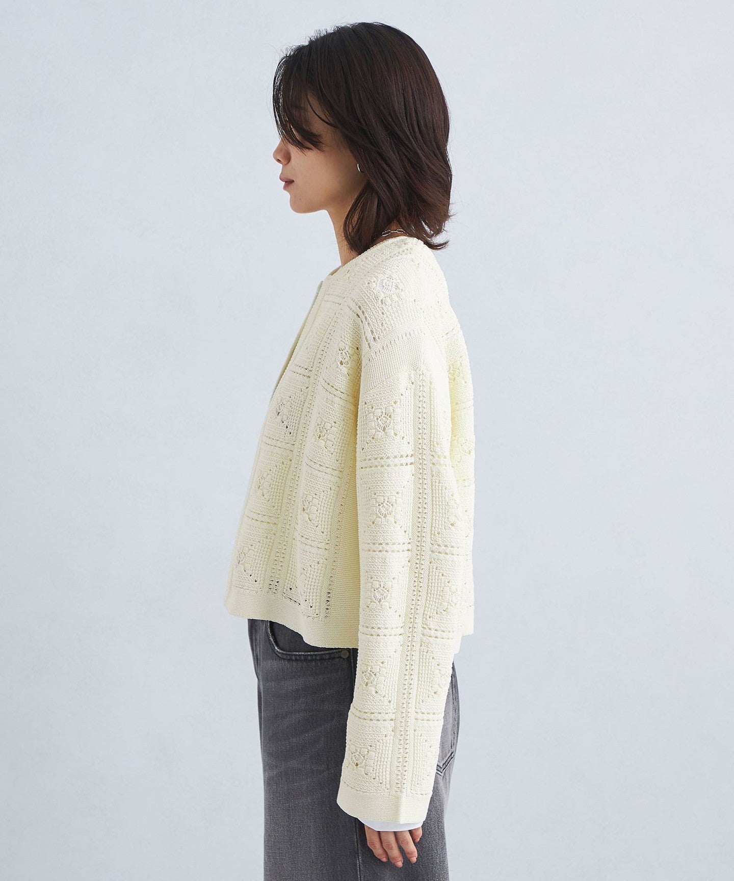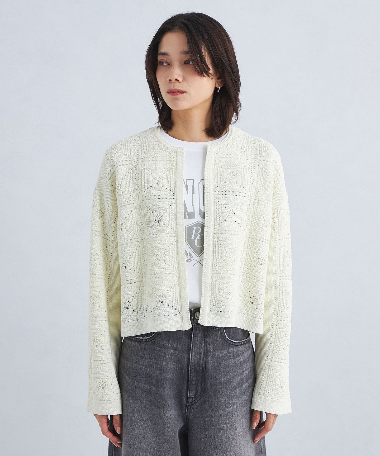 A crocheted knit cardigan that adds a casual touch to your outfit.