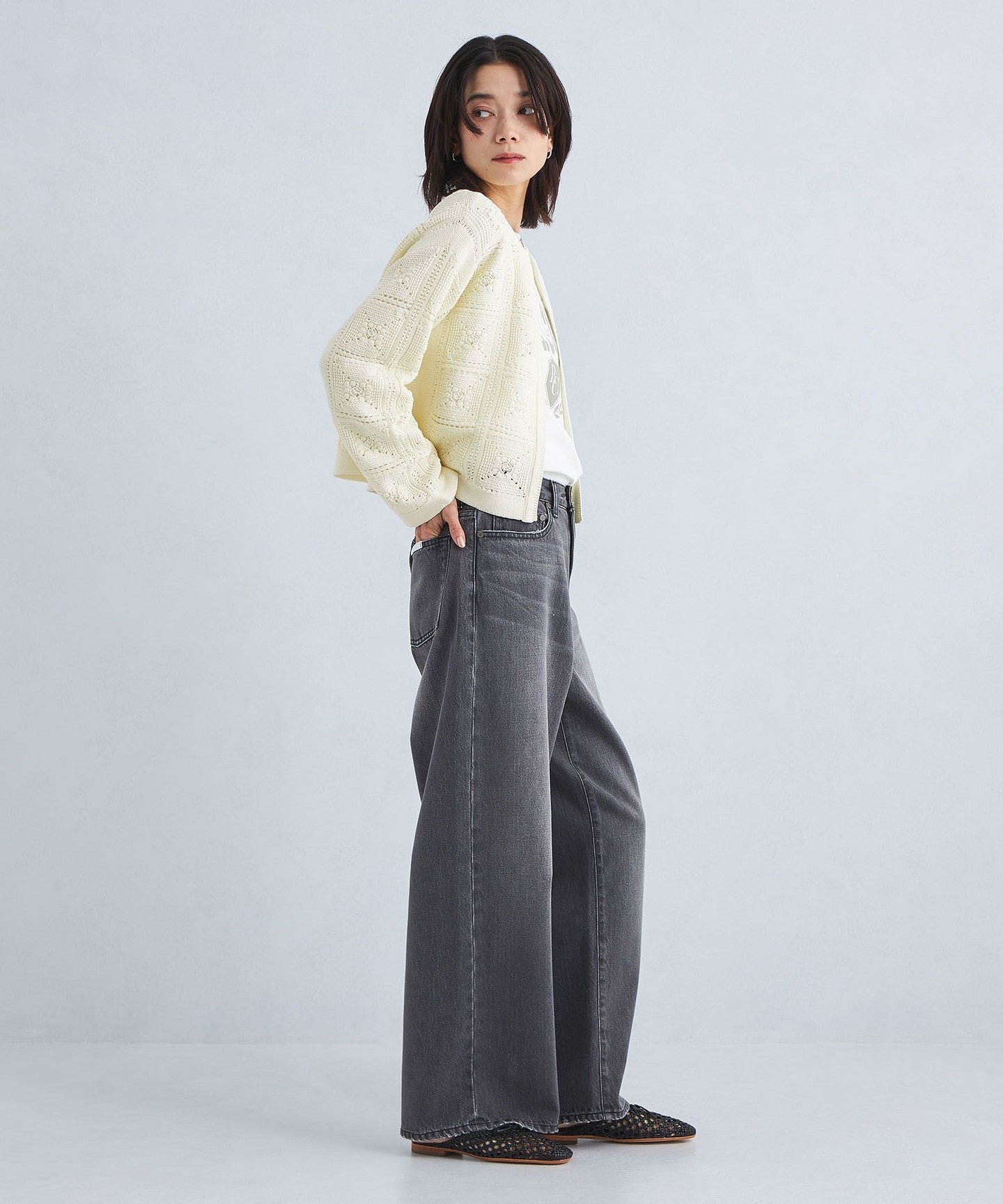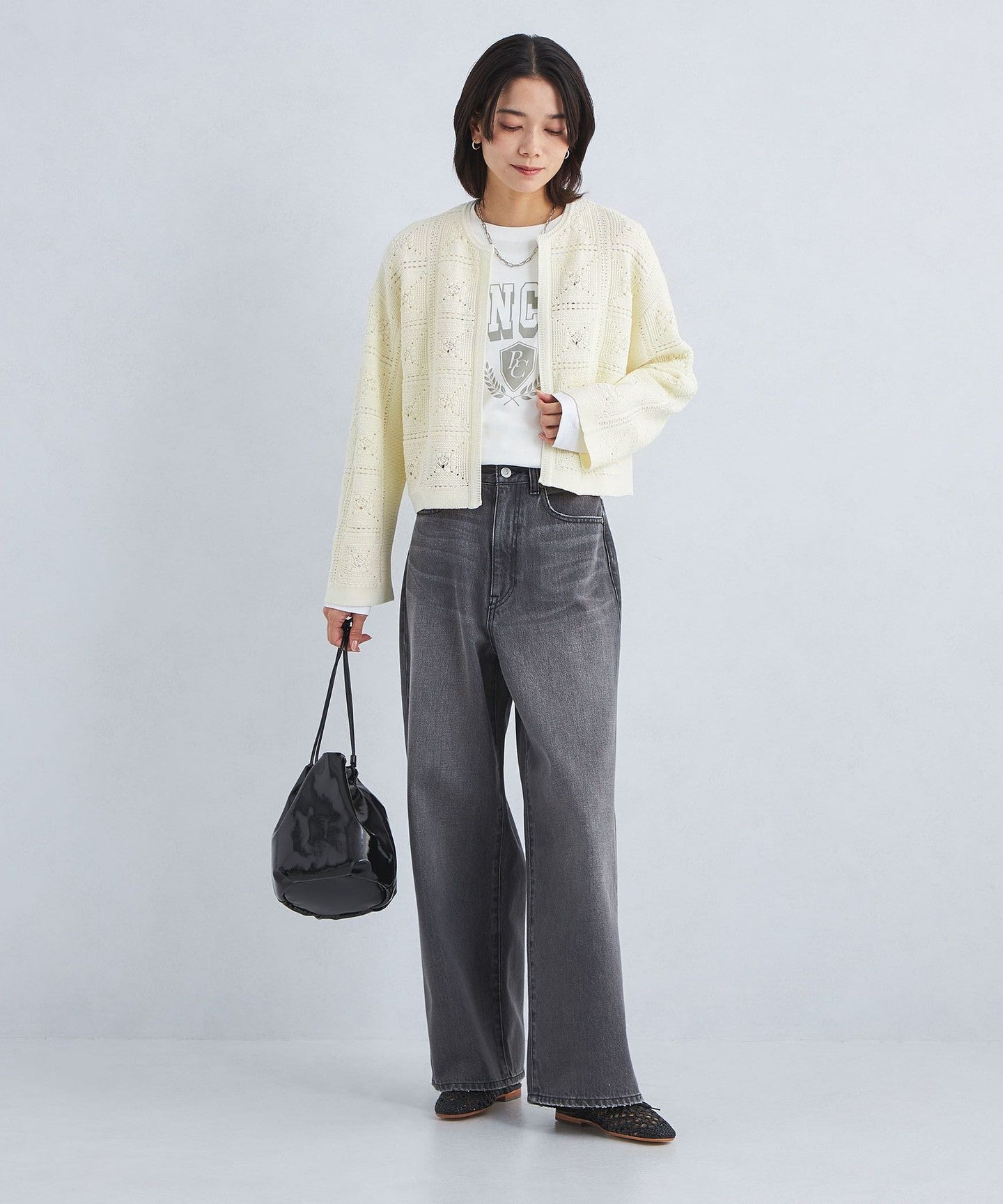 The silhouette has a moderately loose width and wide cuffs, creating a balanced, relaxed feel.
