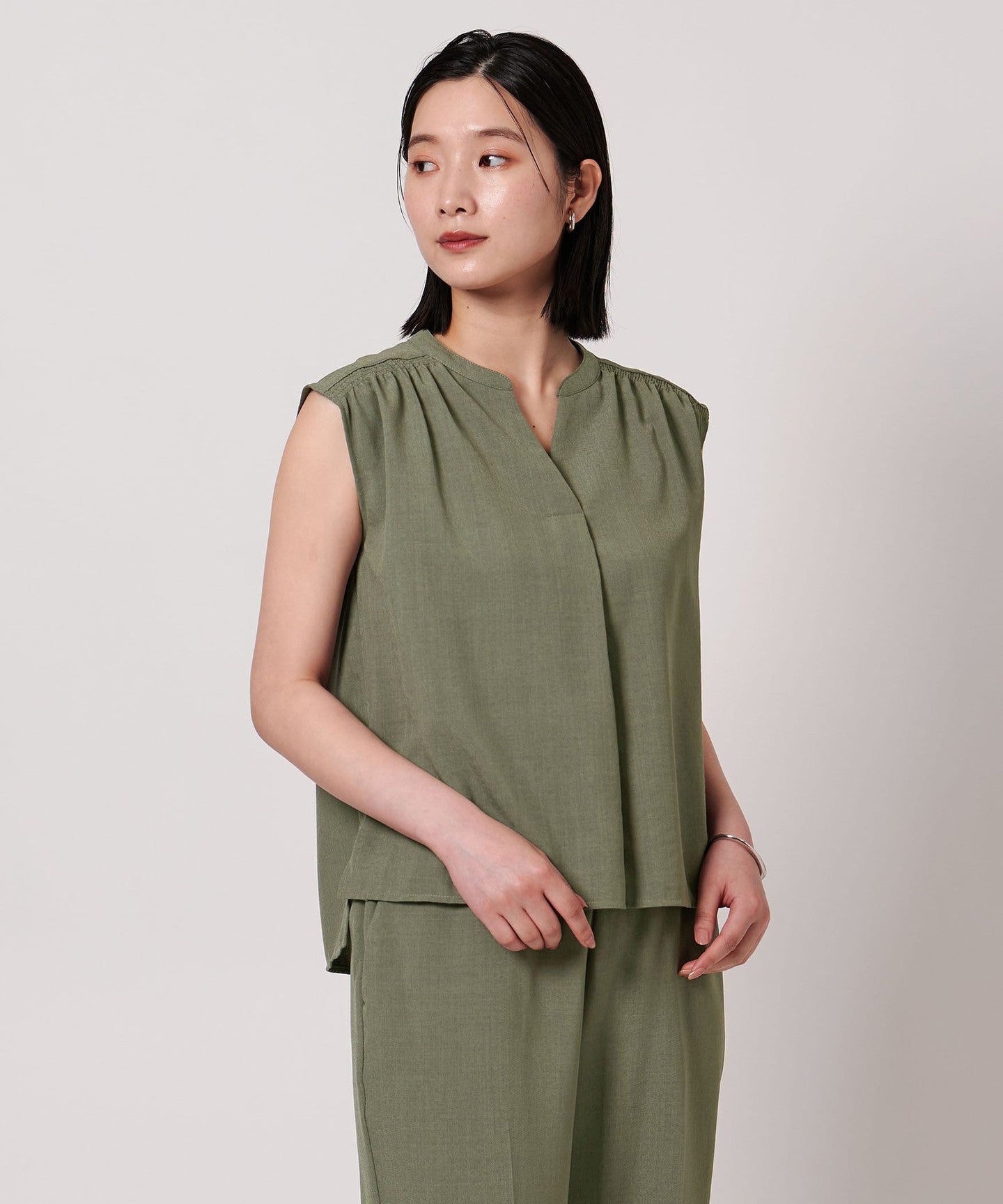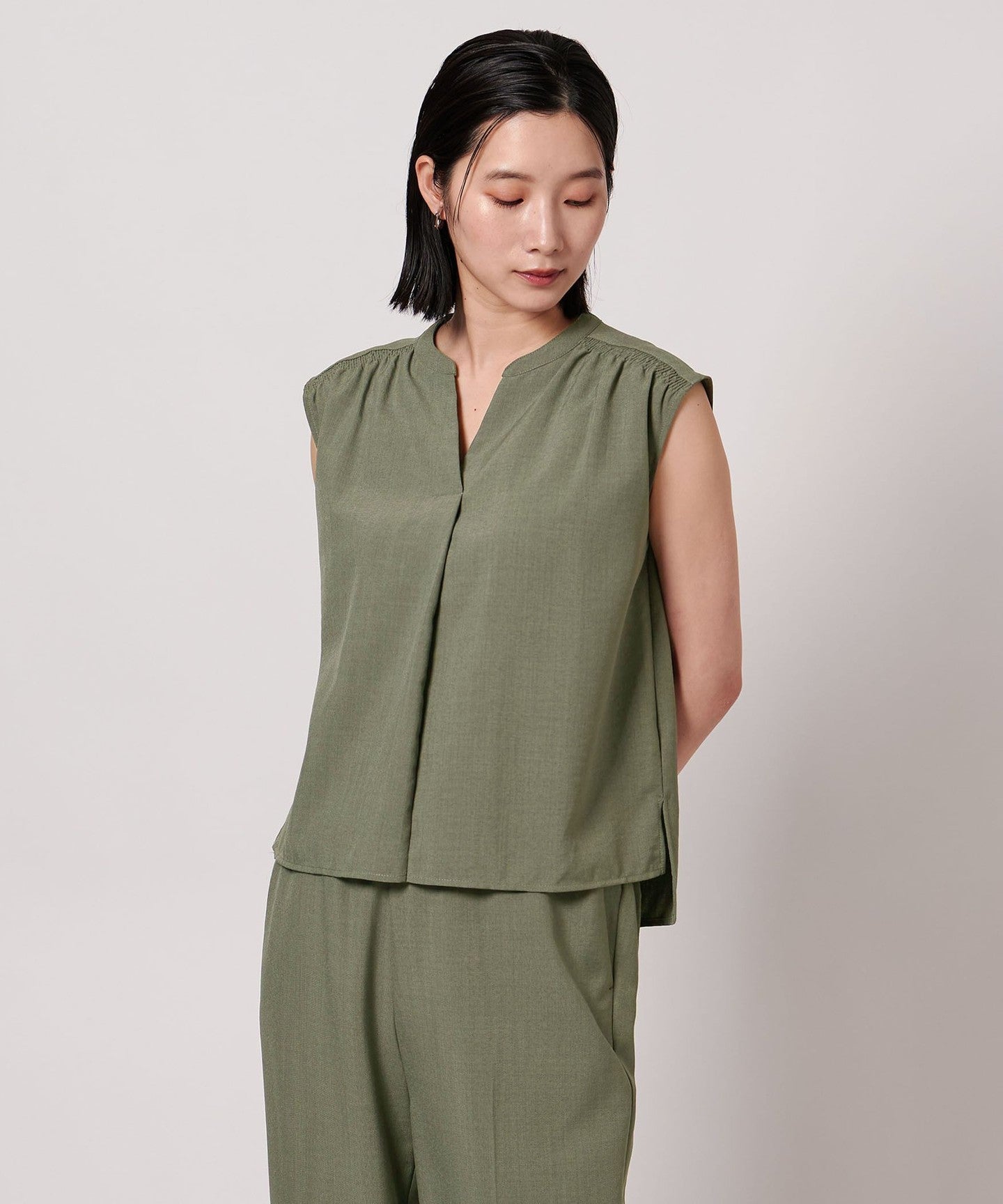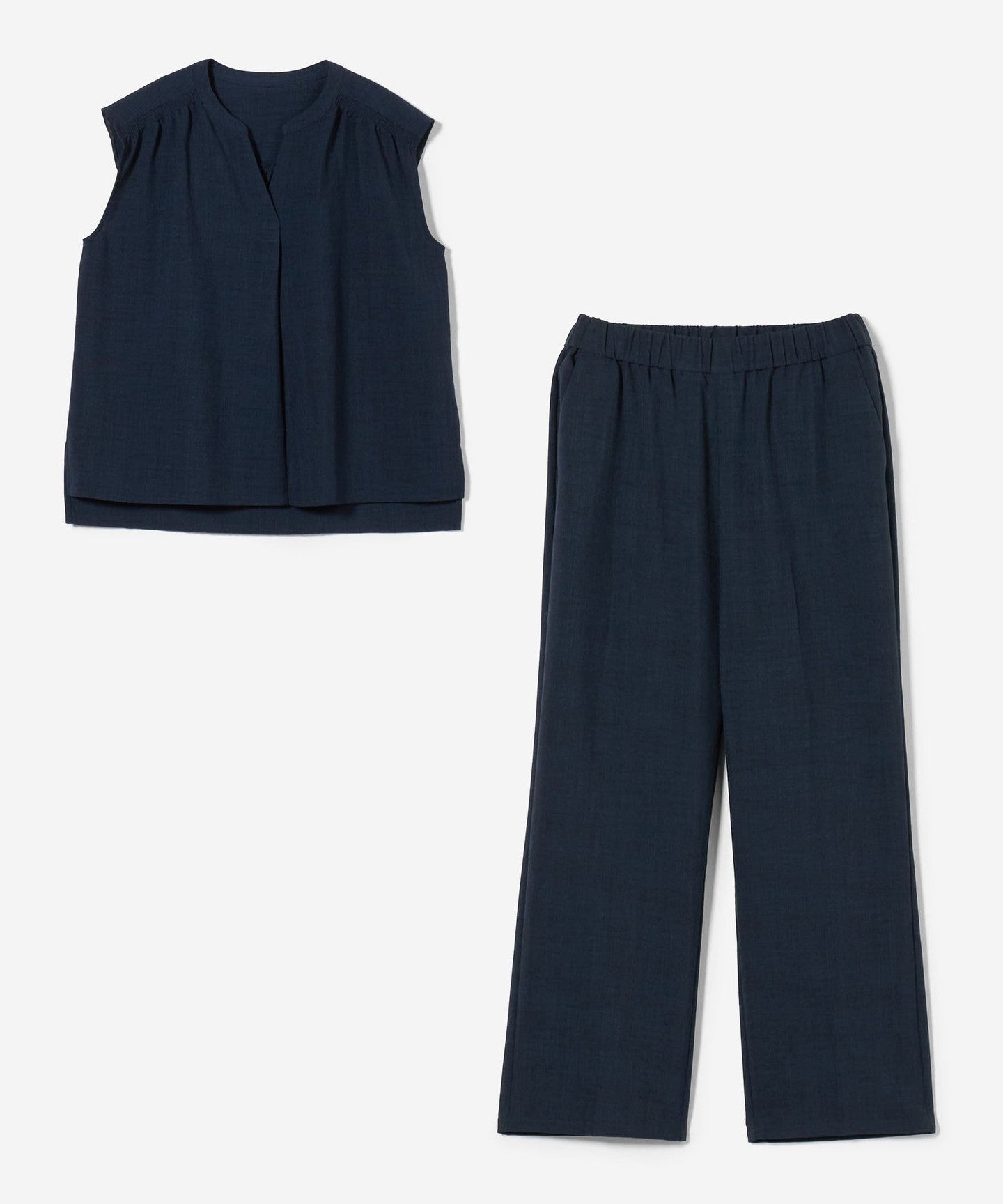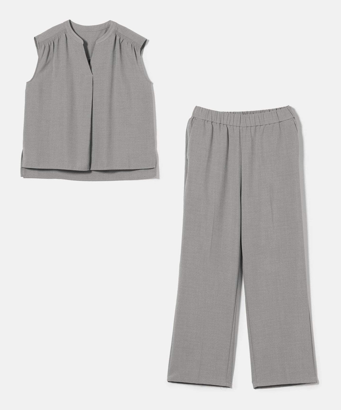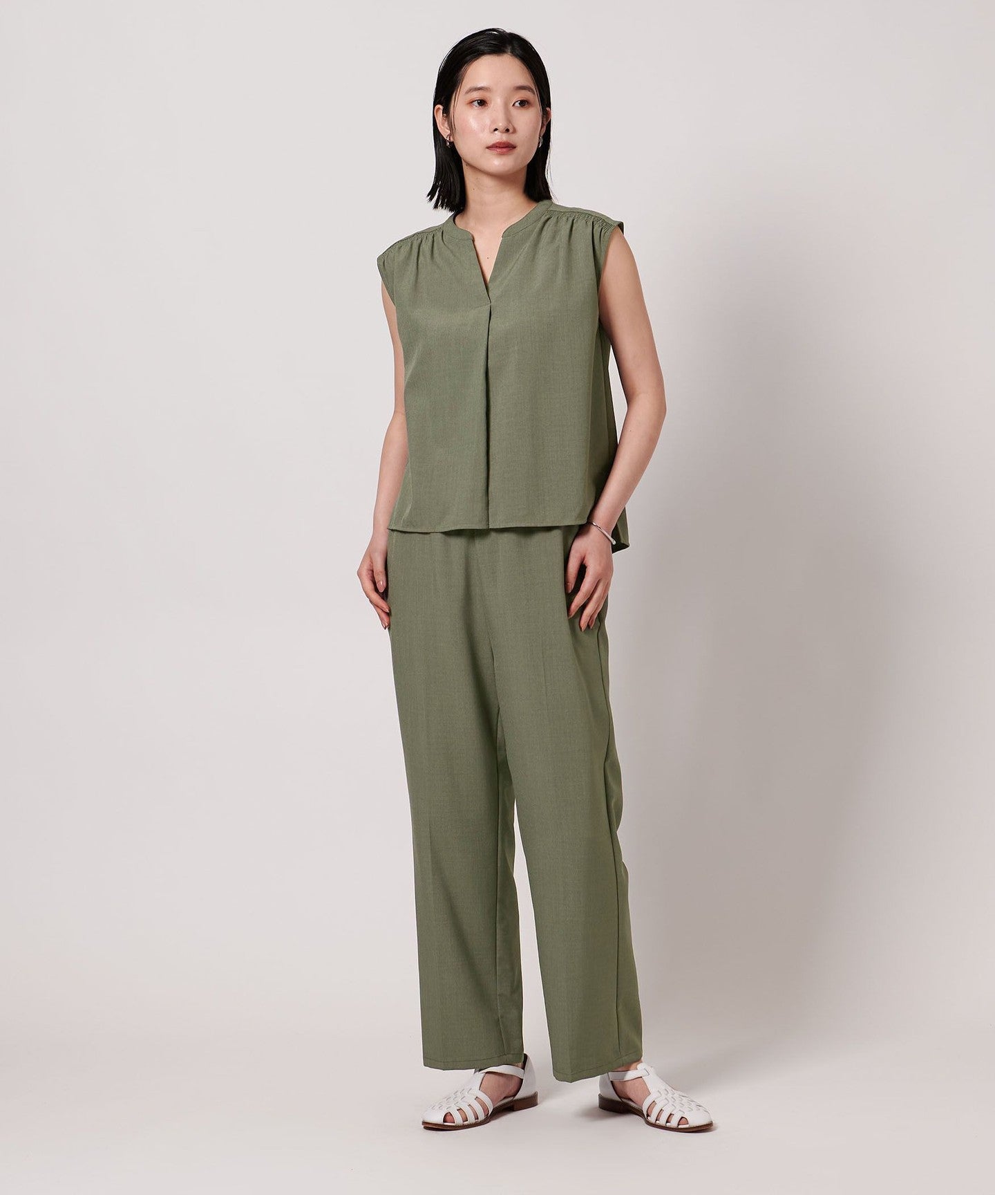 DK.GRAY:ブラウス;ポリエステル100% パンツ;ポリエステル100% BEIGE:ブラウス;ポリエステル100% パンツ;ポリエステル100% NAVY:ブラウス;ポリエステル100% パンツ;ポリエステル100% |