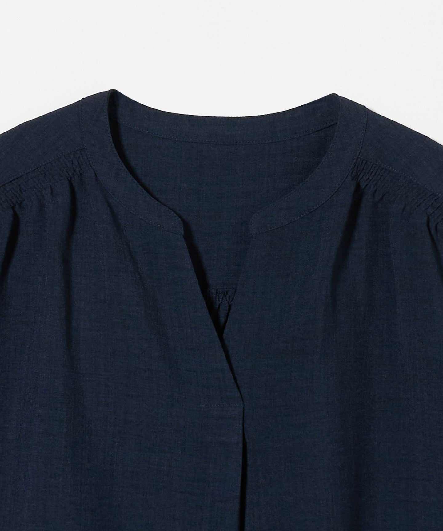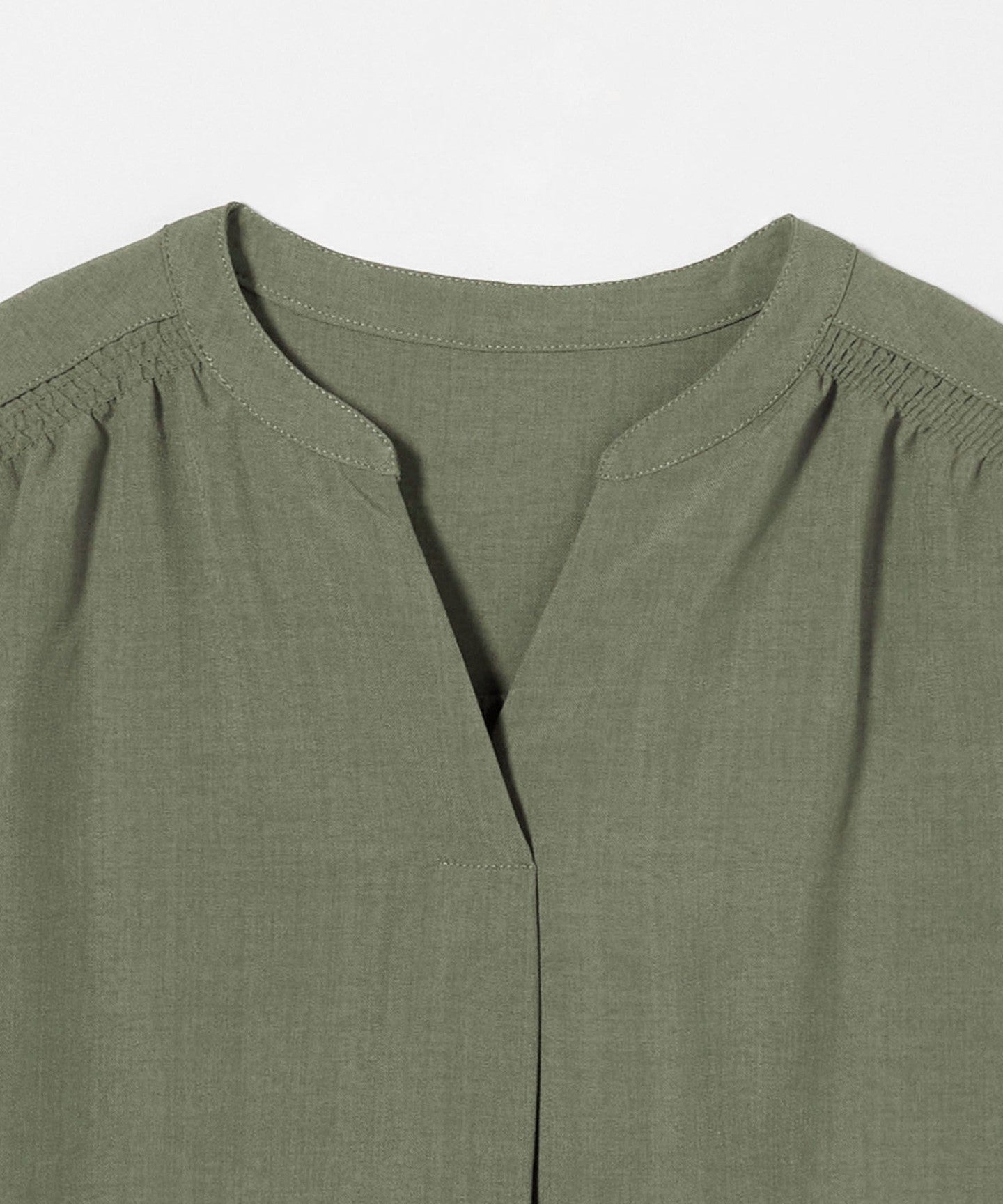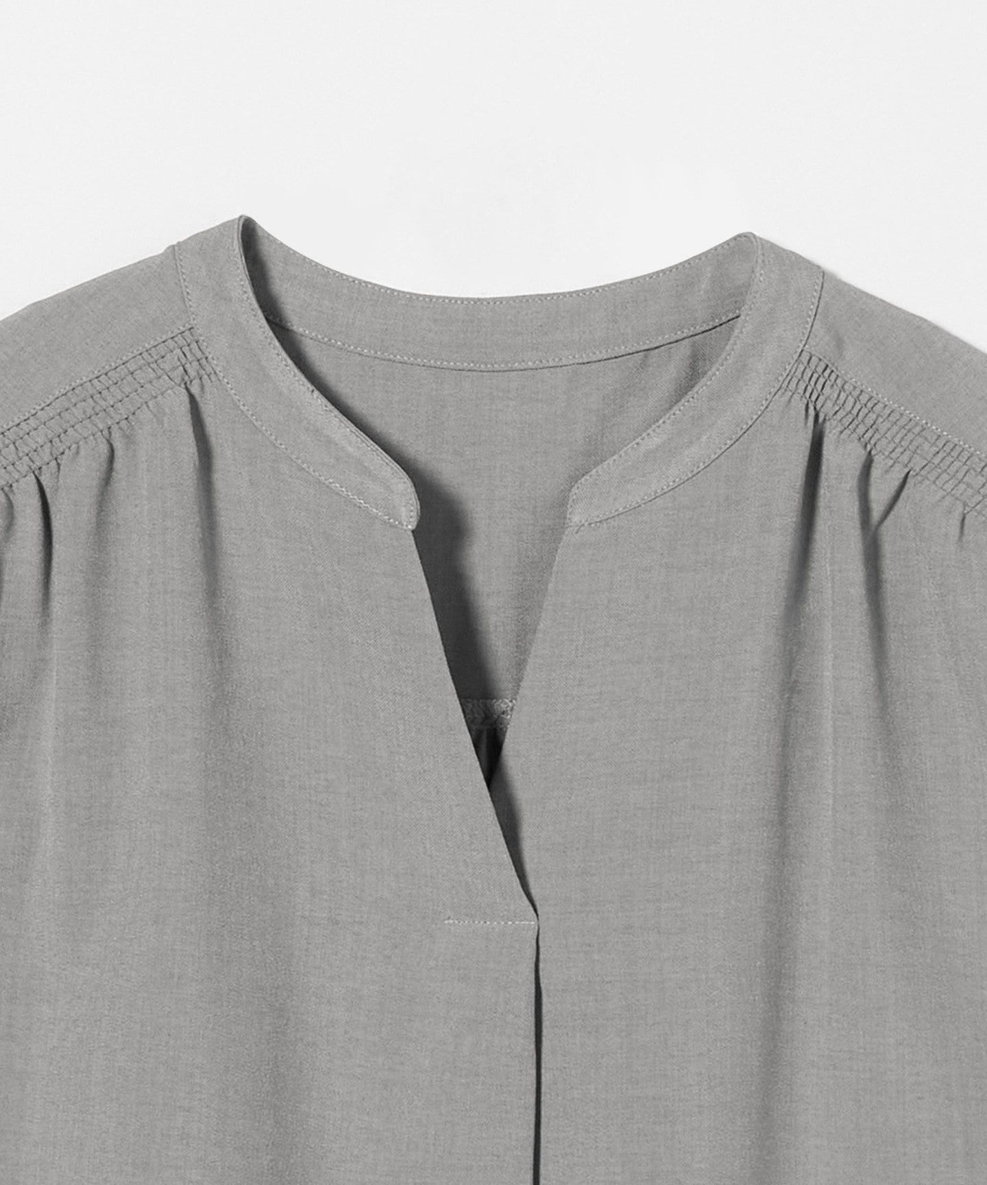 The key features of the blouse are the keyhole neckline that gives a clean look to the neck and the feminine gathered panels.