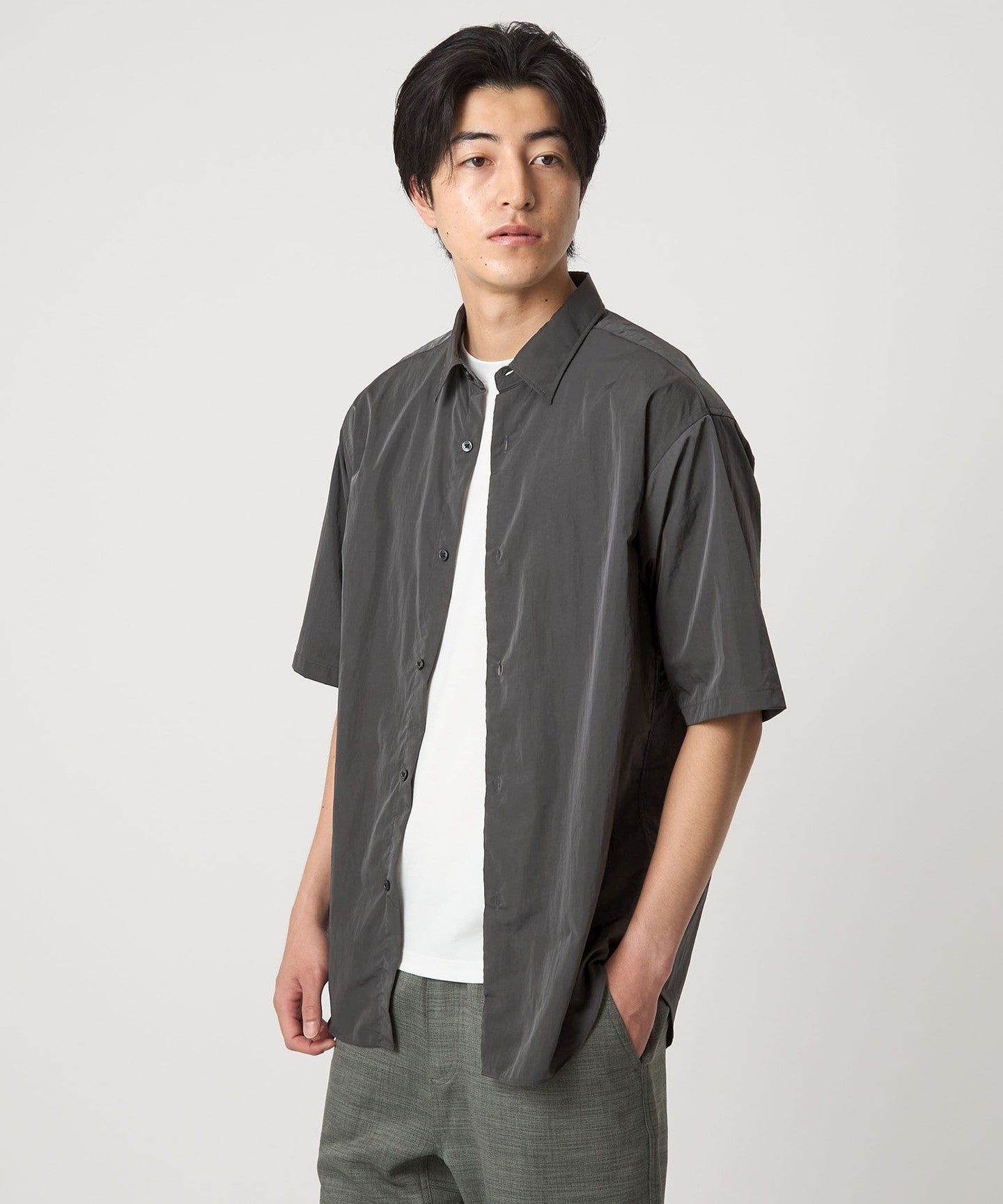 A DAY IN THE LIFEGlossy Nylon Relaxed Regular Collar Shirt - Water-absorbent and quick-drying -