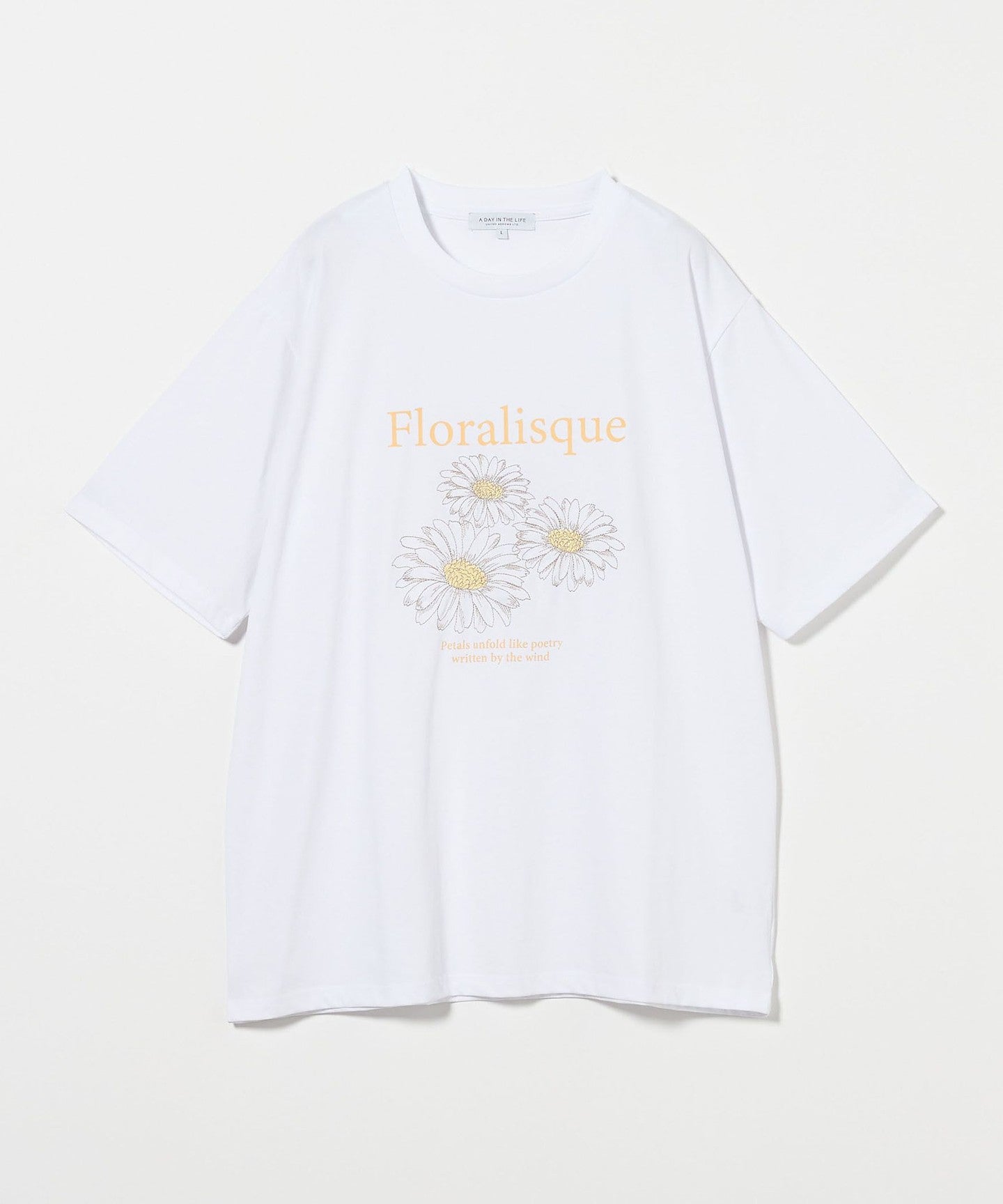 A DAY IN THE LIFEFlower Embroidery Relaxed Crew Neck T-shirt
