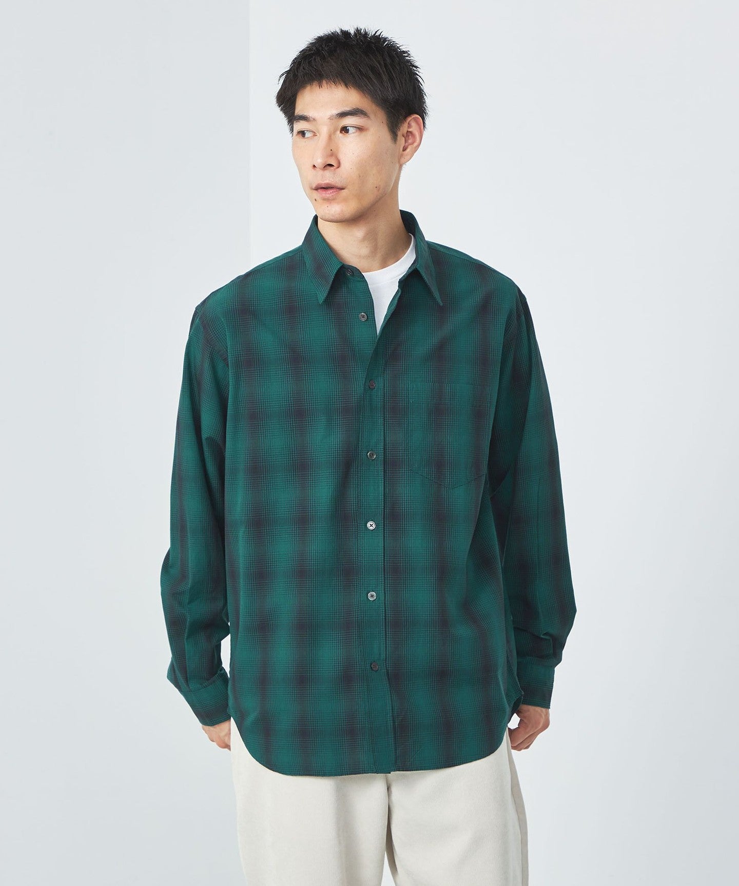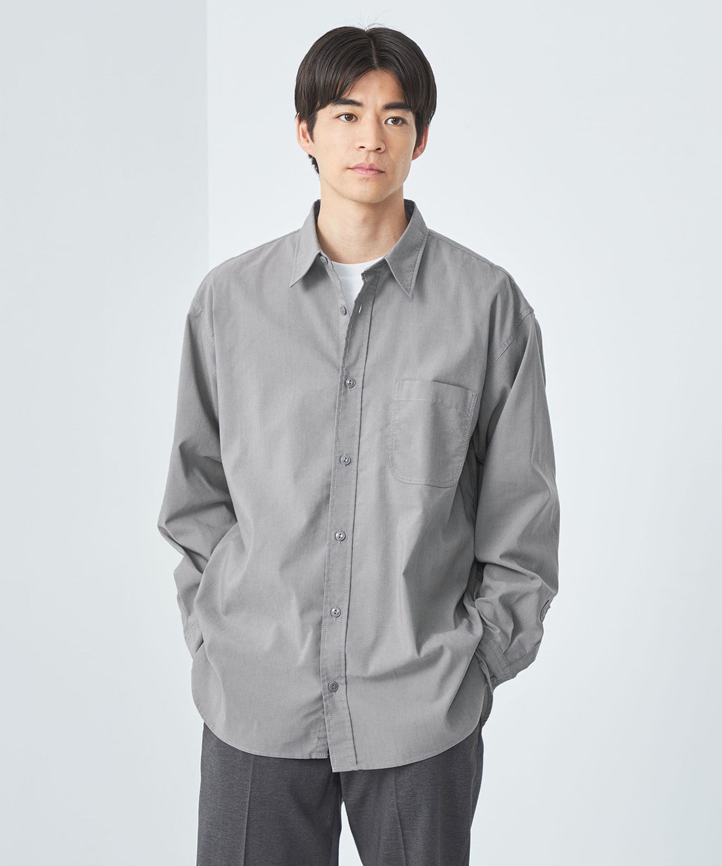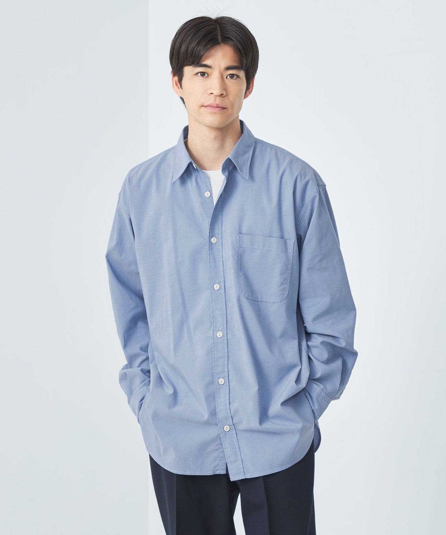 green label relaxingFINE BASIC Chambray Regular Collar Shirt -Stretch-