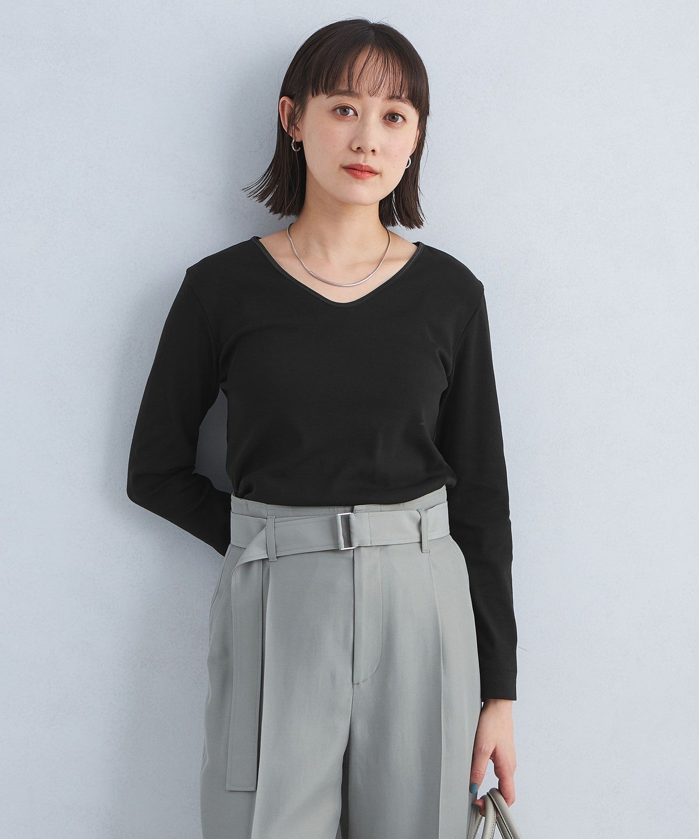 green label relaxingBasic Milling V-neck Pullover Cut and Sew