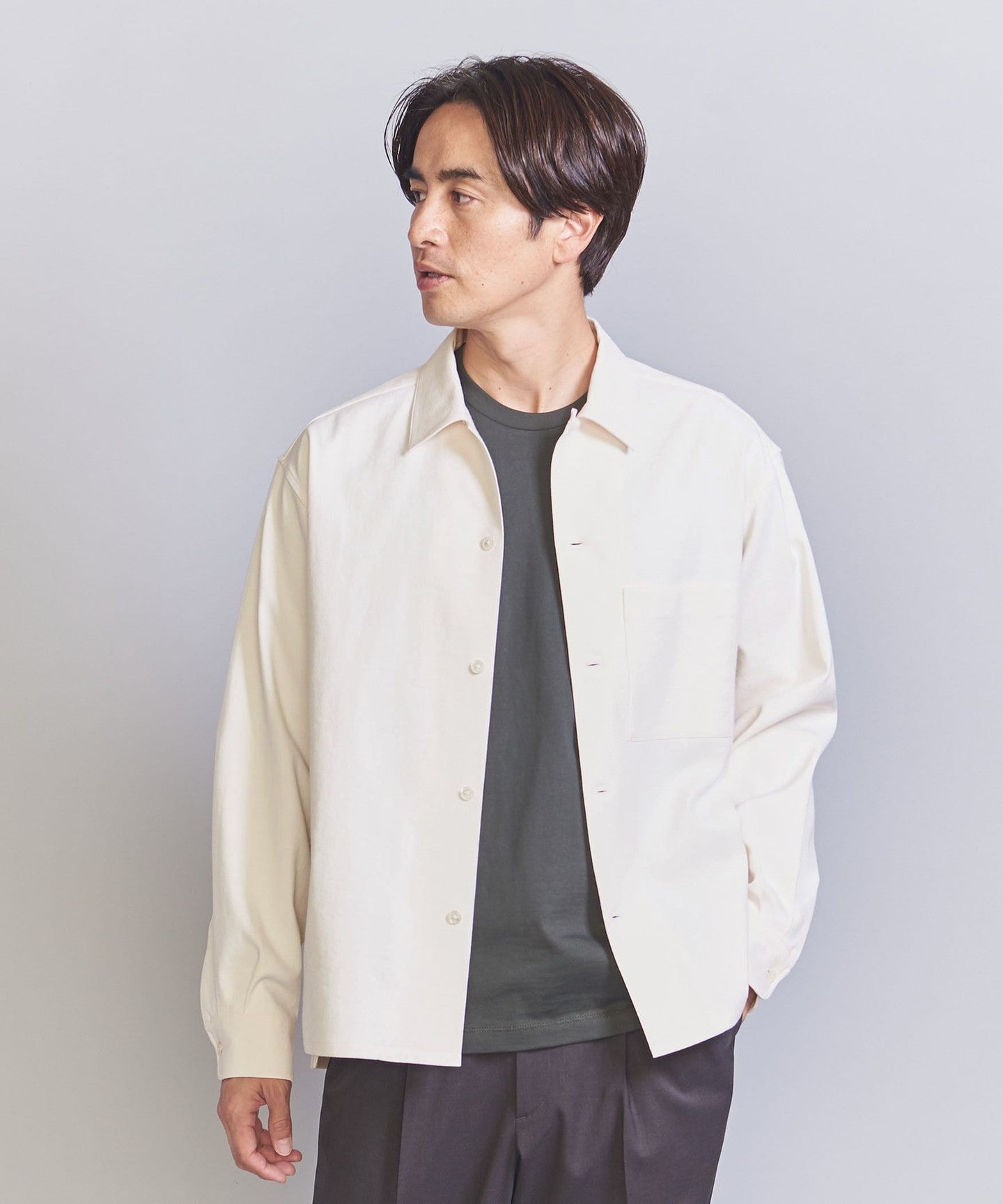 Slightly thickFABRIC For a lighter feel, try this in early spring. OUTER GARMENT A perfect piece to throw on casually.