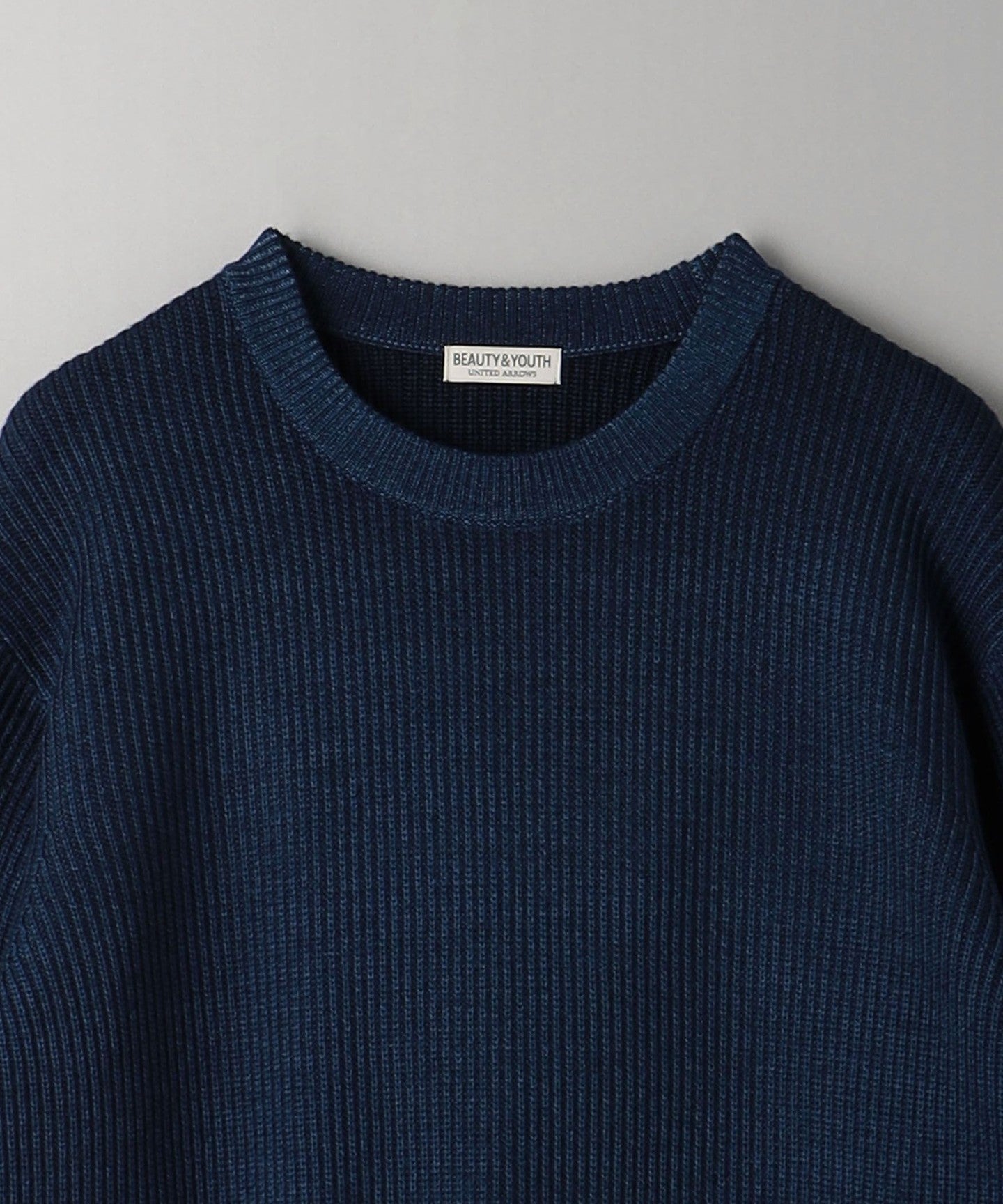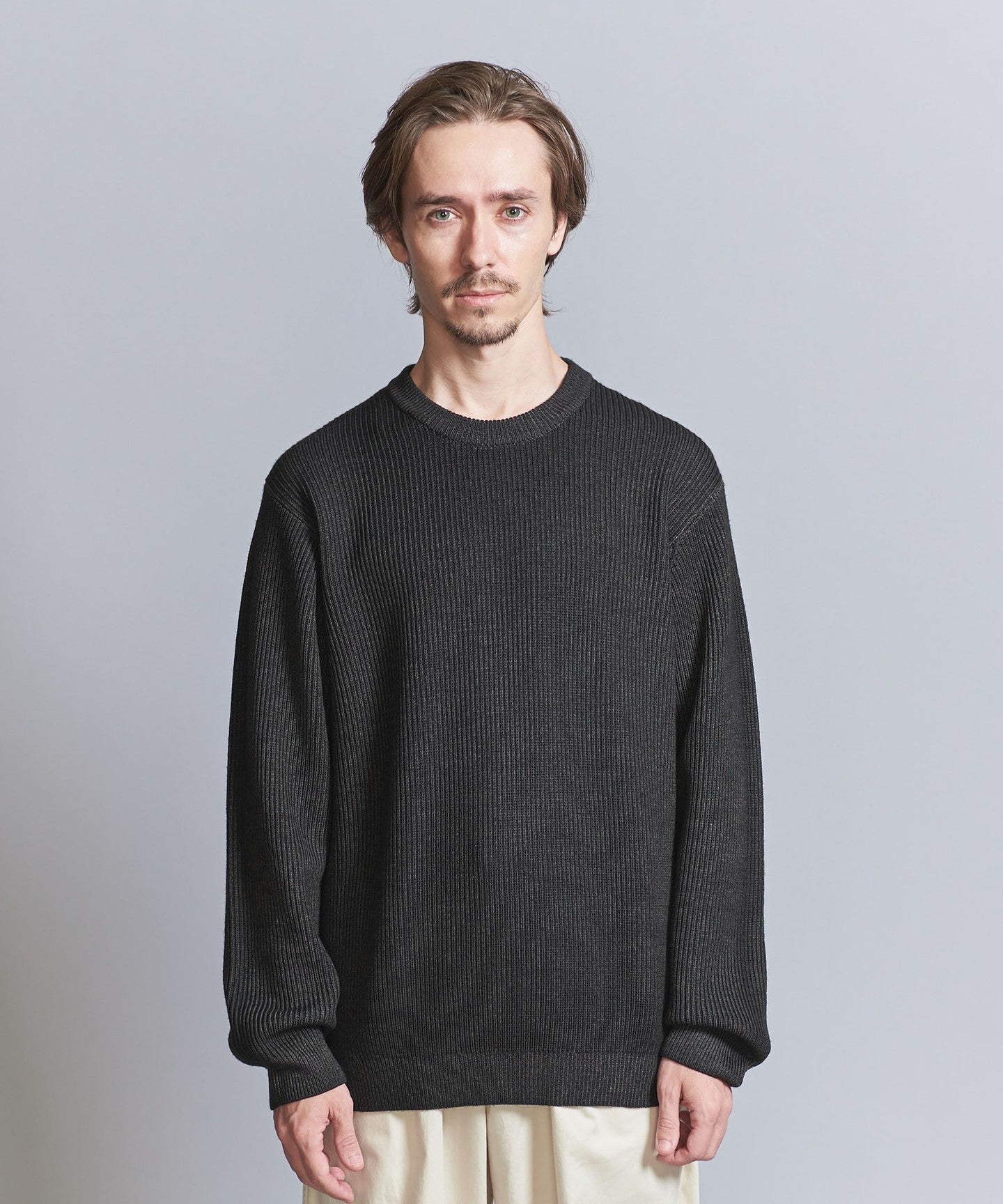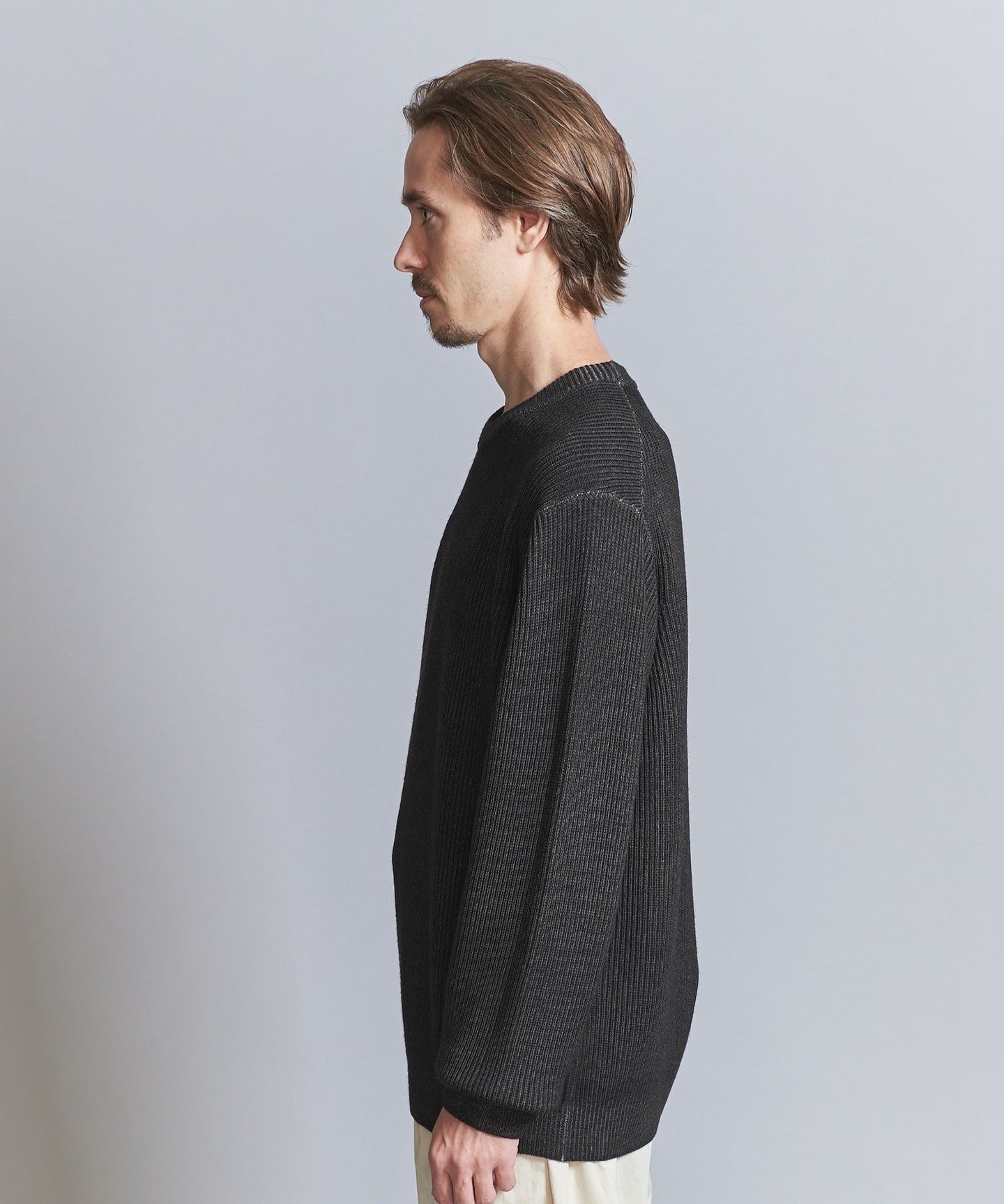 A crew neck knit with a vintage-like nuanced color that will catch your eye.