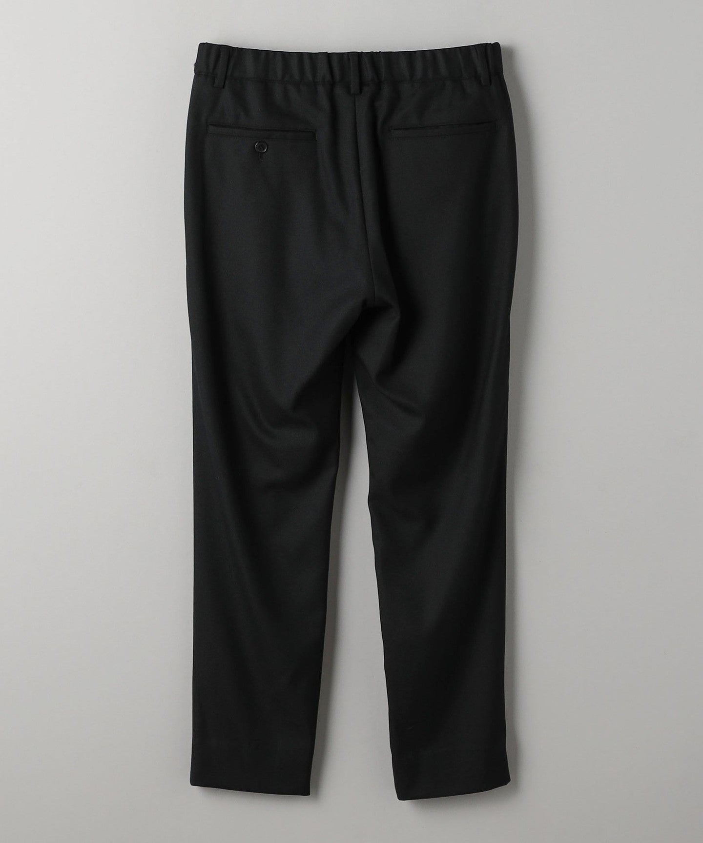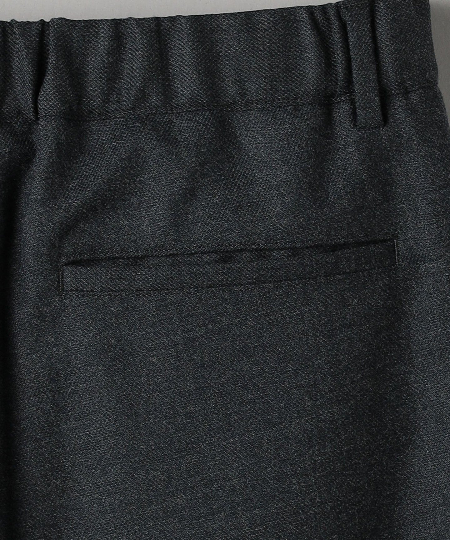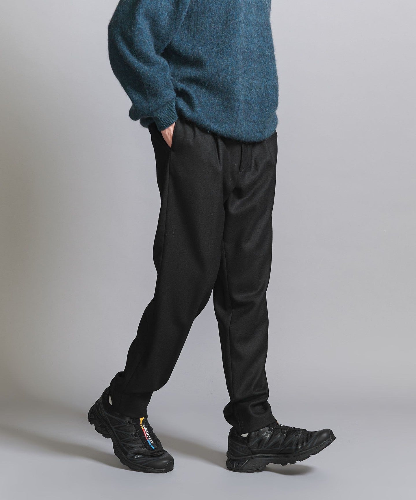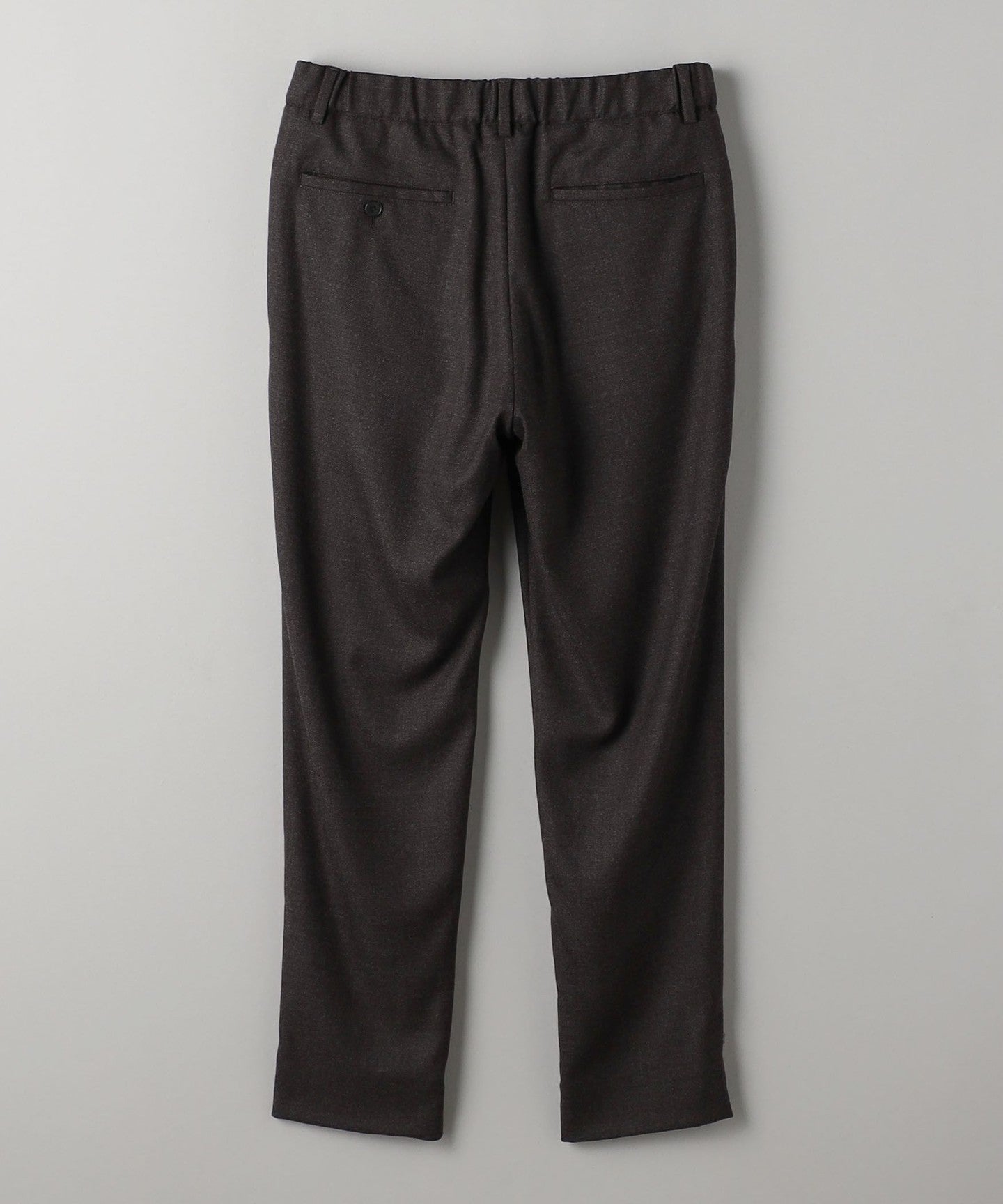 These easy slacks are made of a warm material suitable for the autumn and winter seasons and feature elastic shirring on the back.
