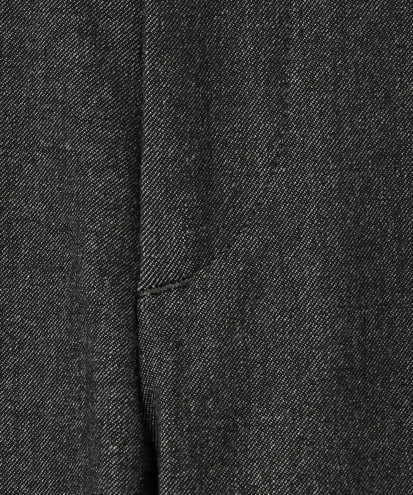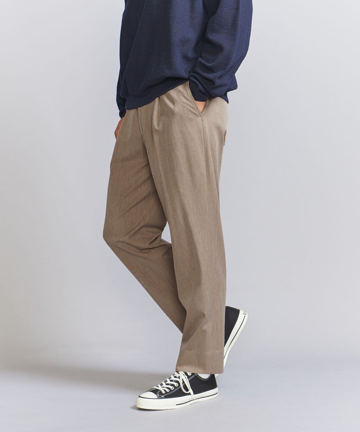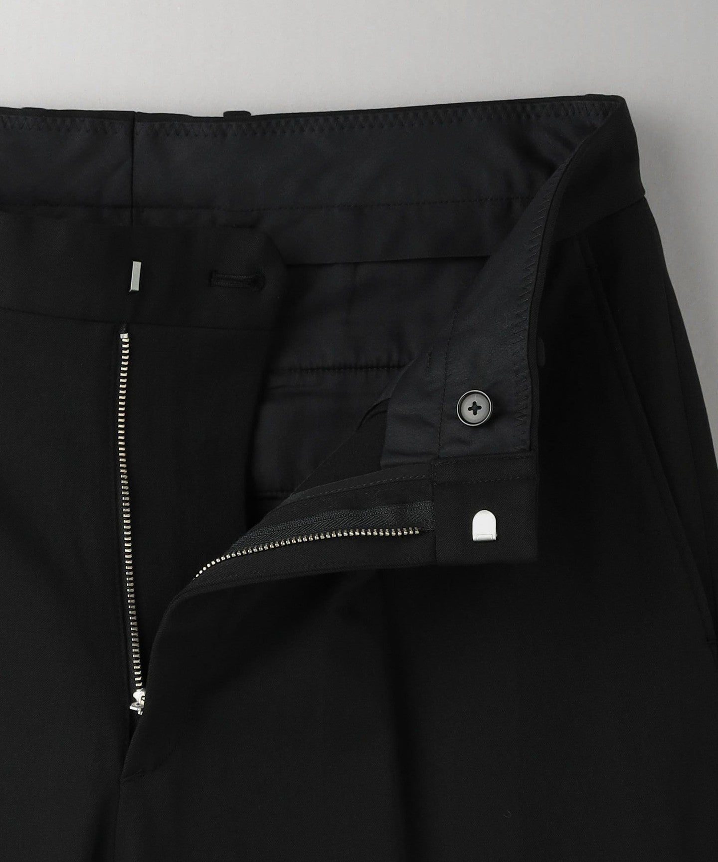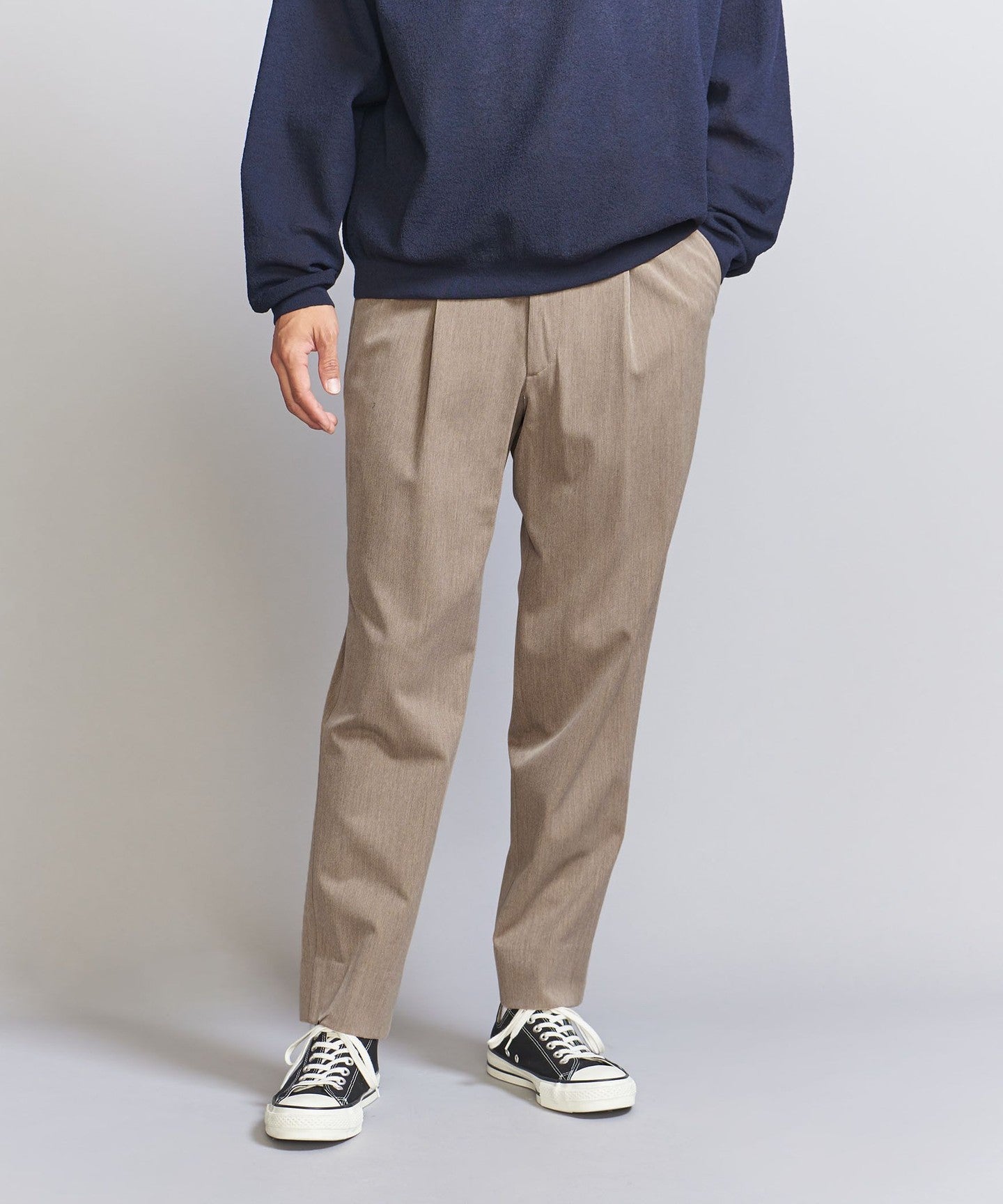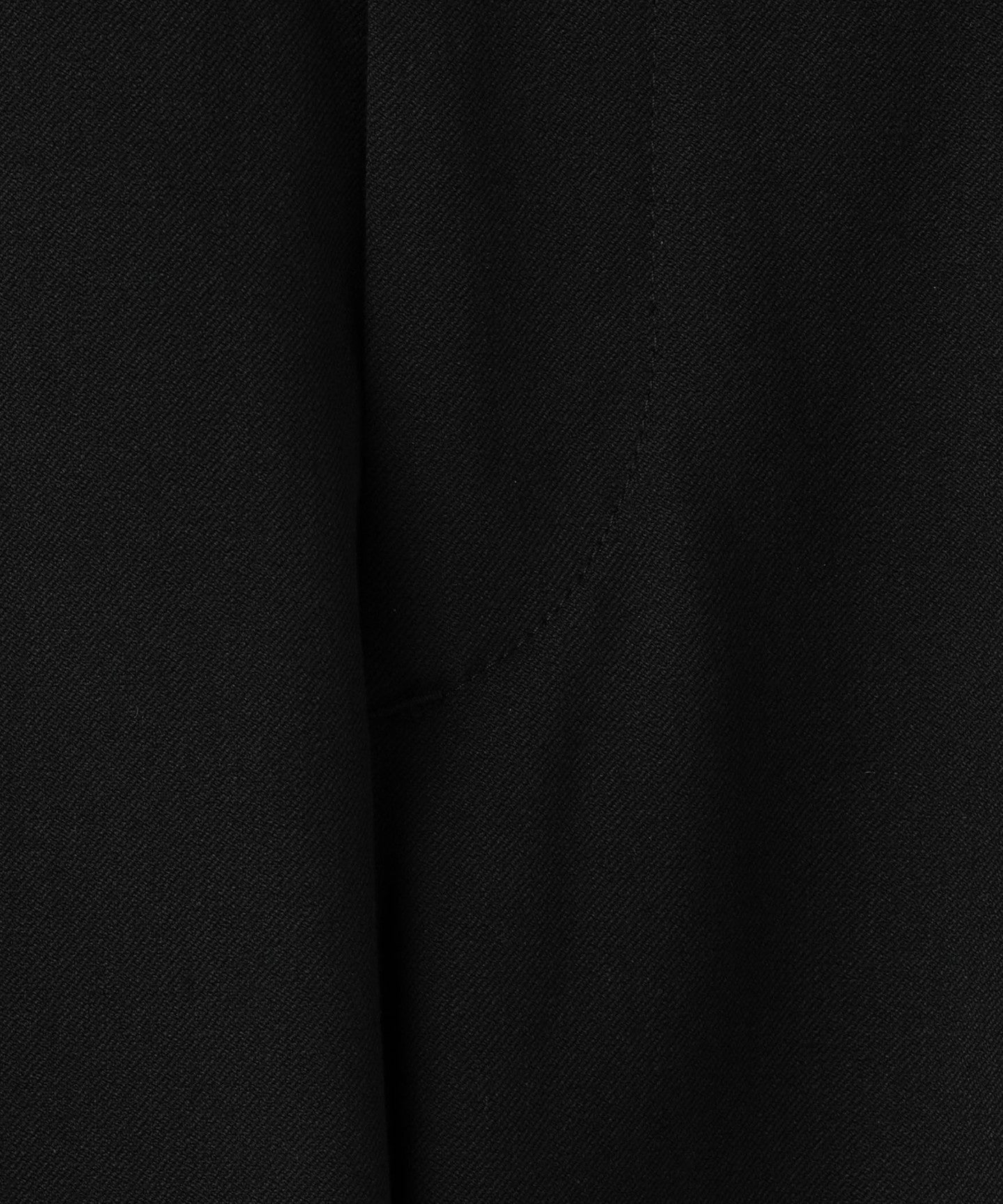 There are tucks around the waist to give room from the hips to the thighs, and the tapered silhouette gradually narrows towards the hem.