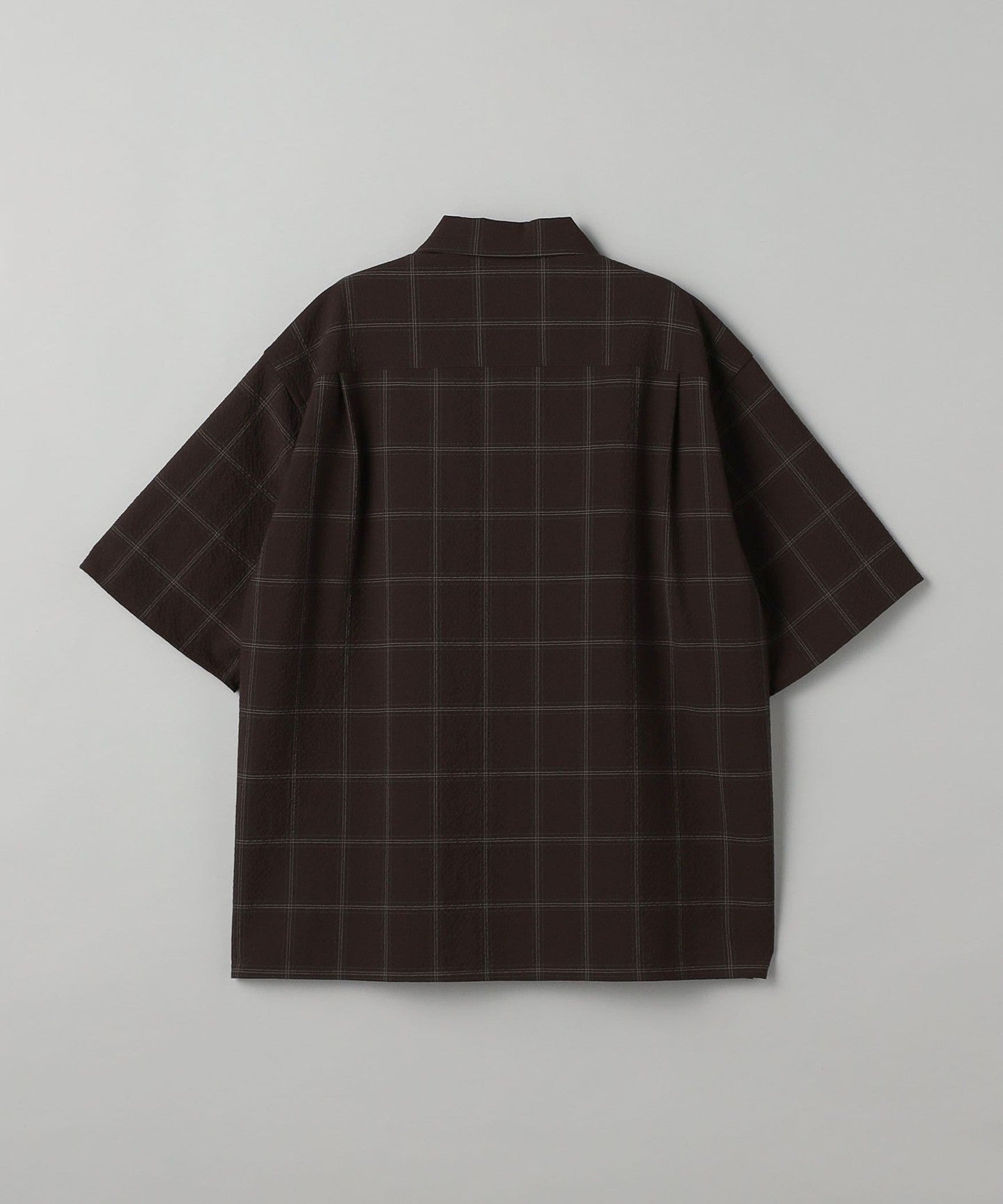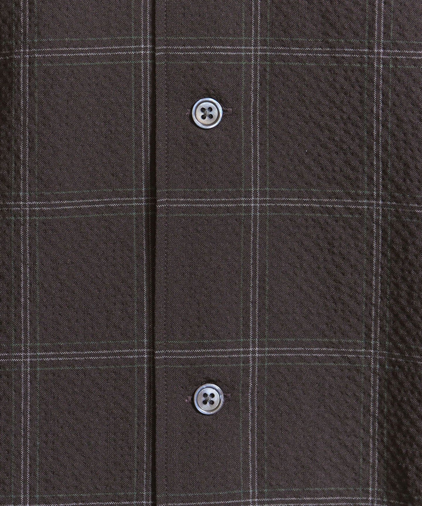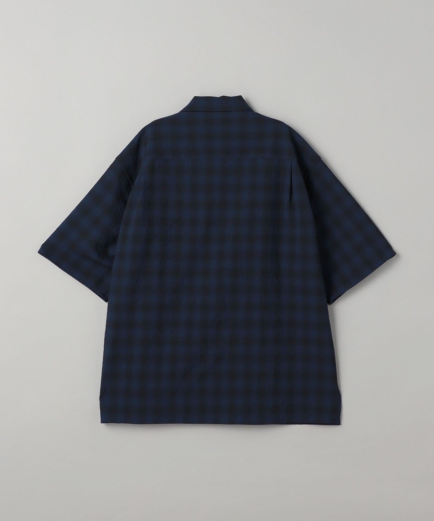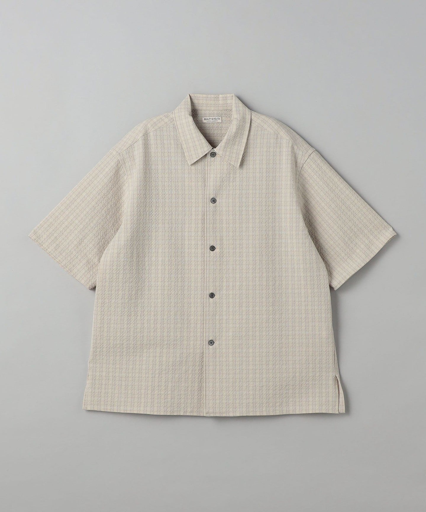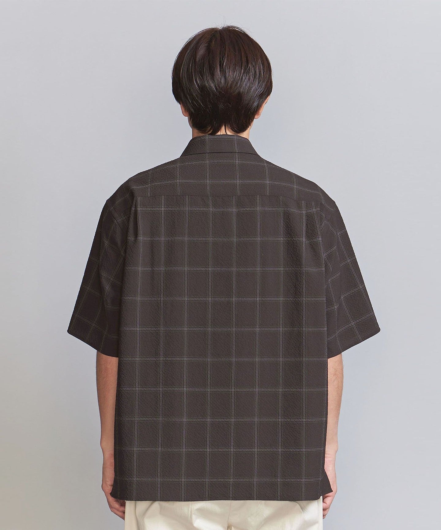 A short-sleeved shirt made of worsted seersucker fabric with an elegant surface texture.