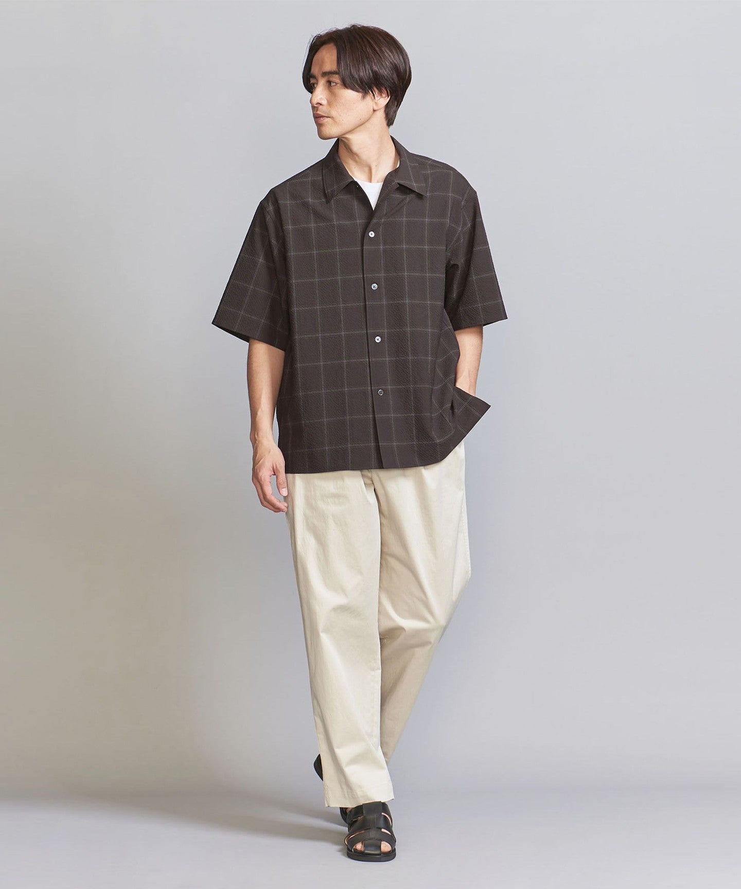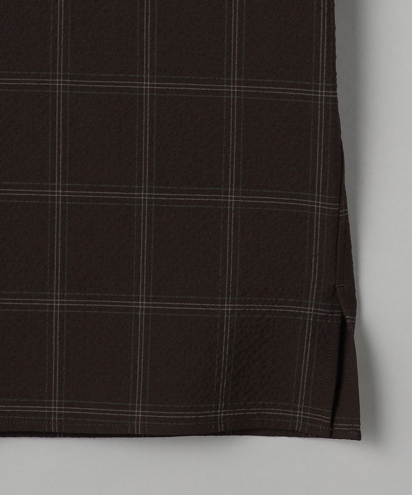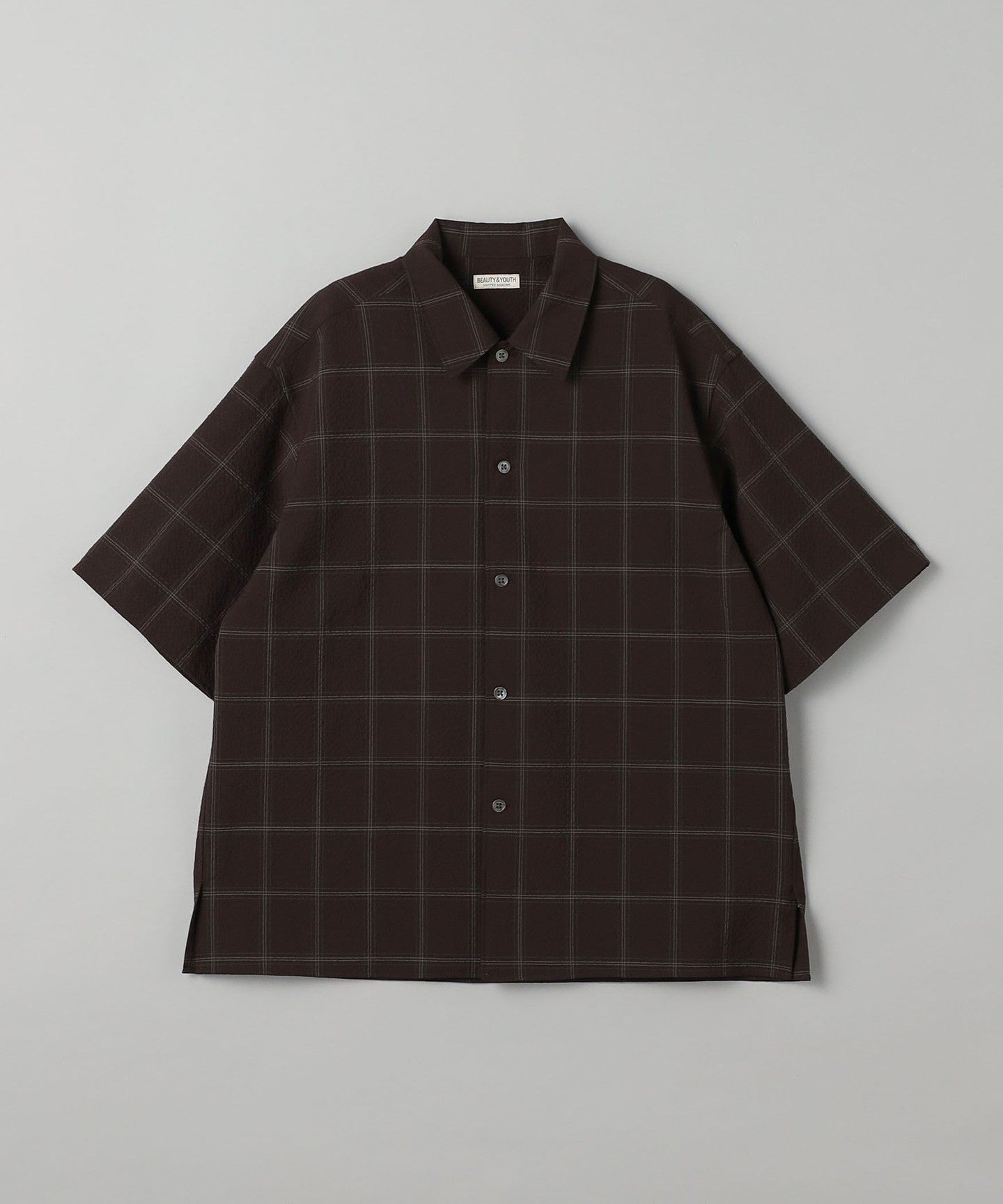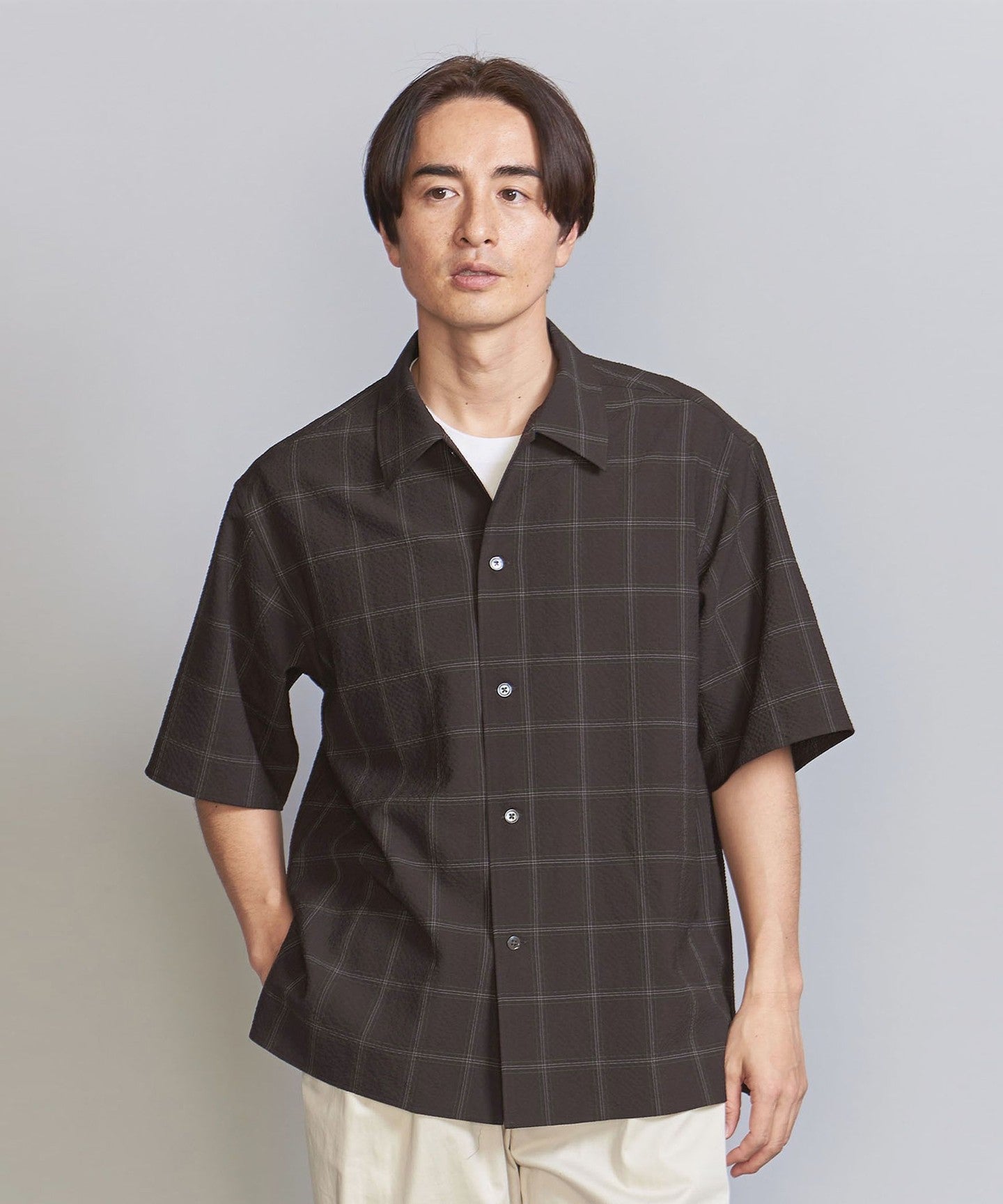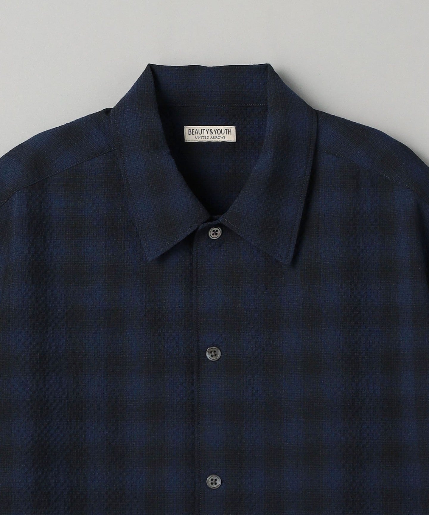 A short-sleeved shirt made of worsted seersucker fabric with an elegant surface texture.