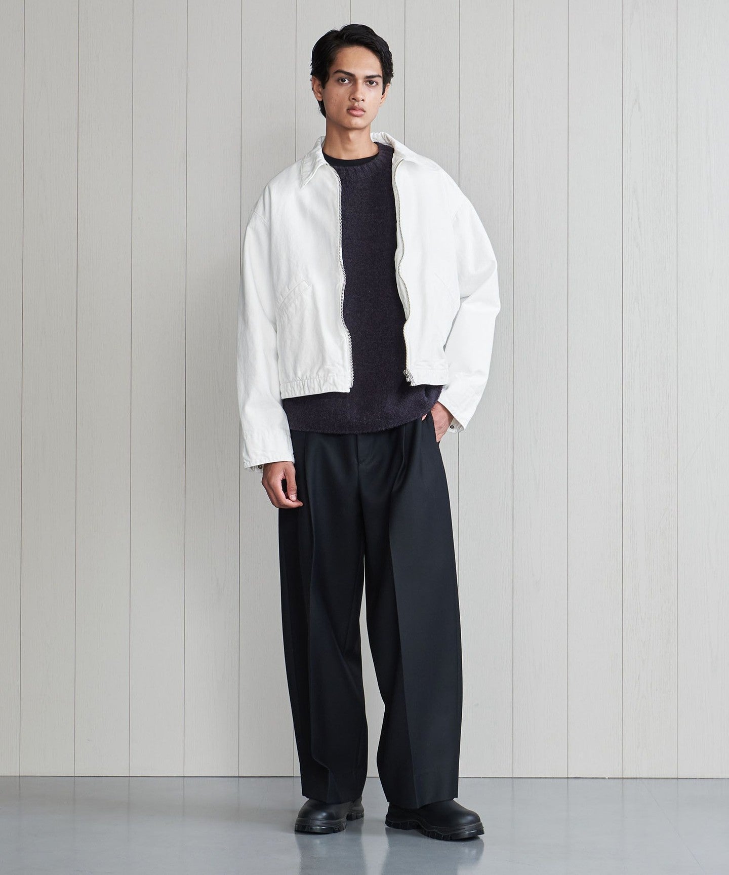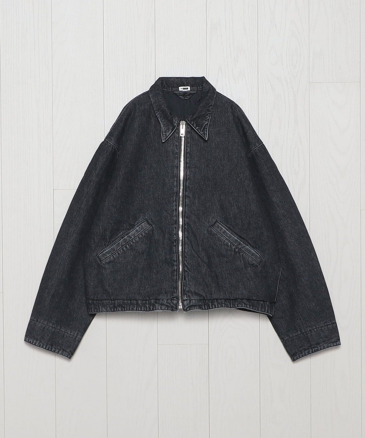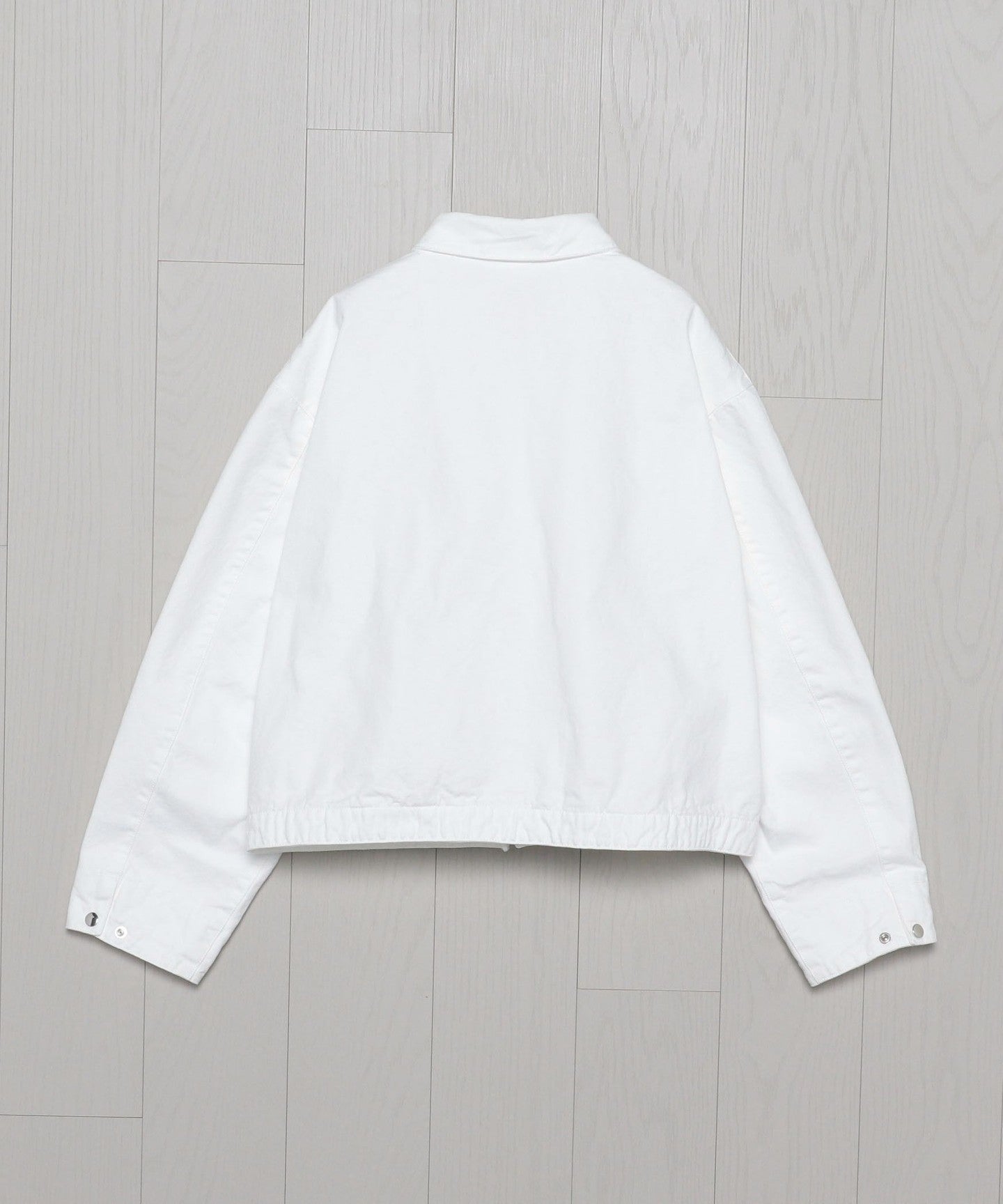 This denim jacket is based on classic workwear and features a minimalist design. It has a clean, short length and a wide silhouette. The lining is thin and quilted, making it versatile for the transitional seasons of spring and autumn. The white version is made from thick duck with minimal unevenness, and is characterized by a beautiful white color thanks to a special bleaching process. The gray version is made from bleached sulfurized black denim, with a moderate seam texture that gives it a stylish look.