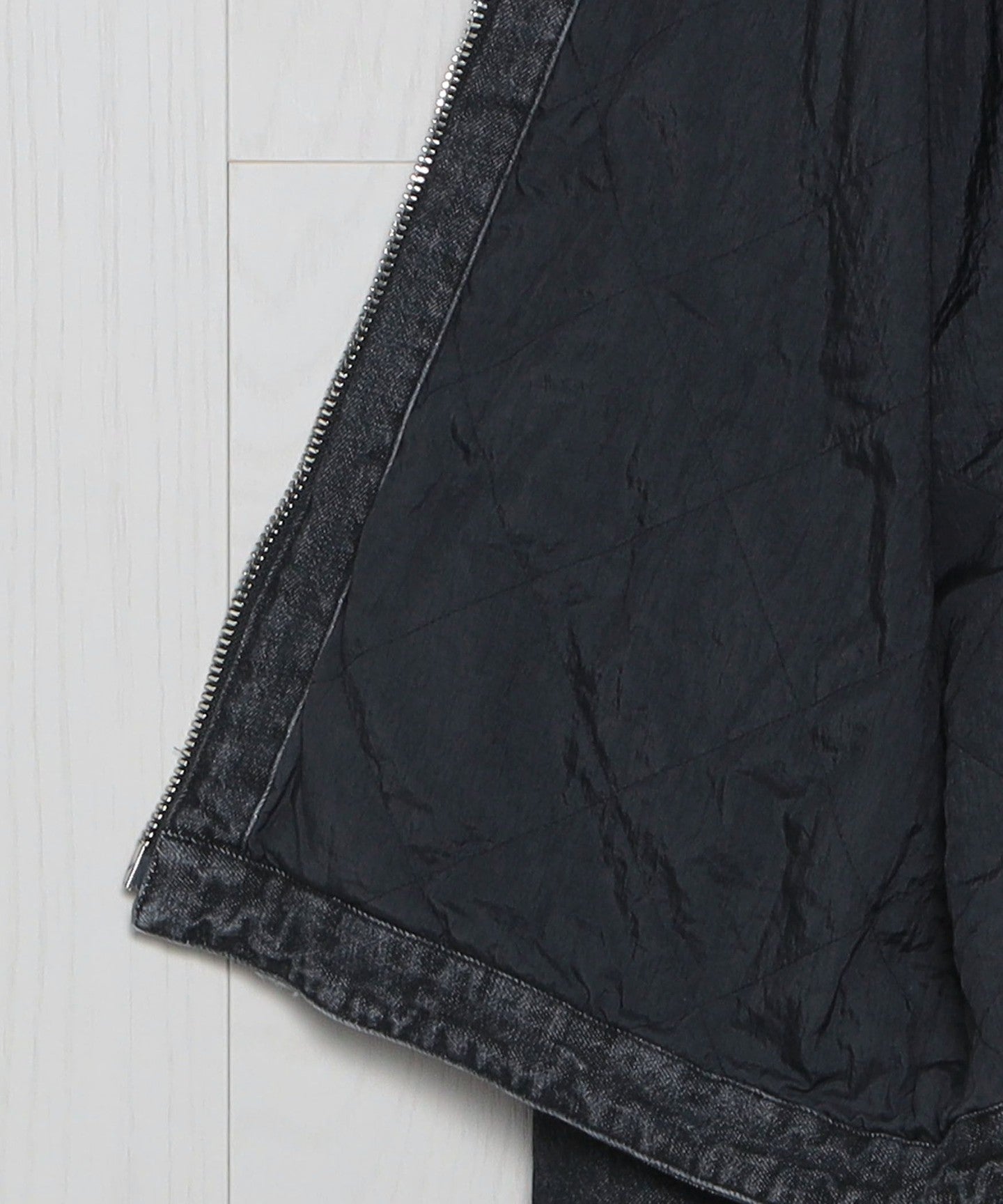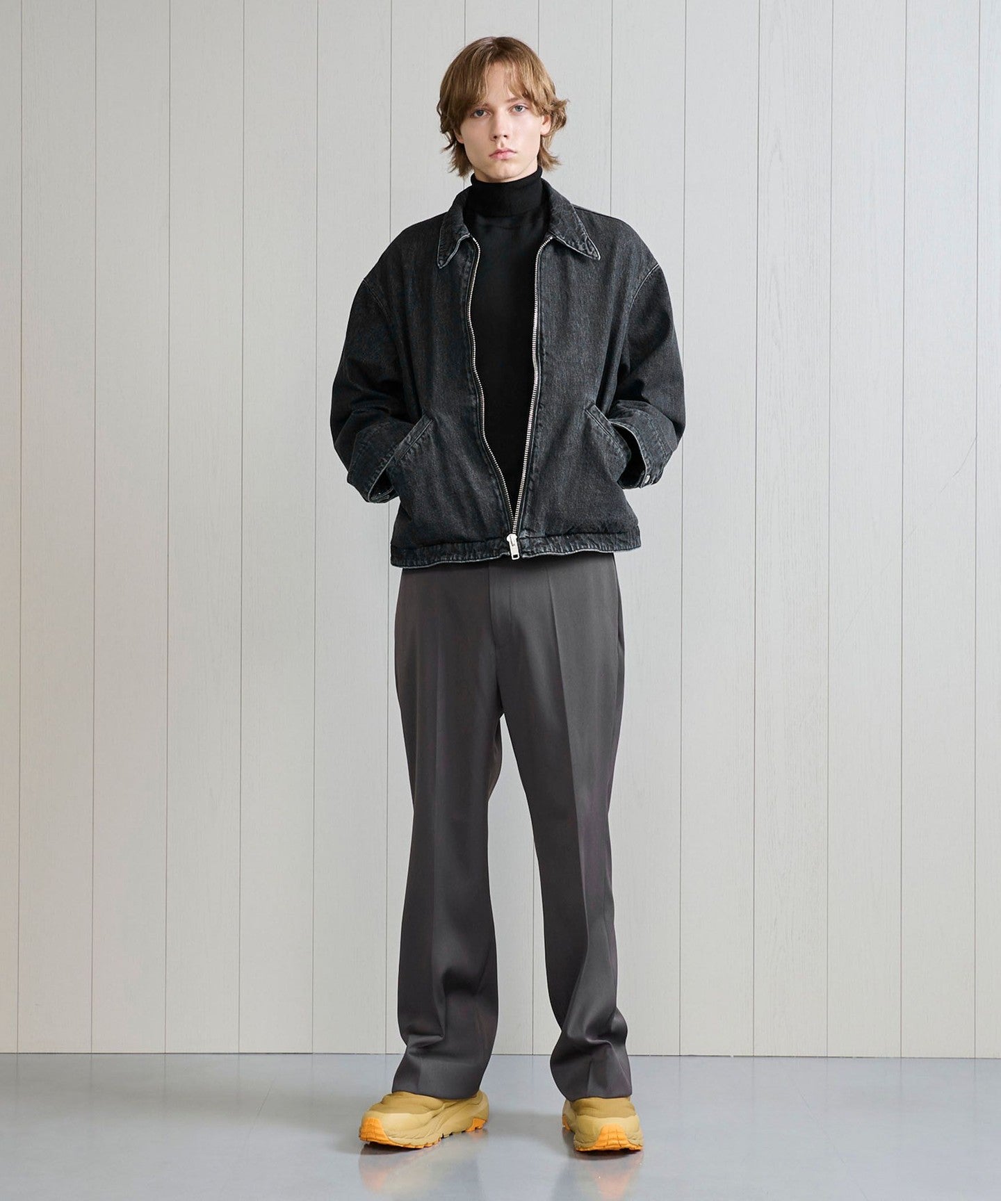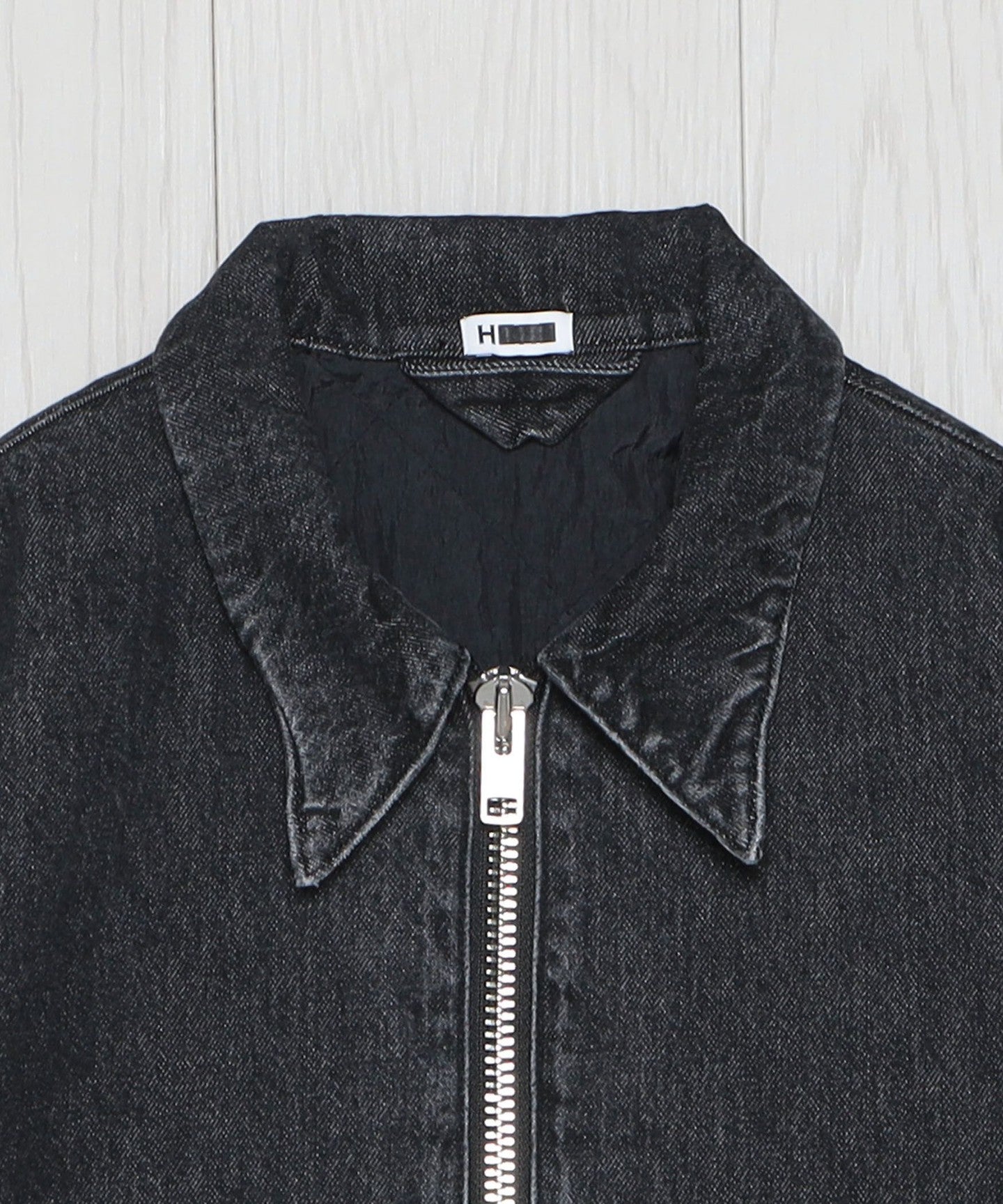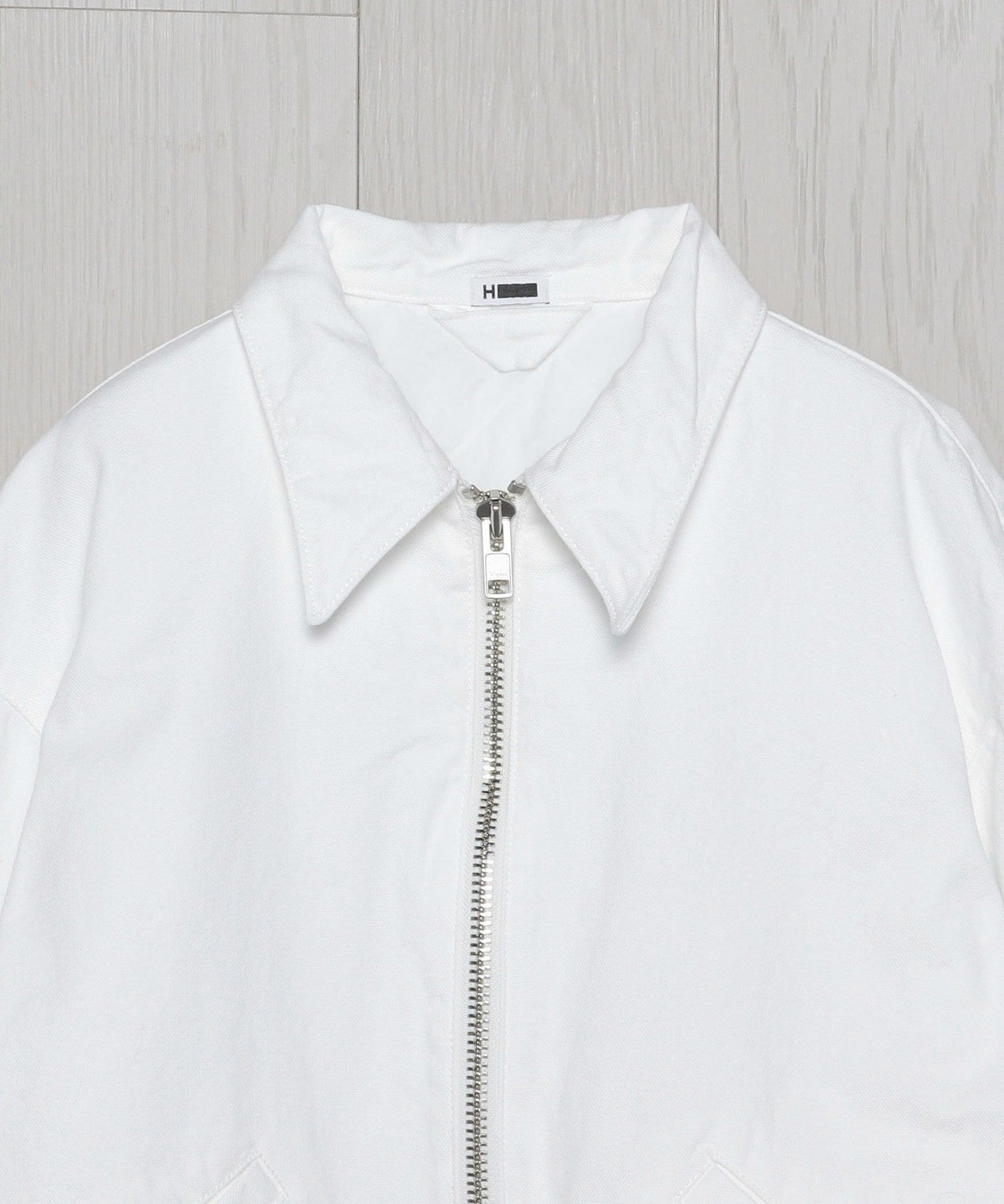 This denim jacket is based on classic workwear and features a minimalist design. It has a clean, short length and a wide silhouette. The lining is thin and quilted, making it versatile for the transitional seasons of spring and autumn. The white version is made from thick duck with minimal unevenness, and is characterized by a beautiful white color thanks to a special bleaching process. The gray version is made from bleached sulfurized black denim, with a moderate seam texture that gives it a stylish look.