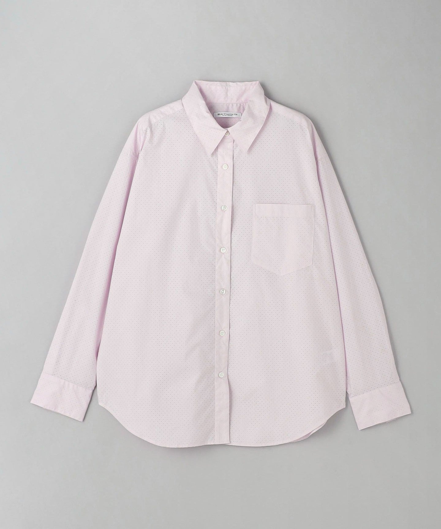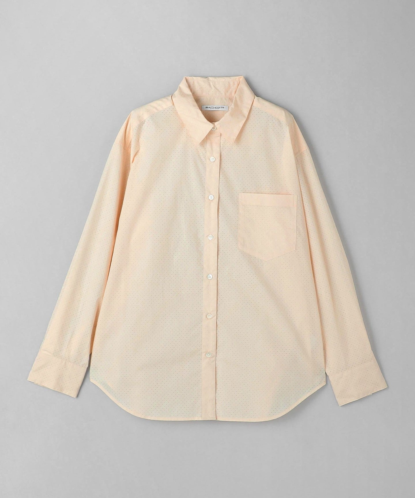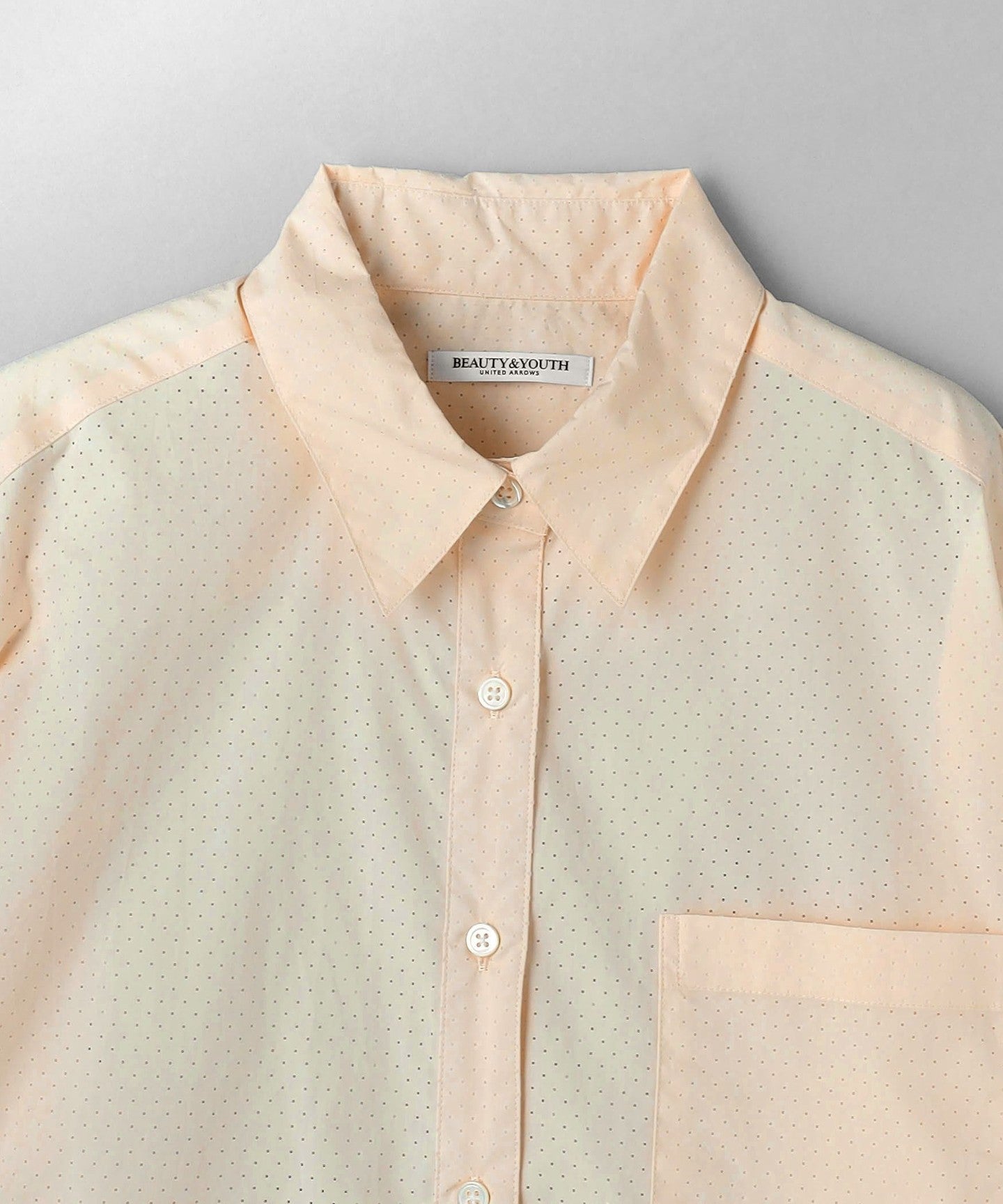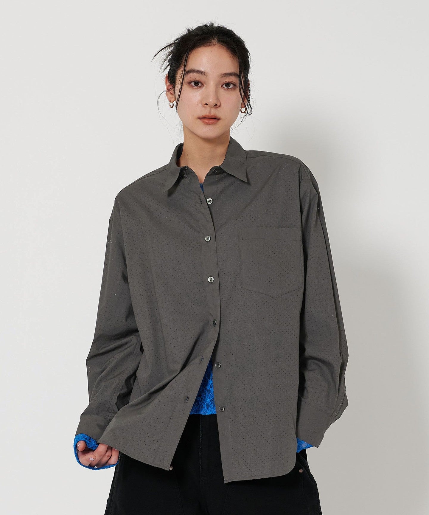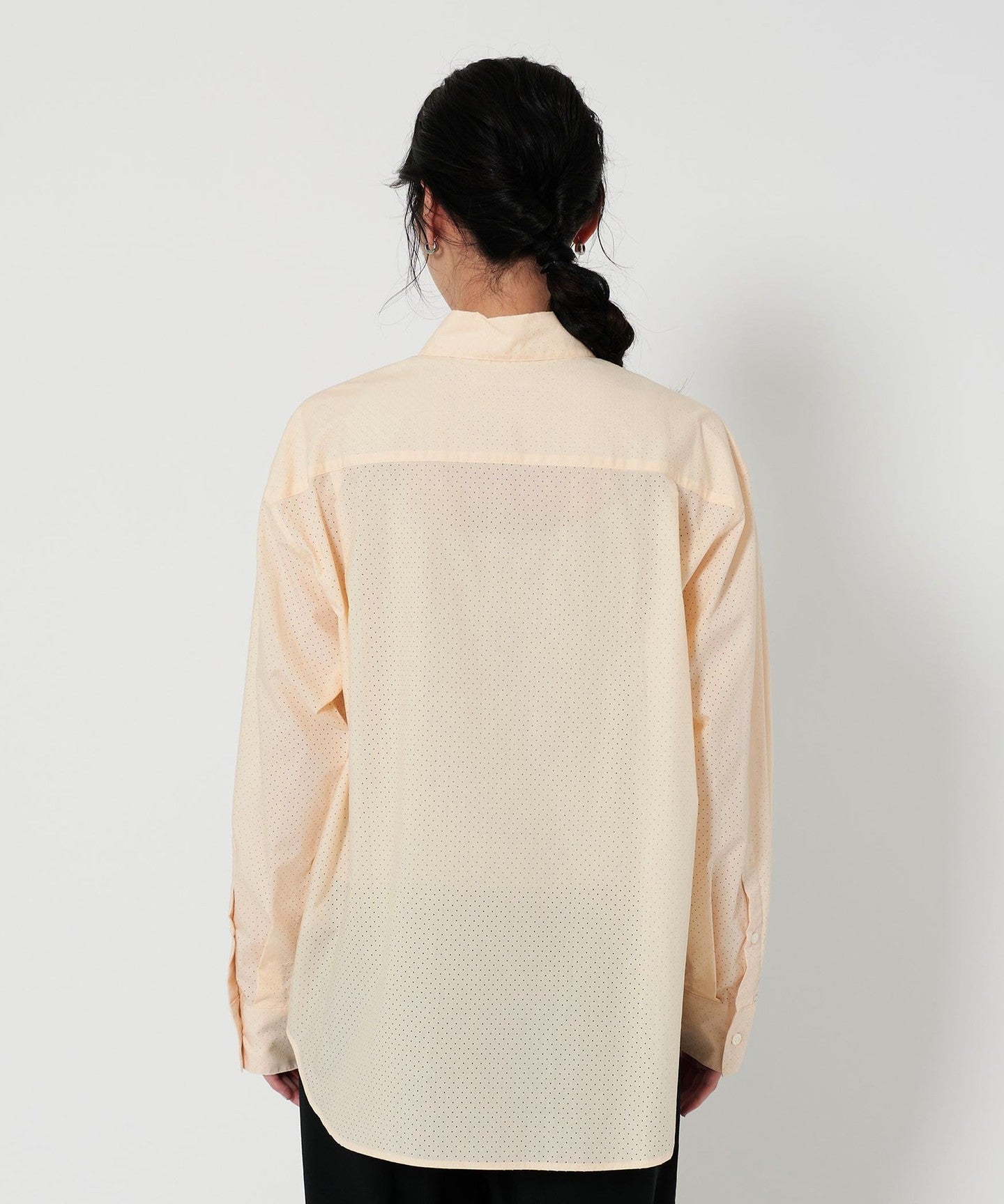 A regular collar shirt with a fresh punched material.