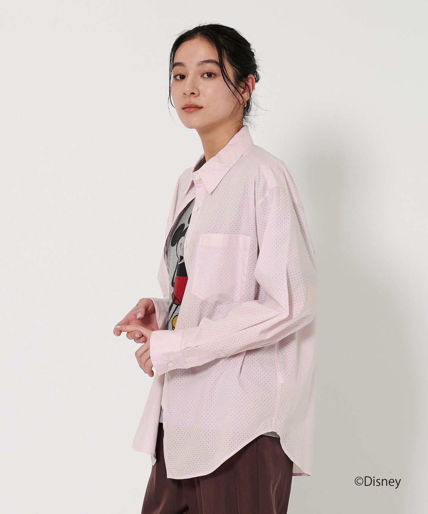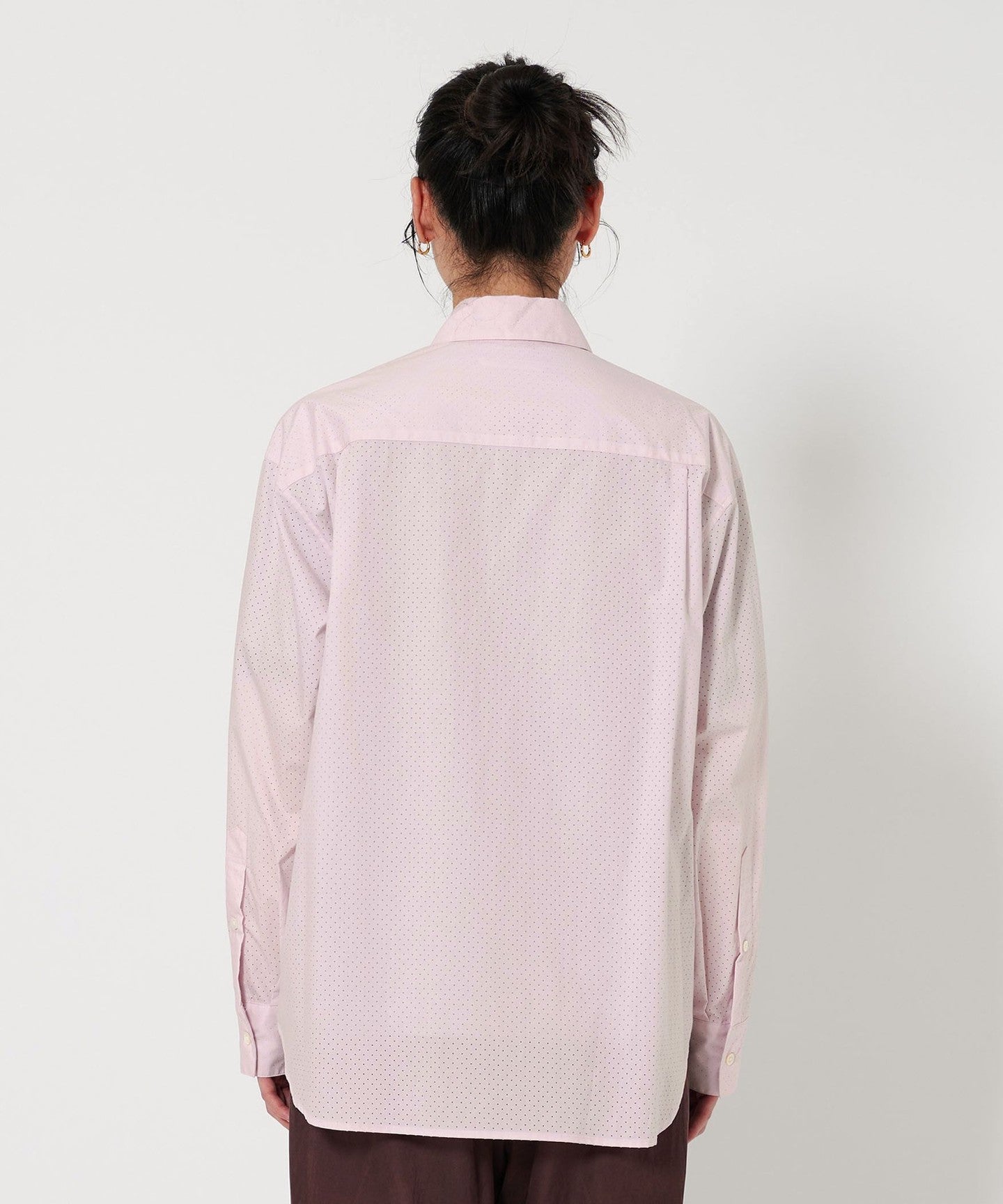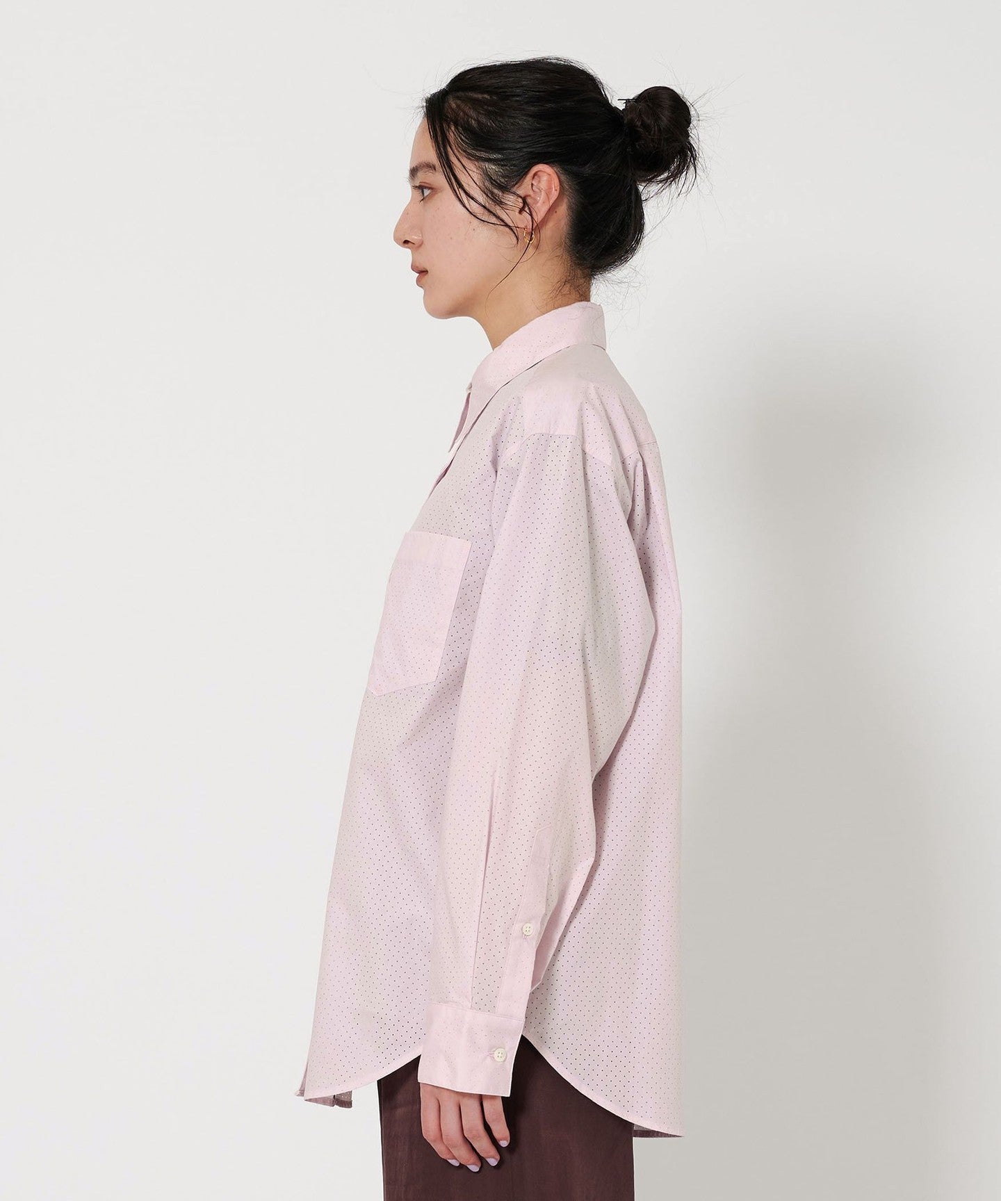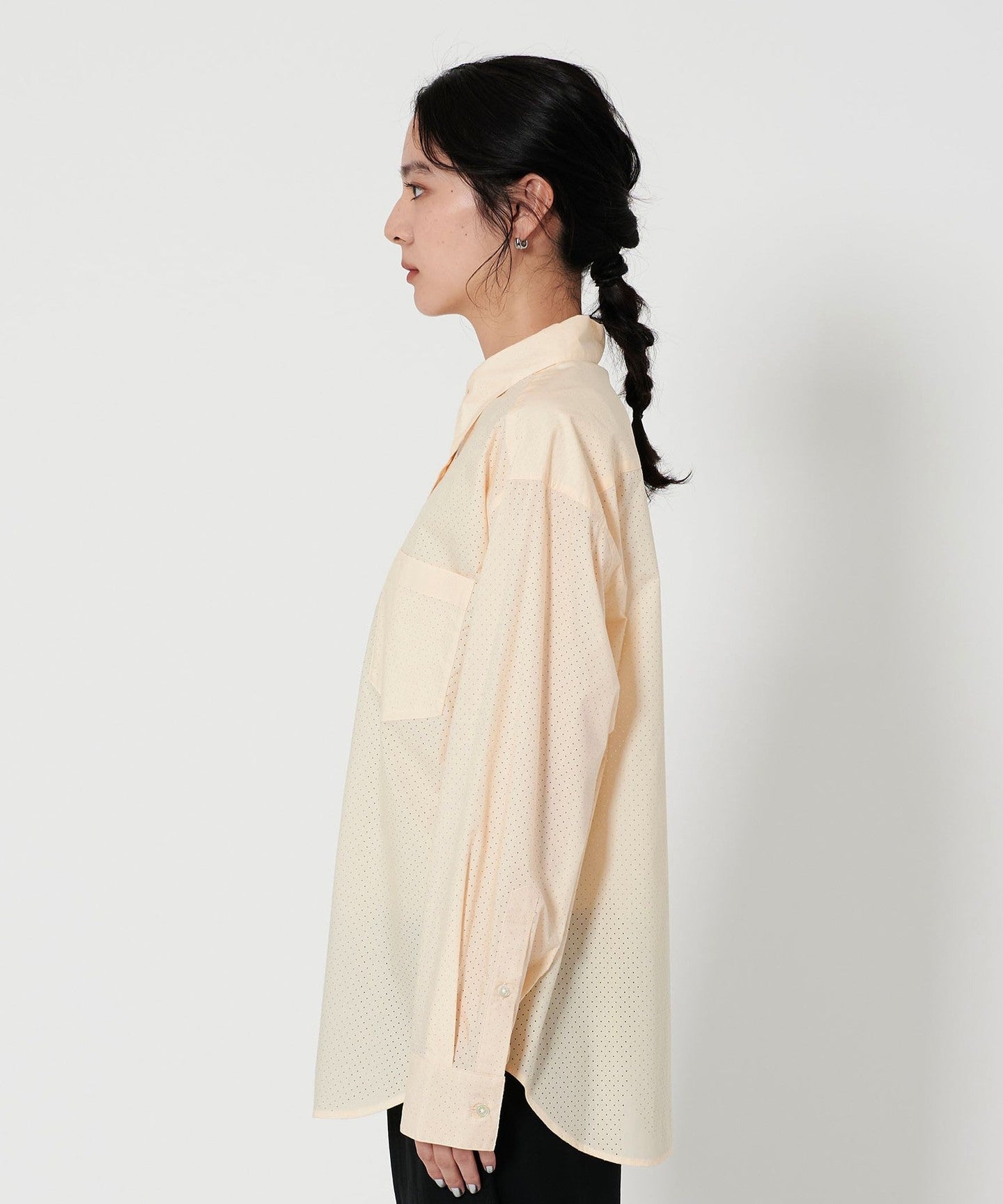 A regular collar shirt with a fresh punched material.