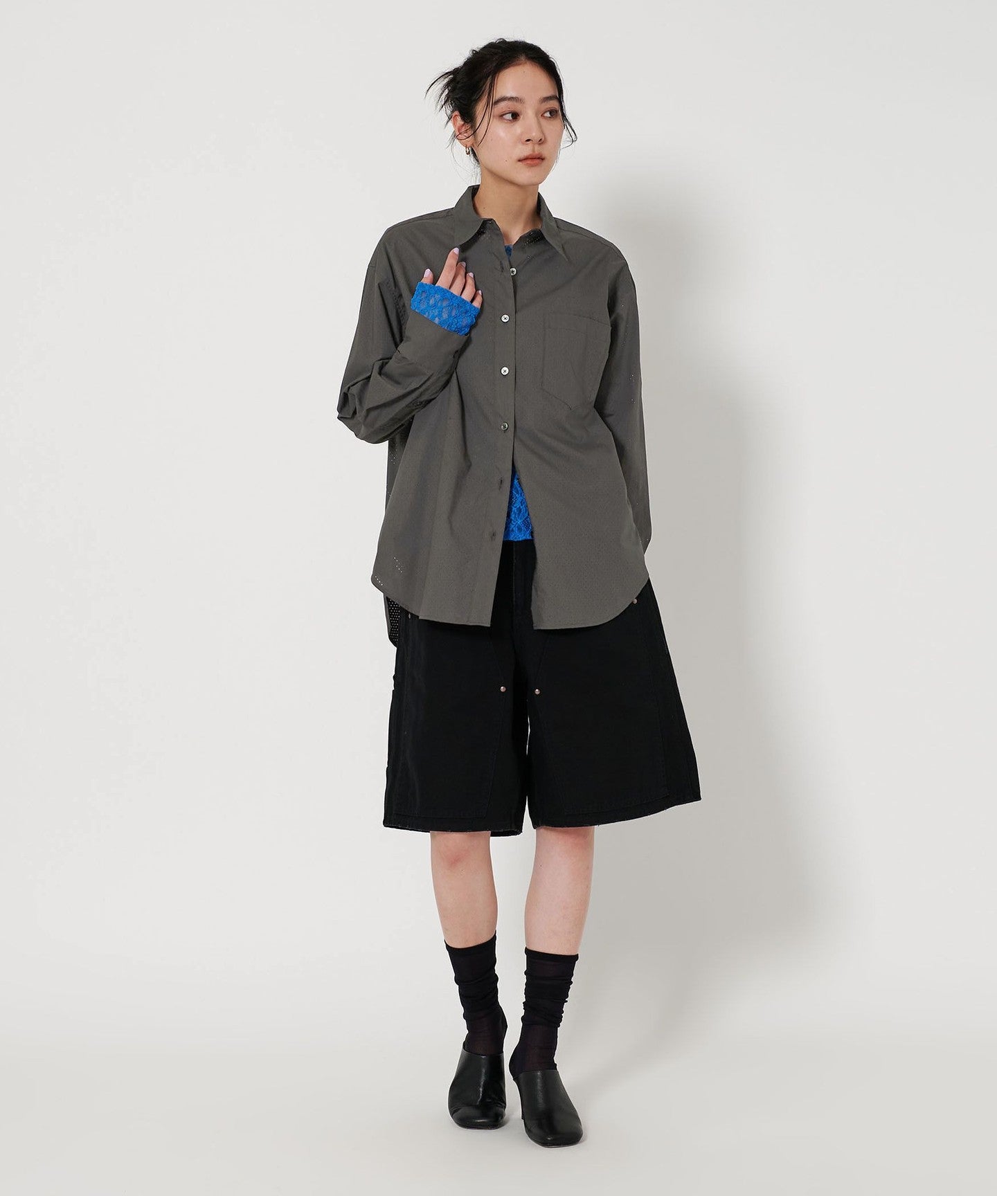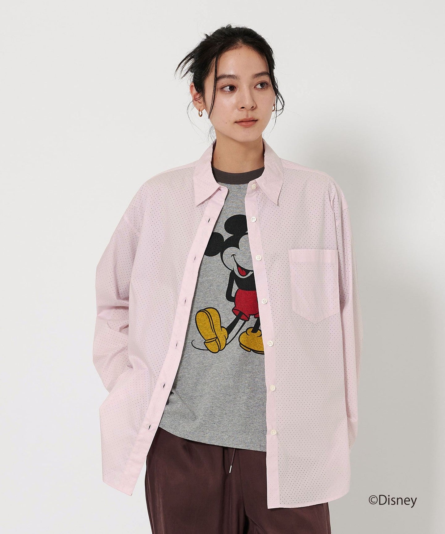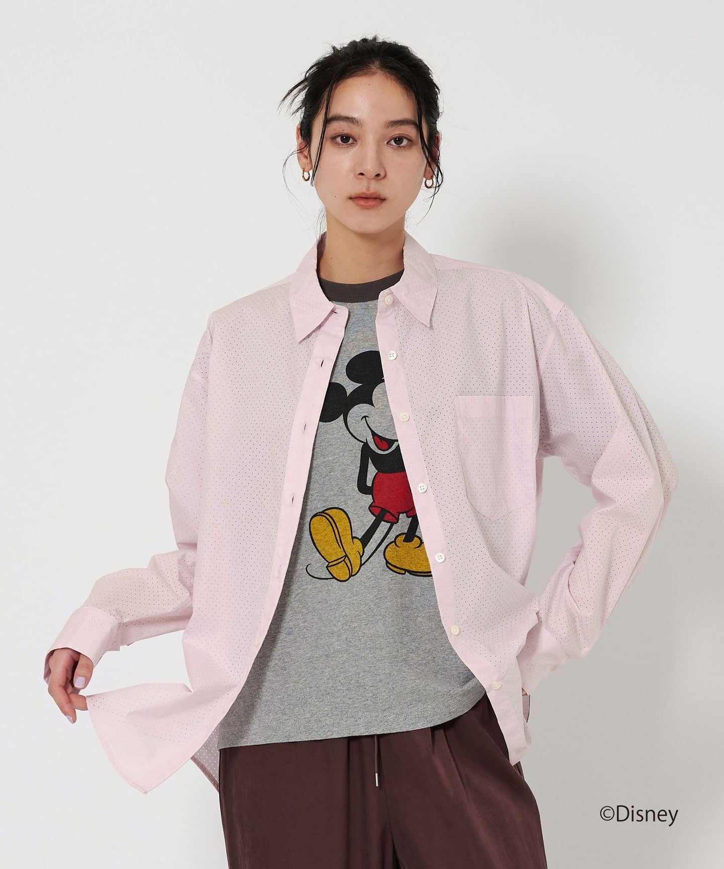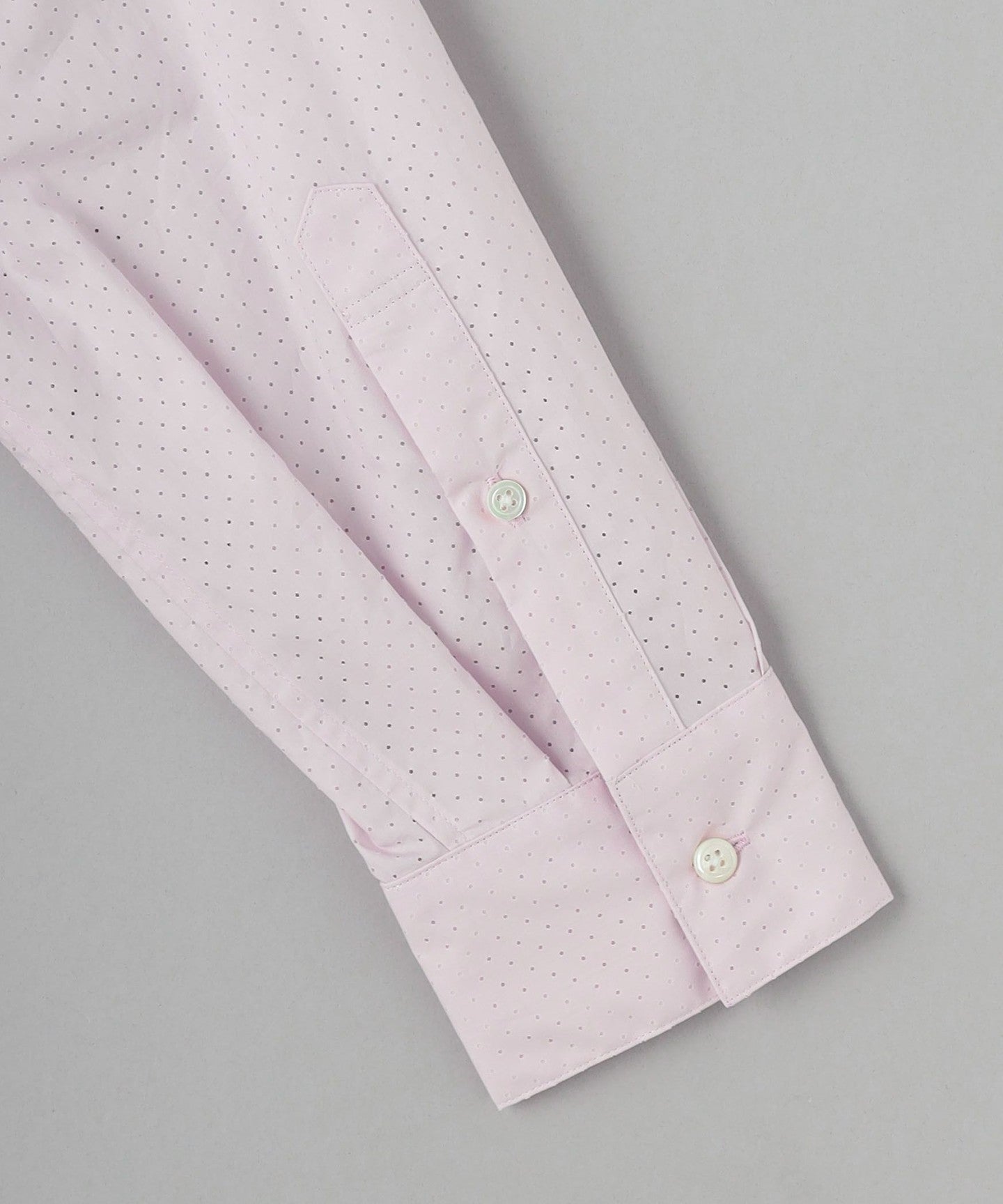 A regular collar shirt with a fresh punched material.