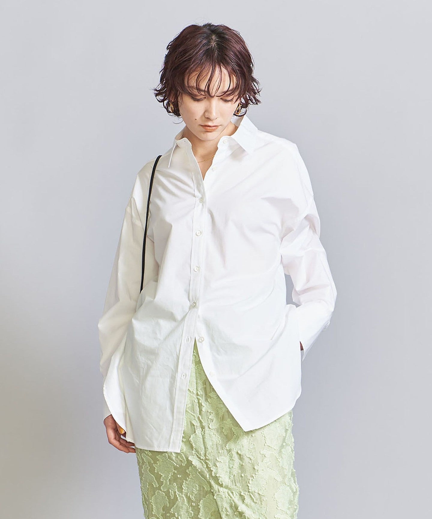 A classic regular color with a slightly longer length and oversized fit for a masculine feel.SHIRT .