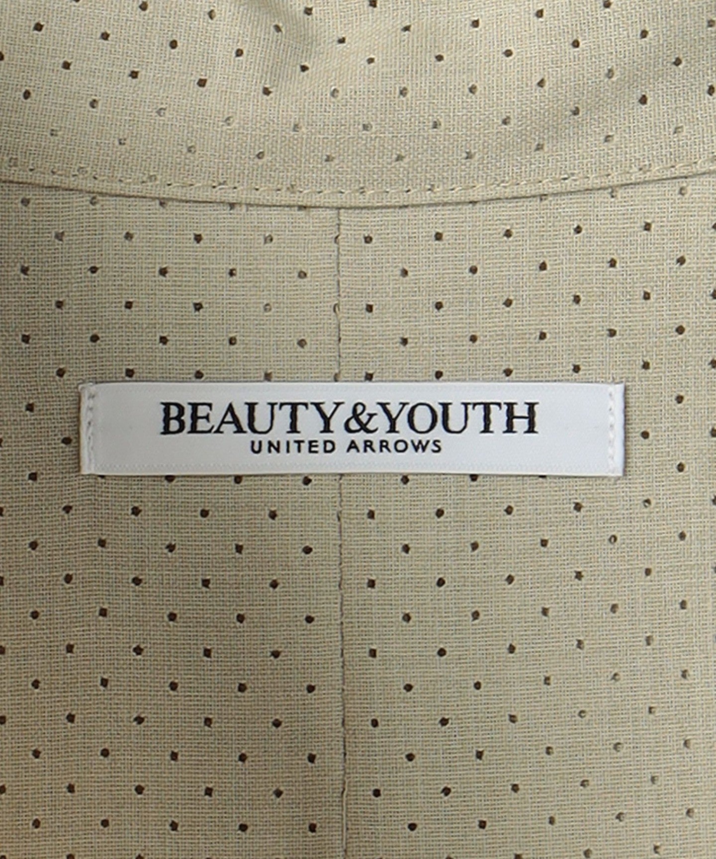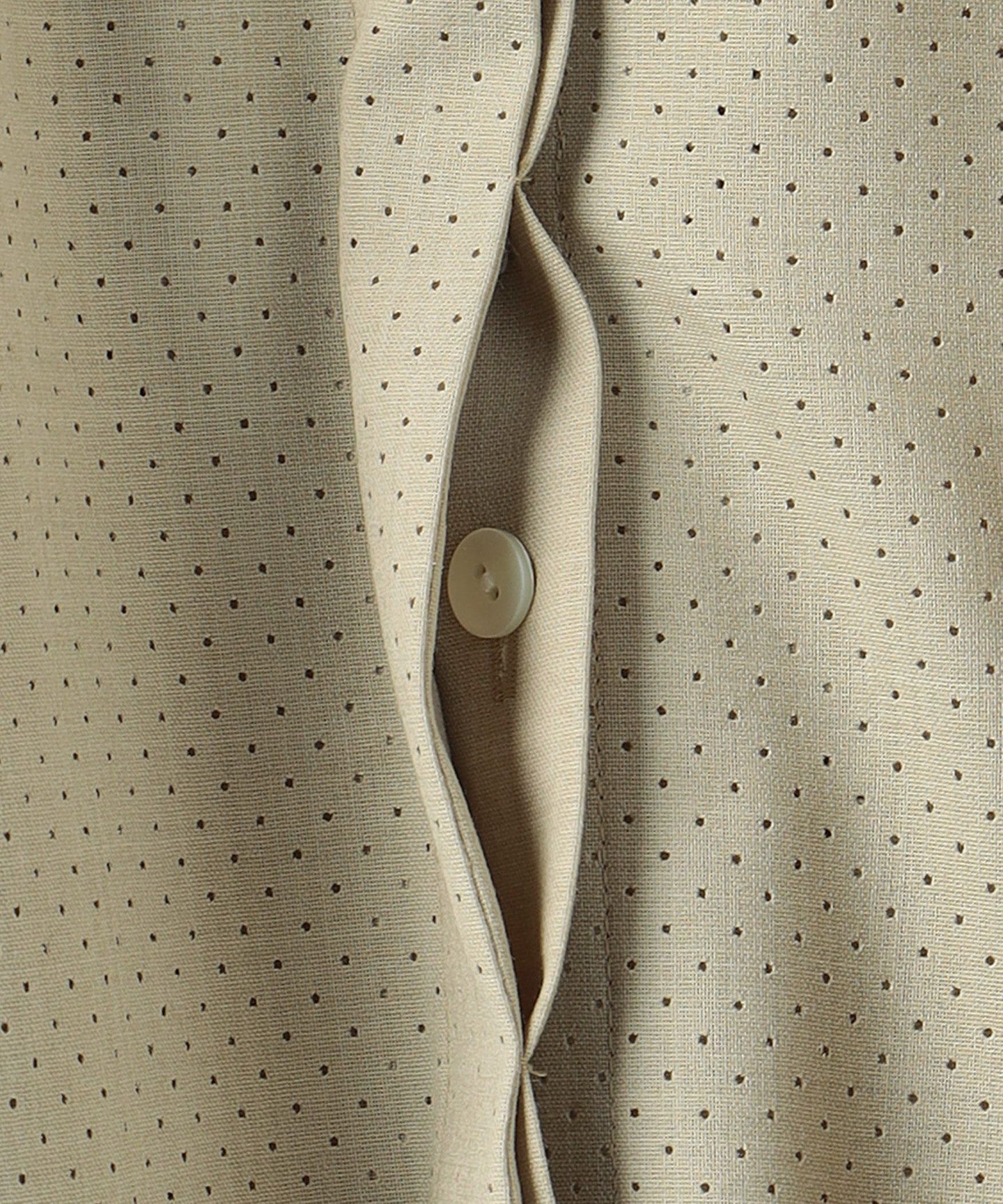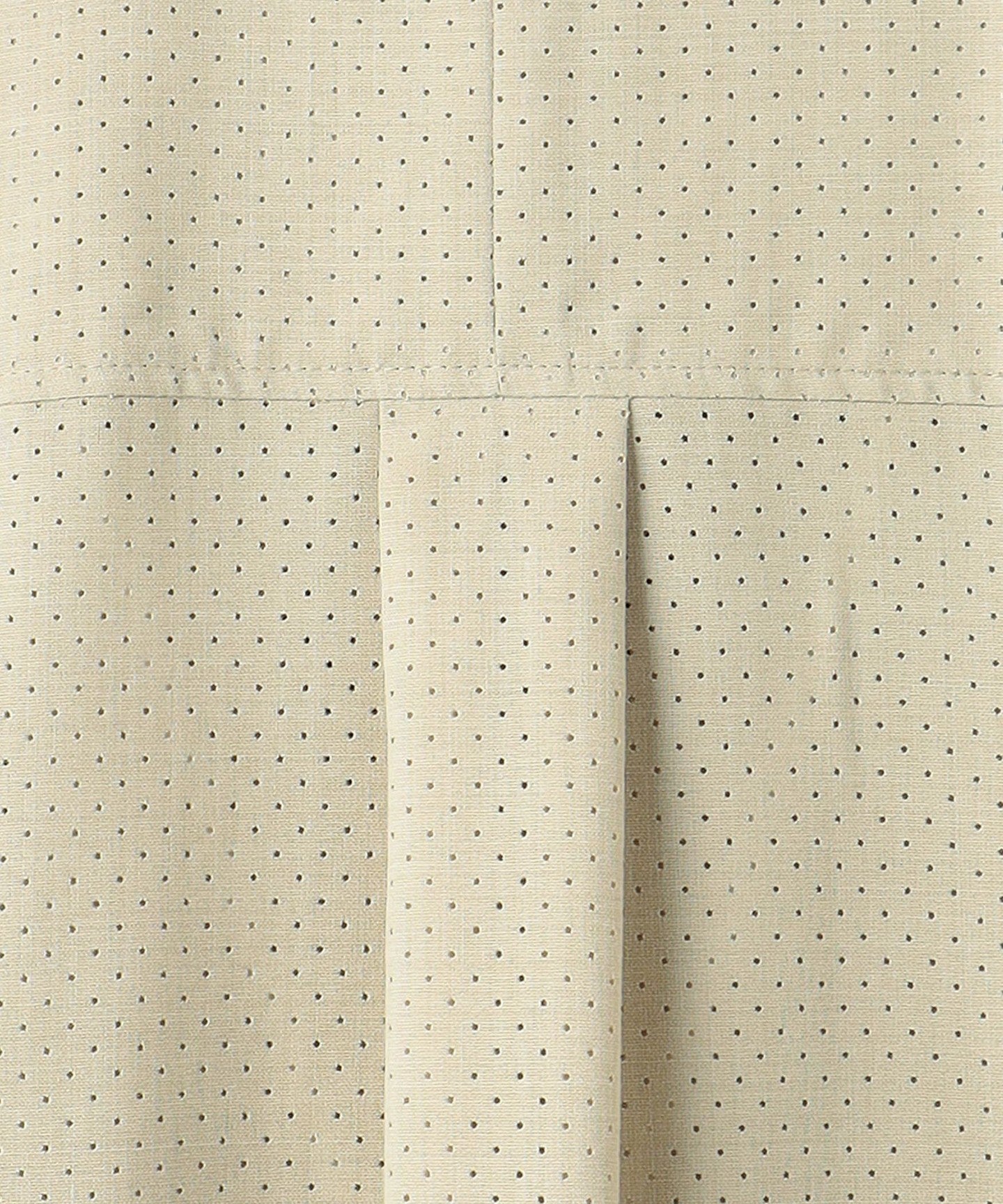 The base material is a worsted polyester/wool blend, and the key feature is the punched processing with fine holes.