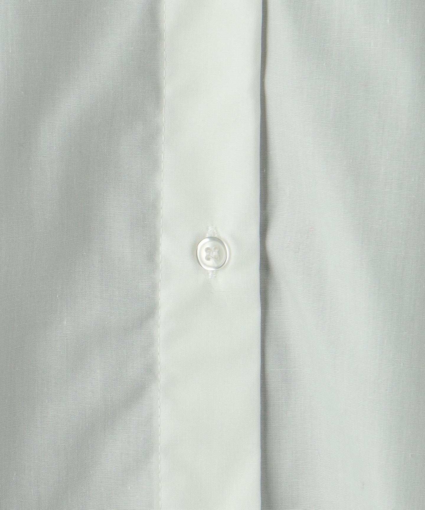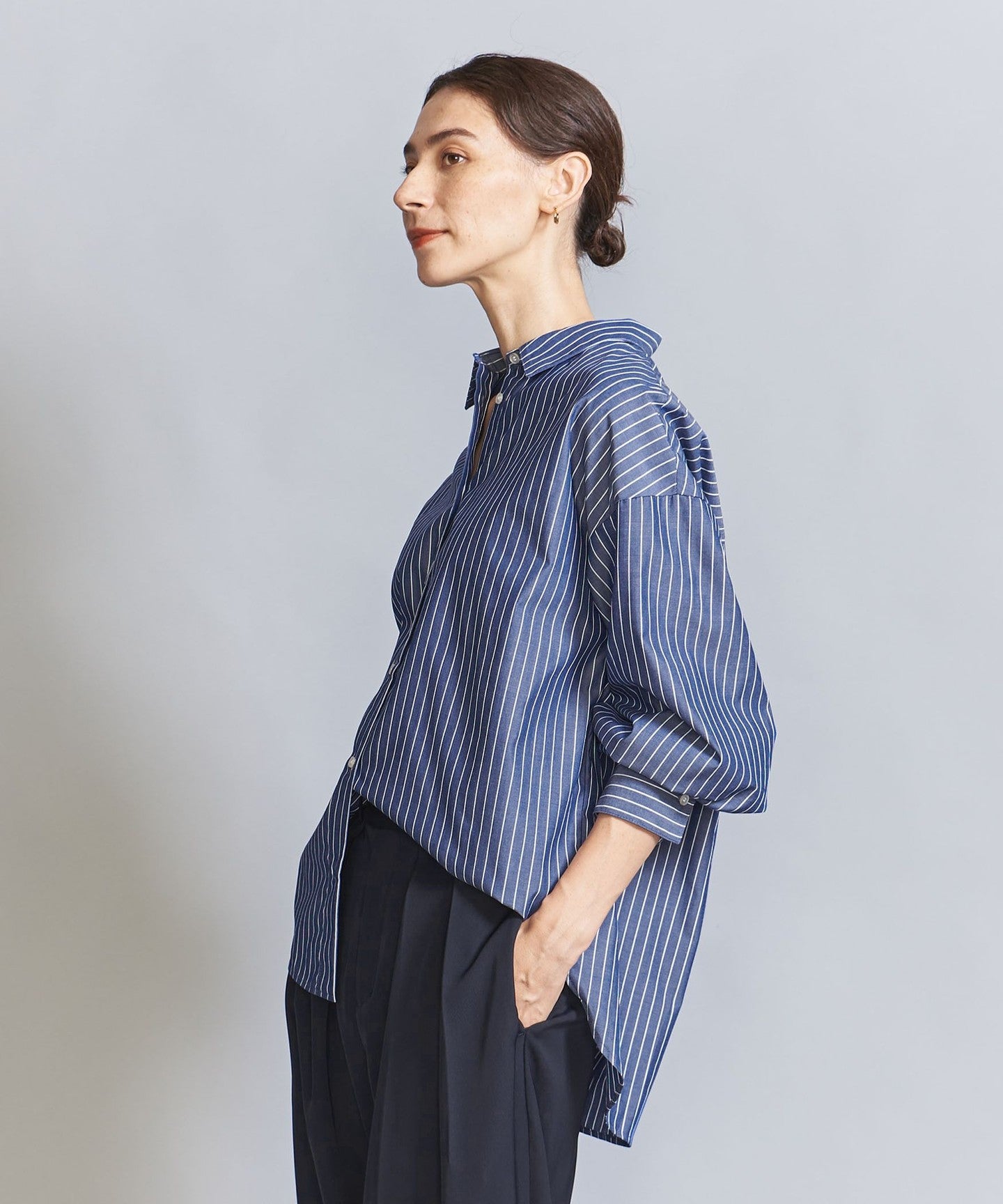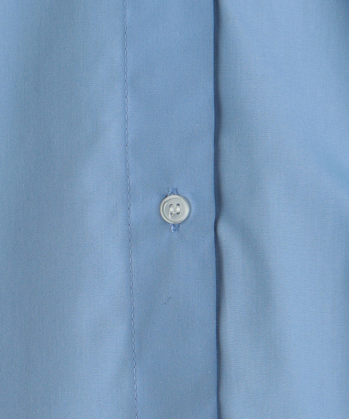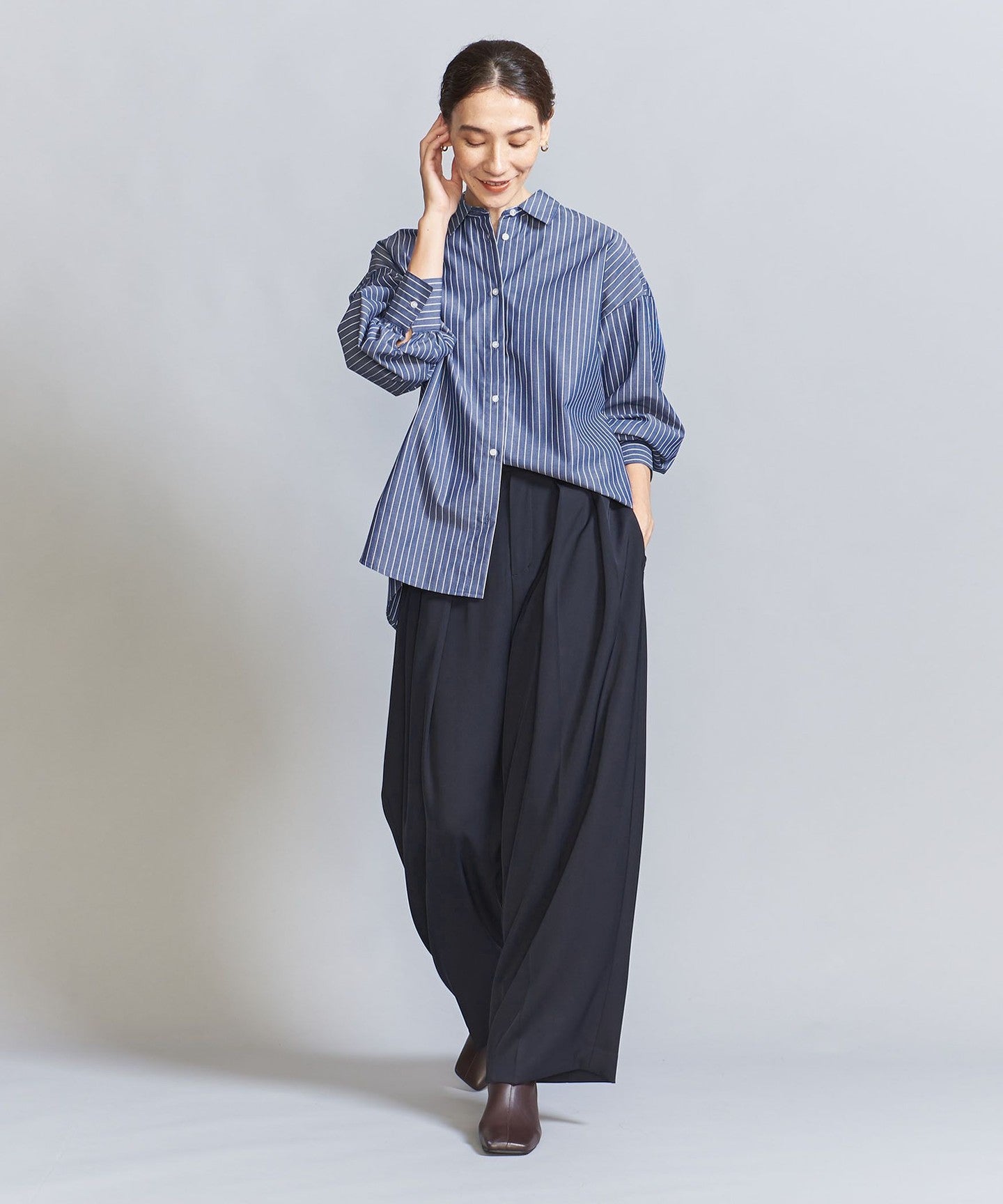The shirt has a wide body with dropped shoulders and voluminous sleeves with gathered cuffs, creating a soft, feminine silhouette.