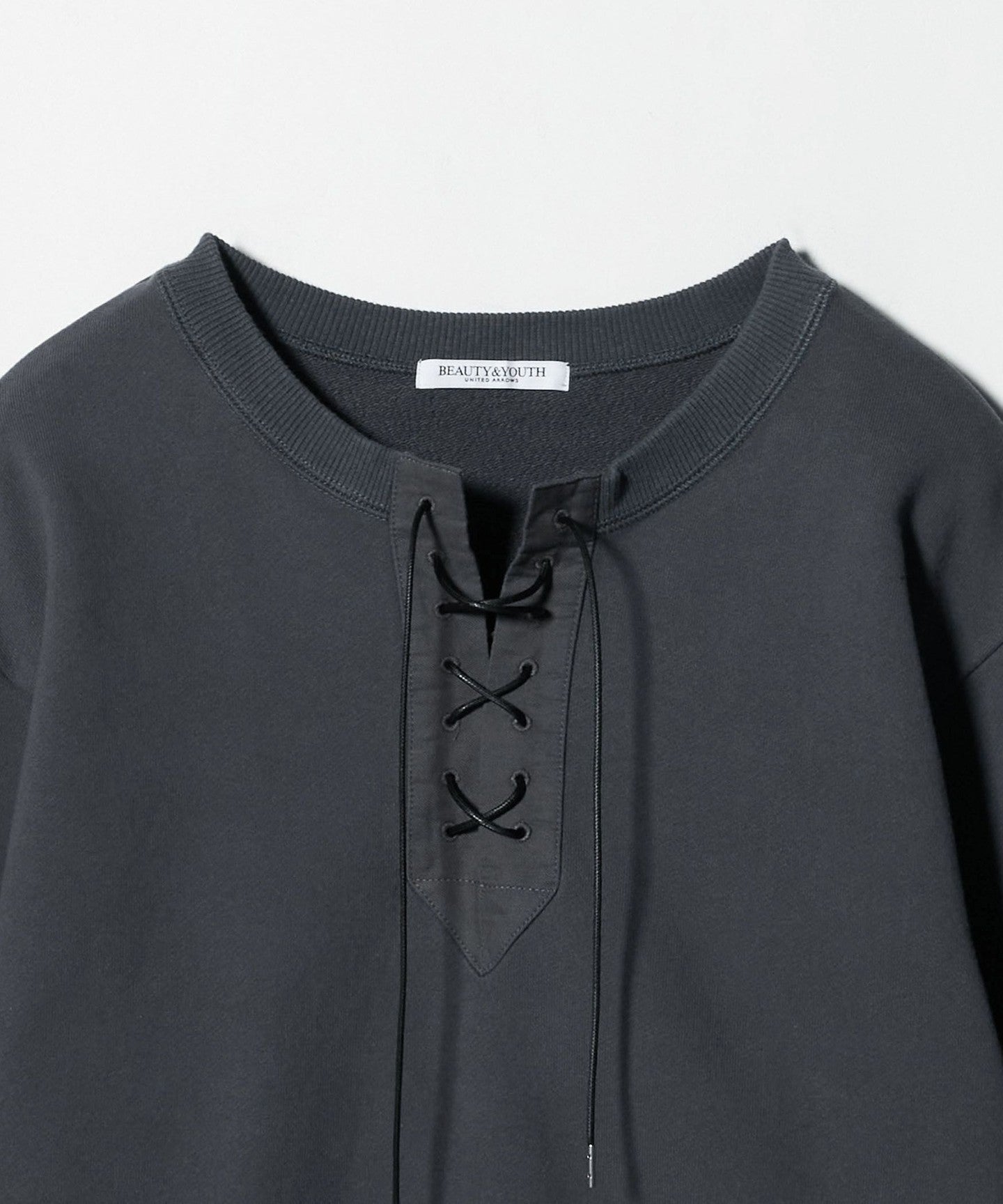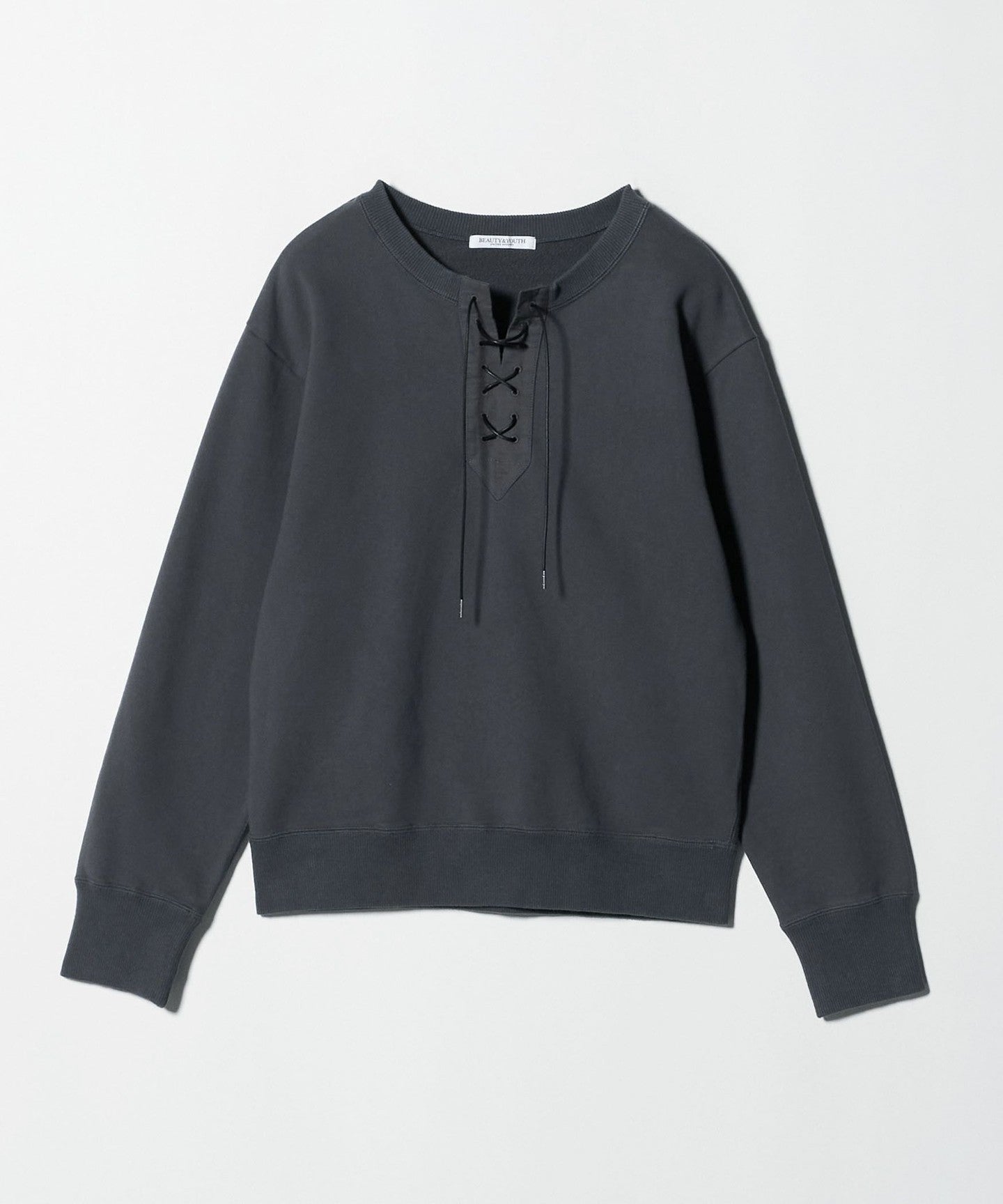フロントのレースアップがアクセントになったスウェットプルオーバー.