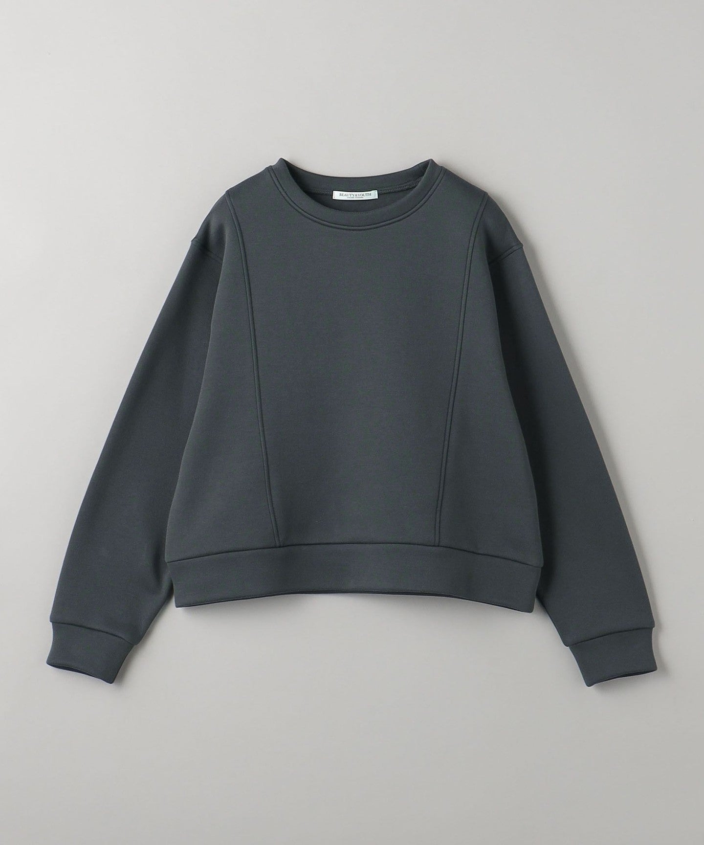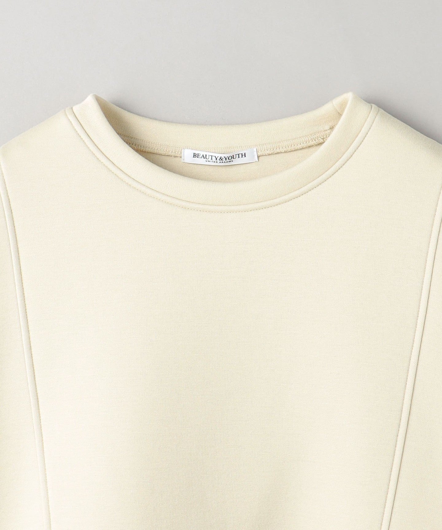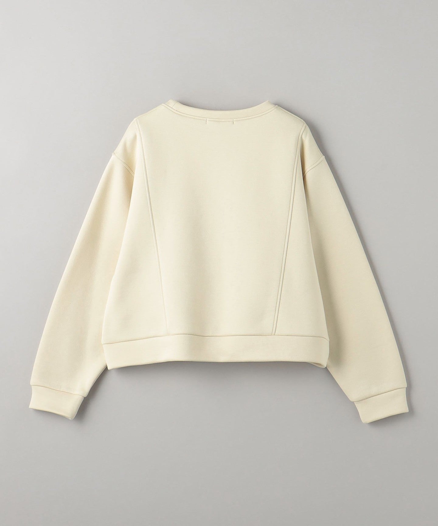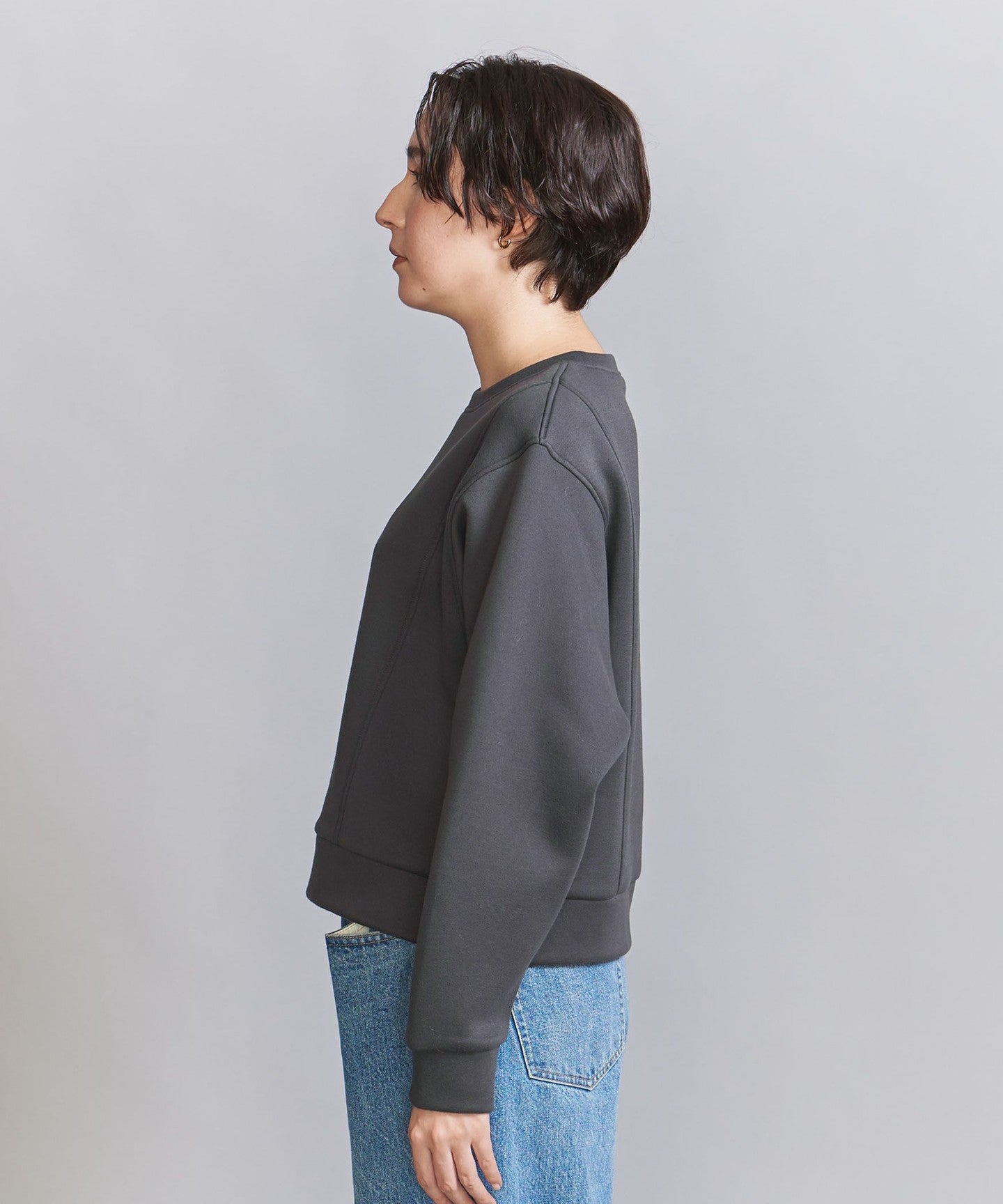 It goes well with bottoms that have details, such as side-line pants, and also with high-waisted wide pants.