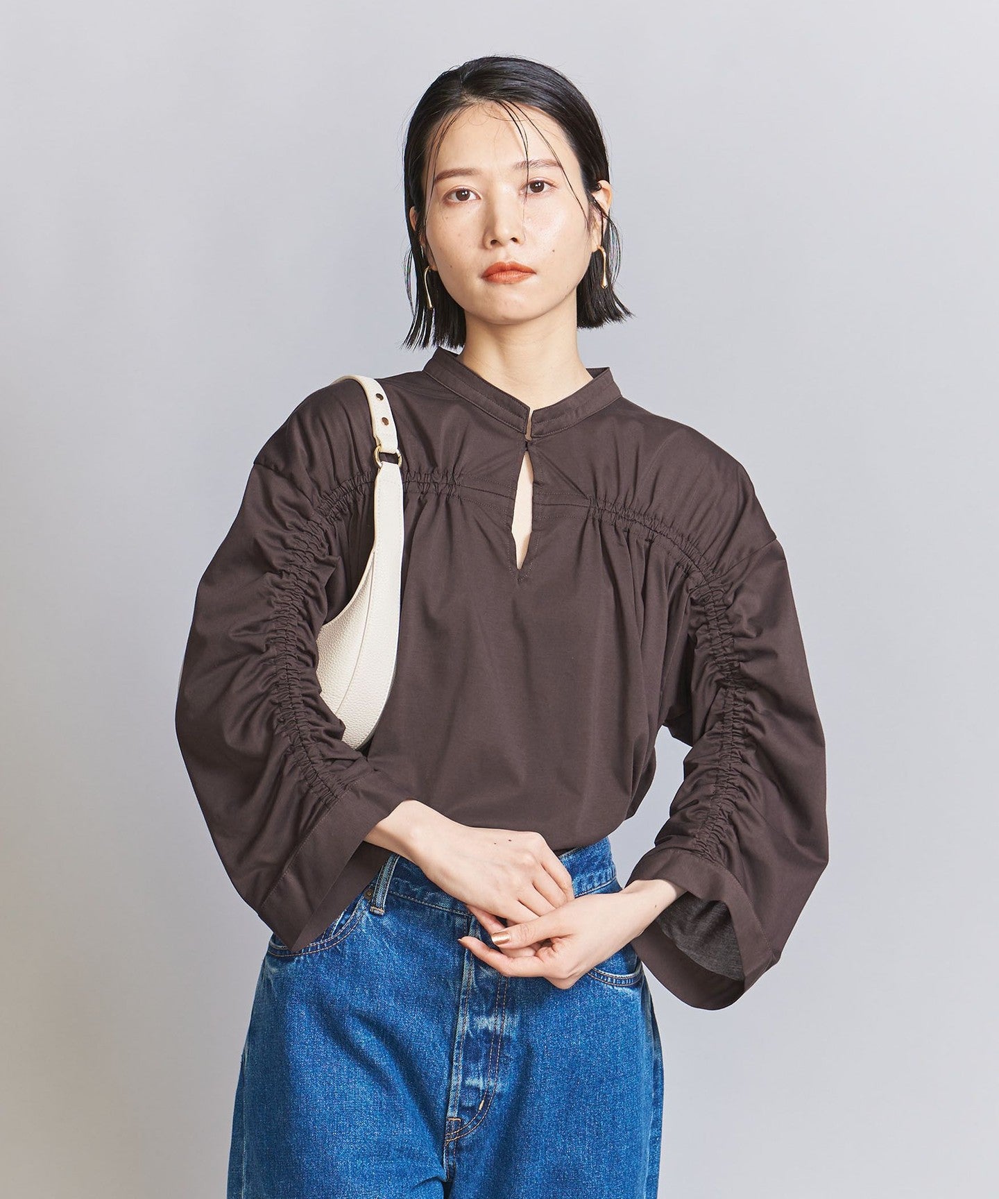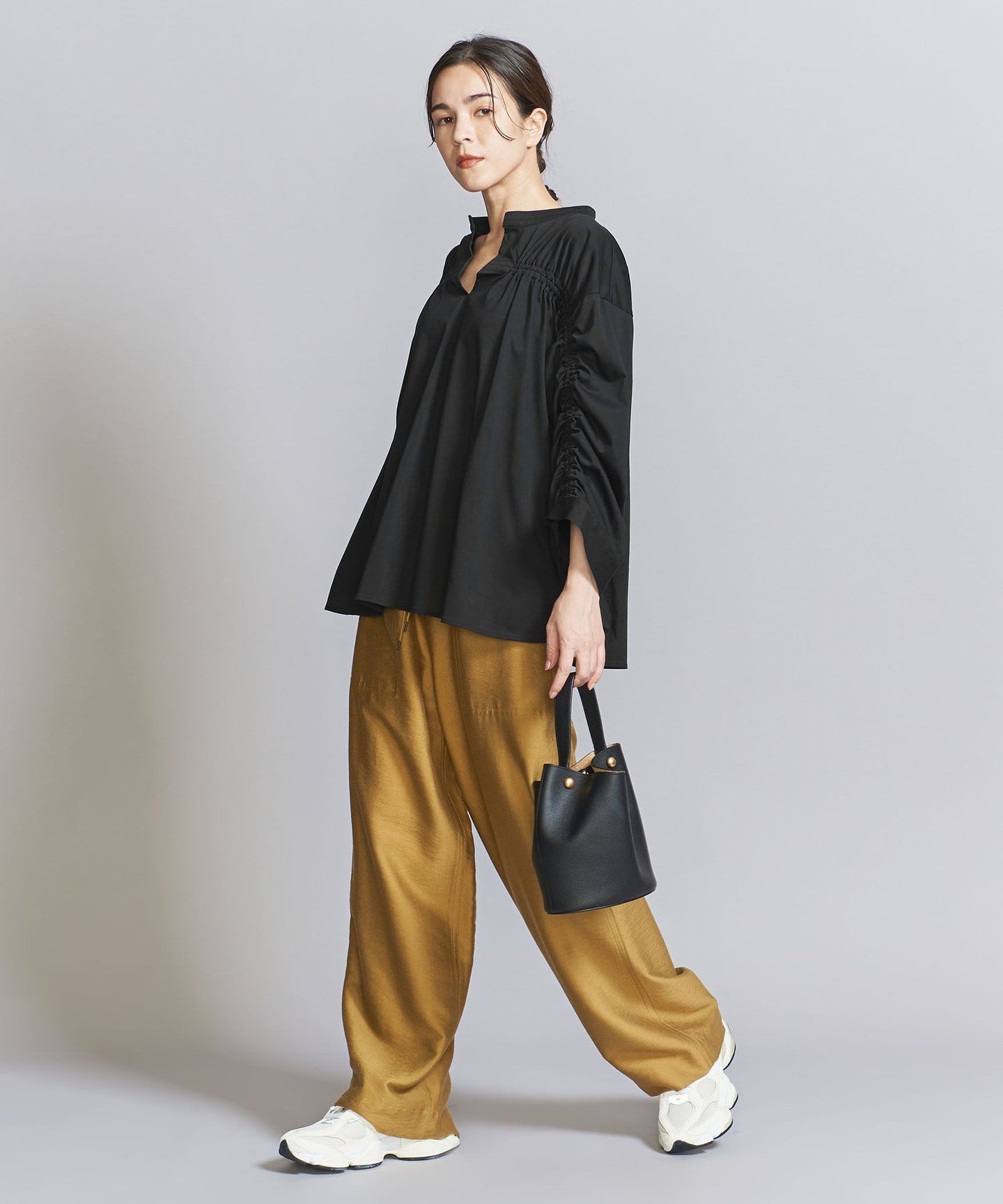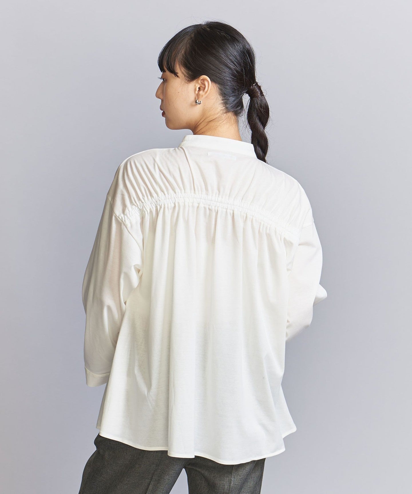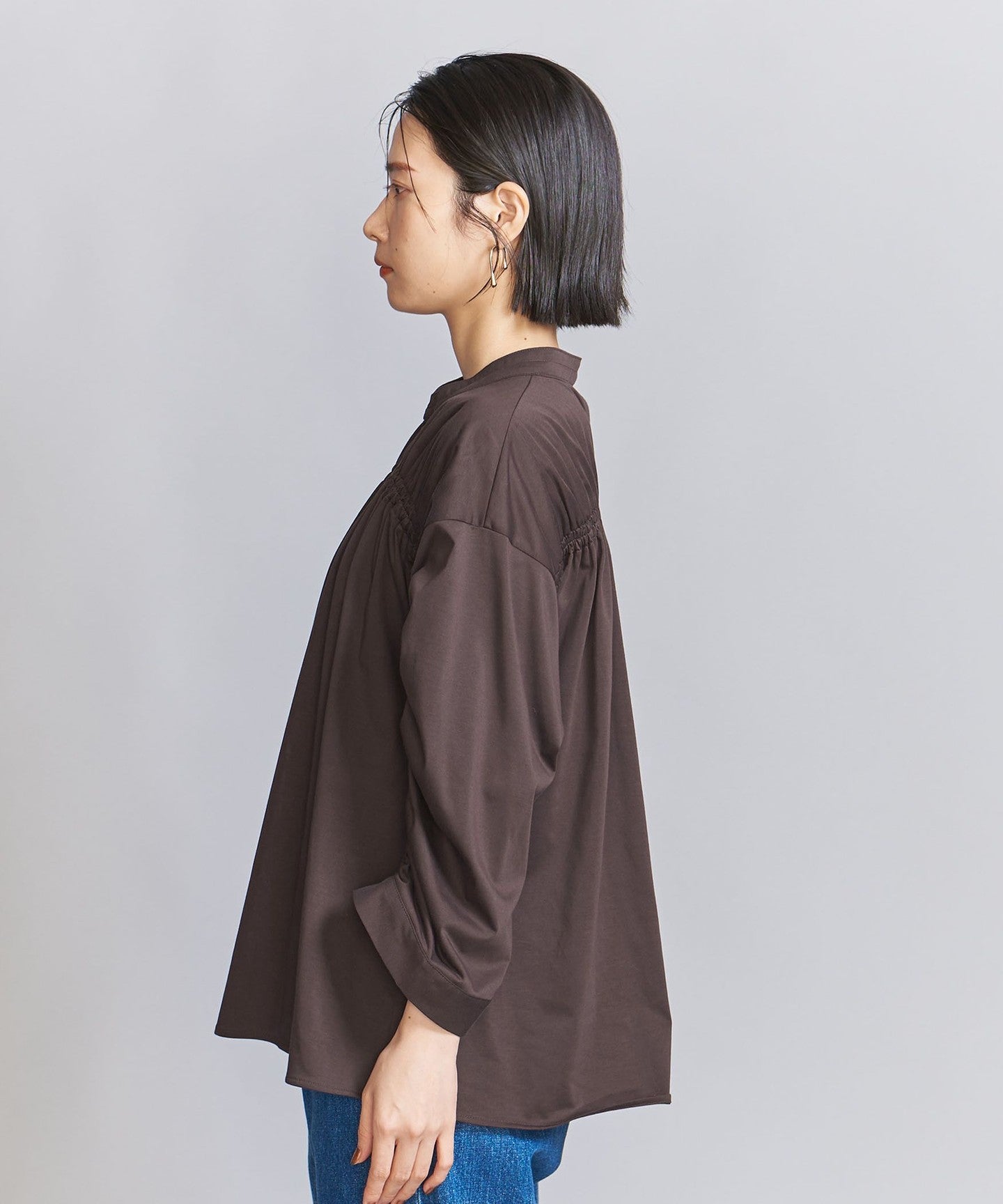 The design is similar to a skipper collar blouse, and it is wrinkle-resistant, making it easy to wear as it is a cut-and-sew item.