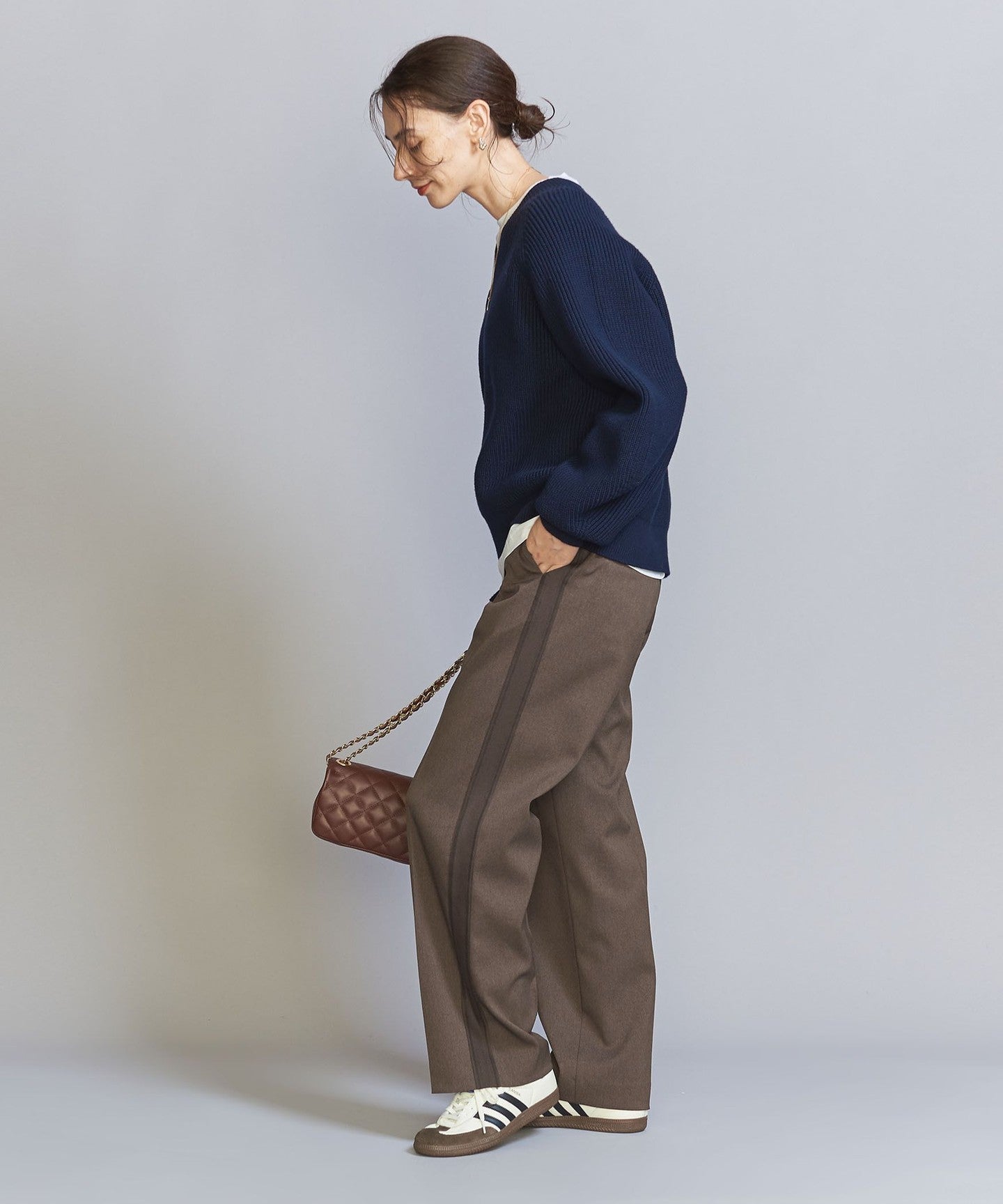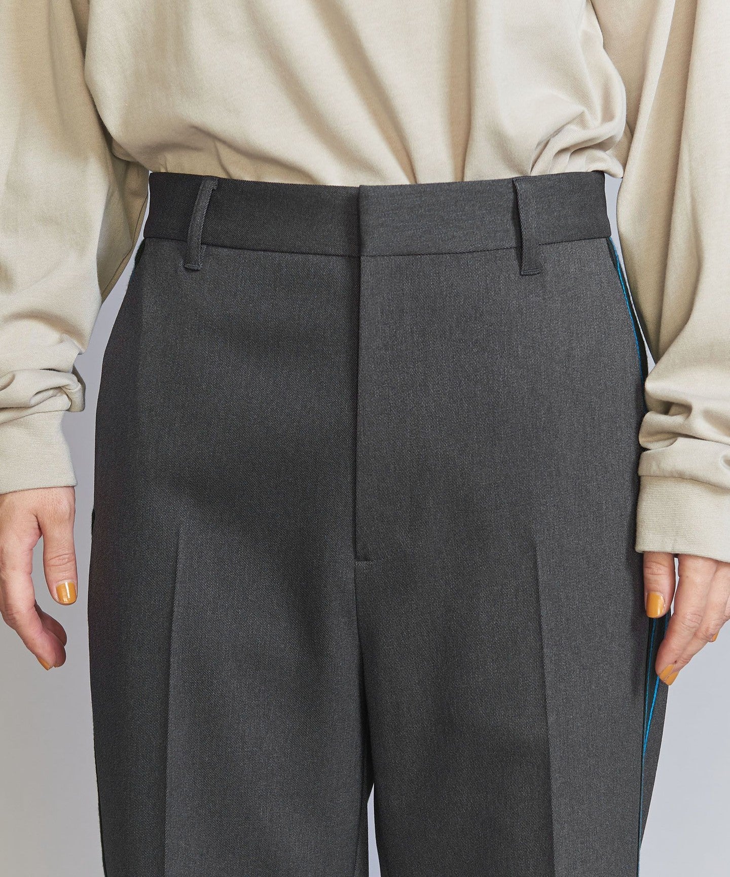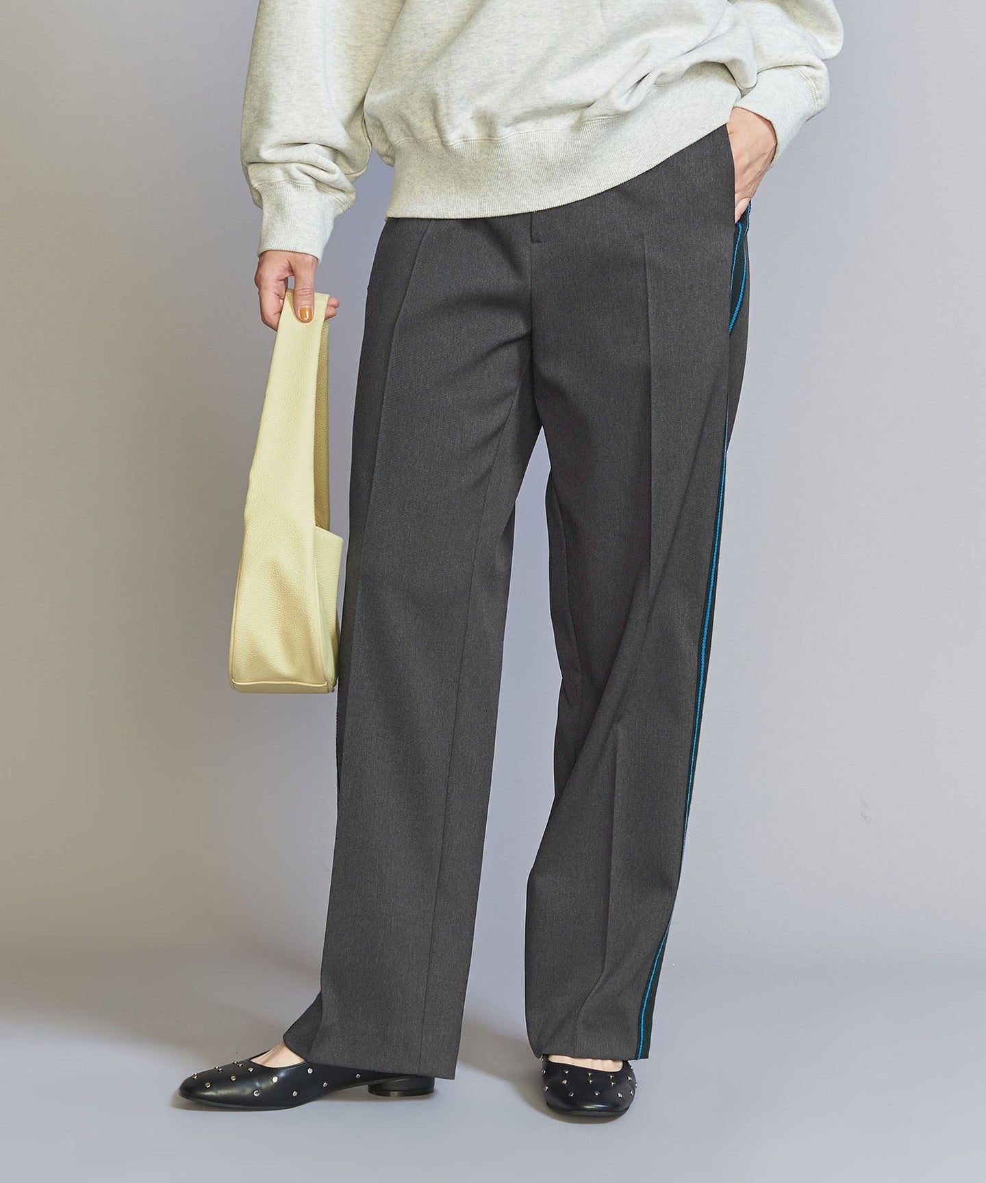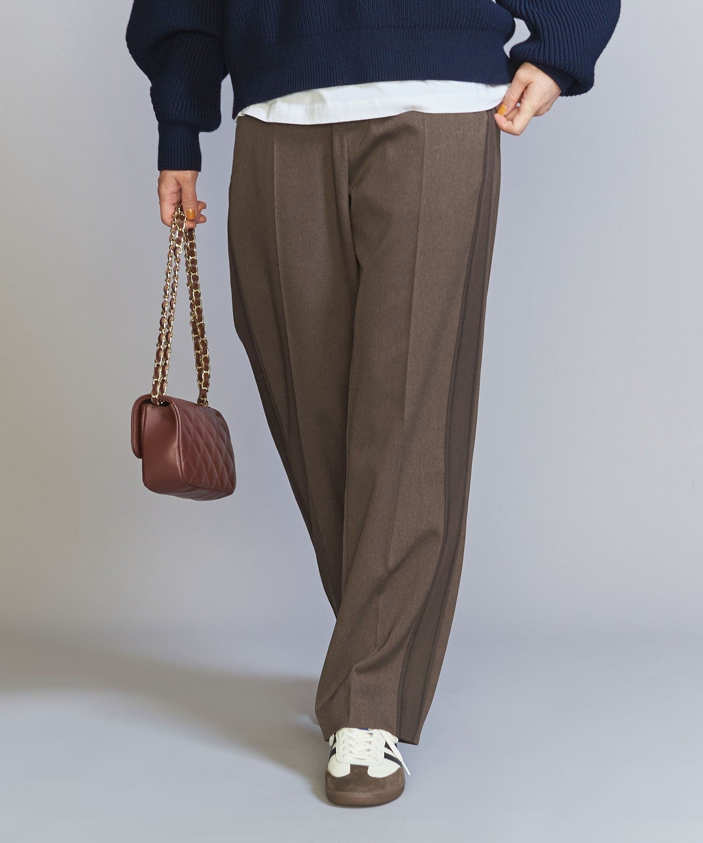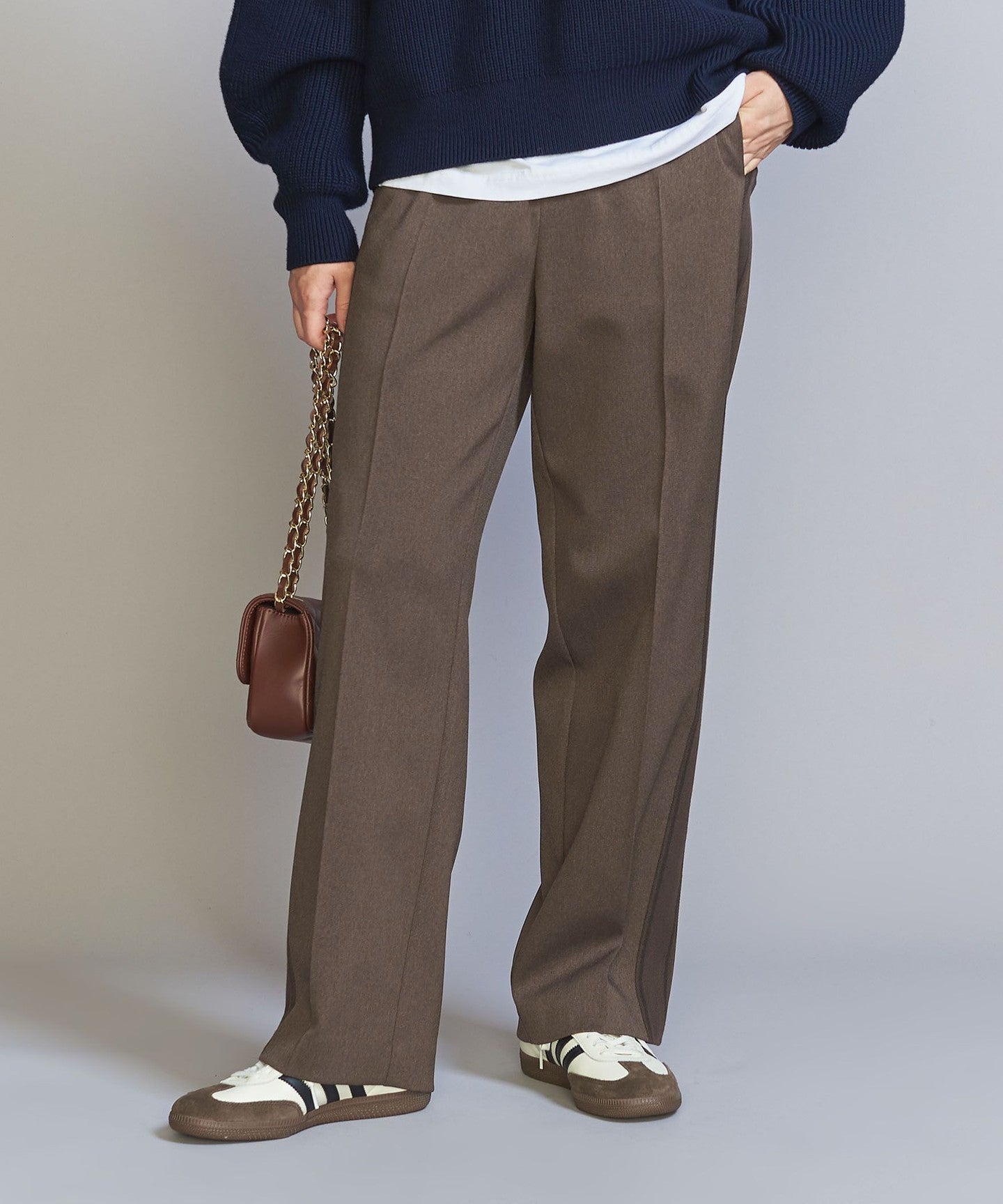 The slightly high-waisted straight silhouette has a clean finish without pleats, making it a design that is not too casual and easy for adults to wear.