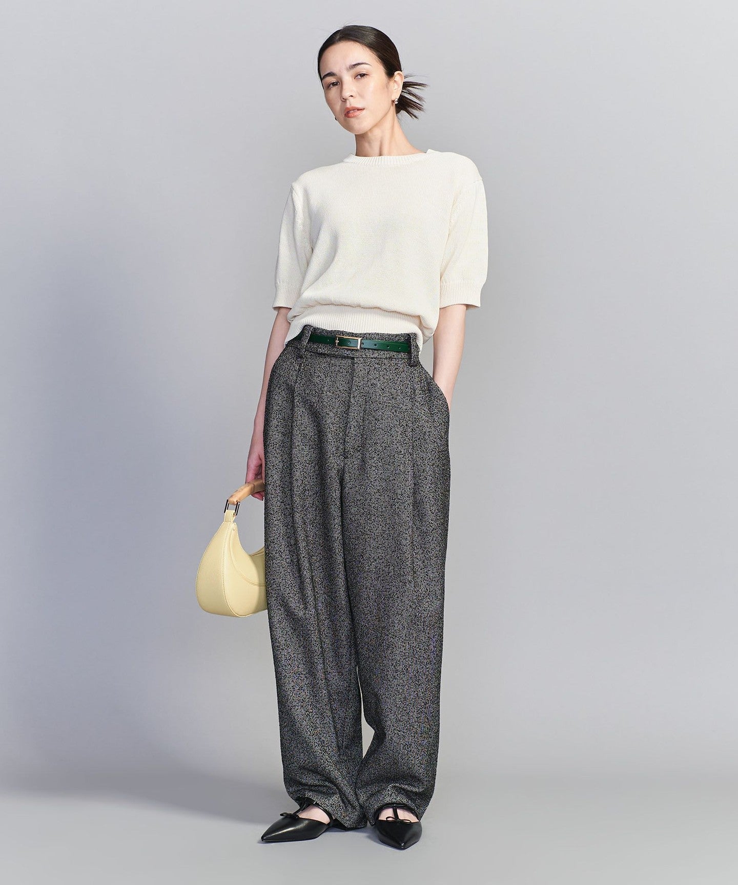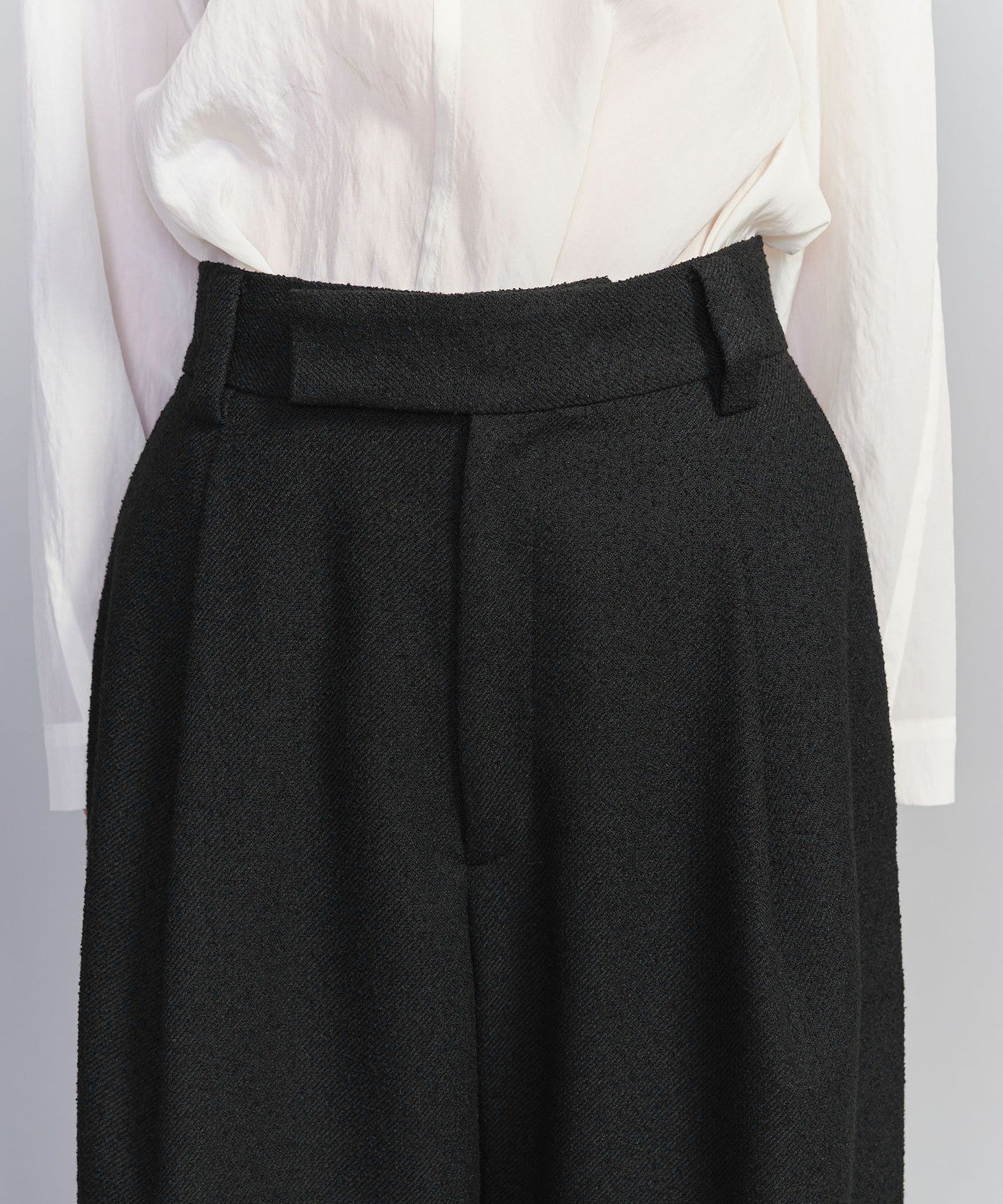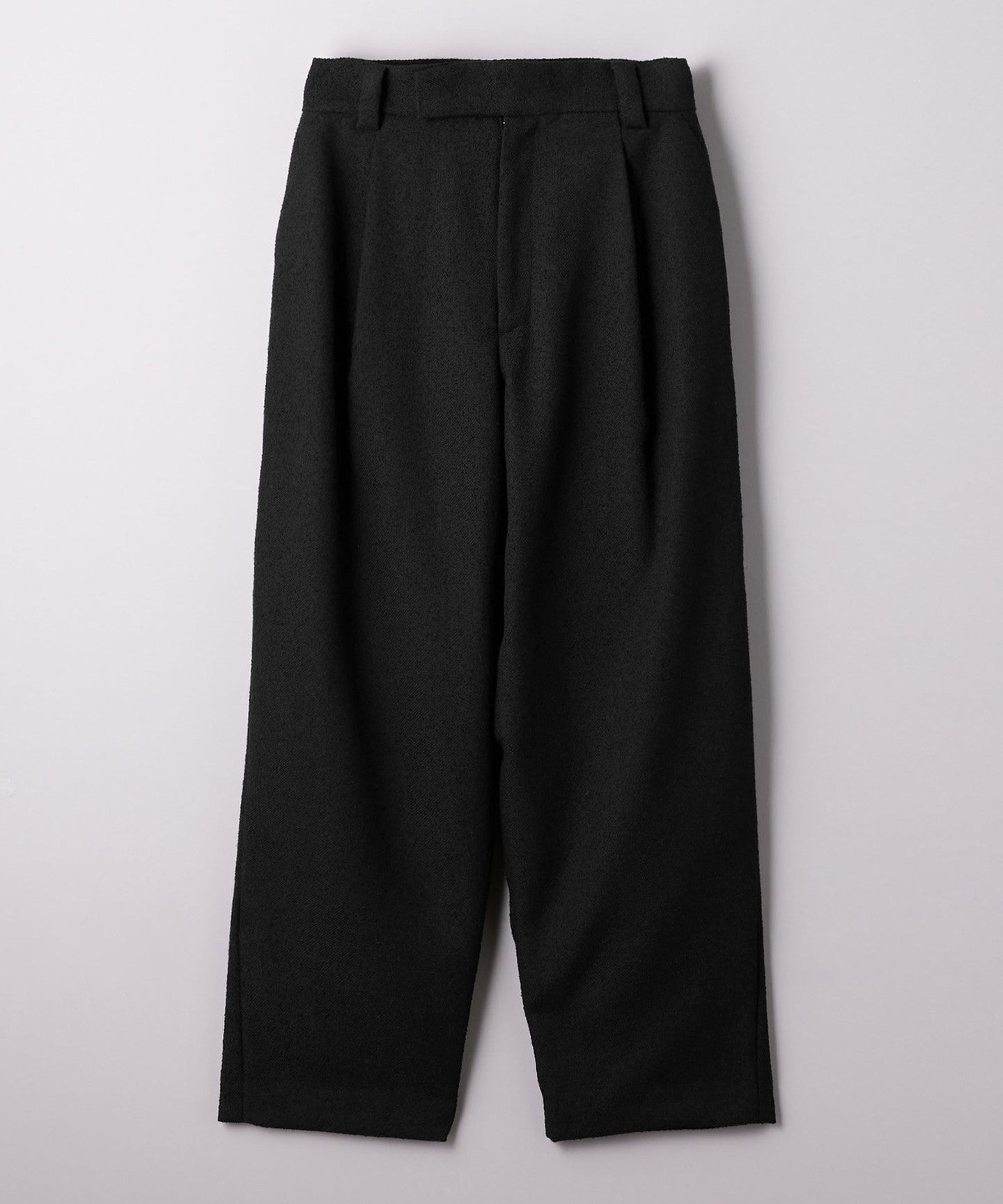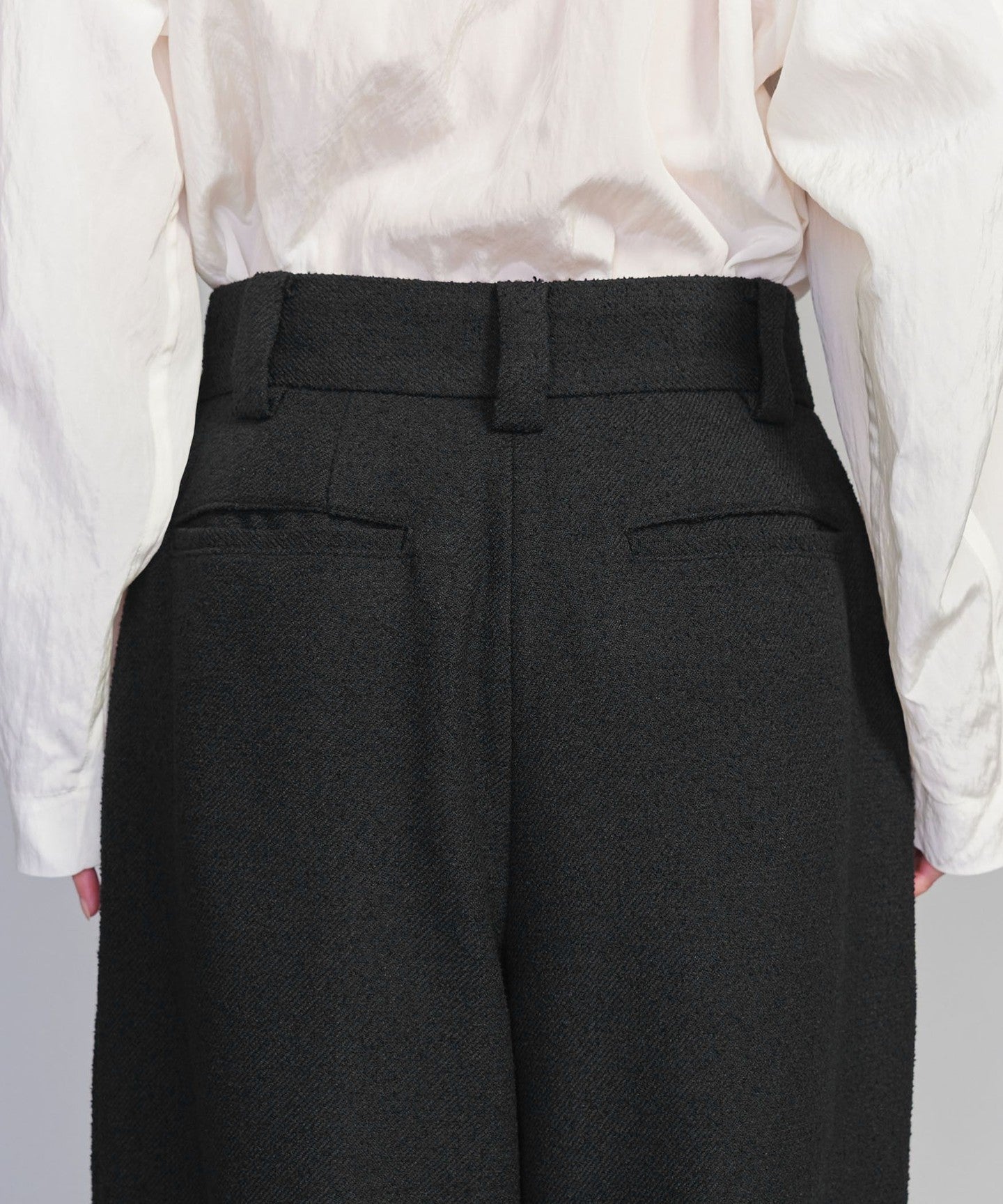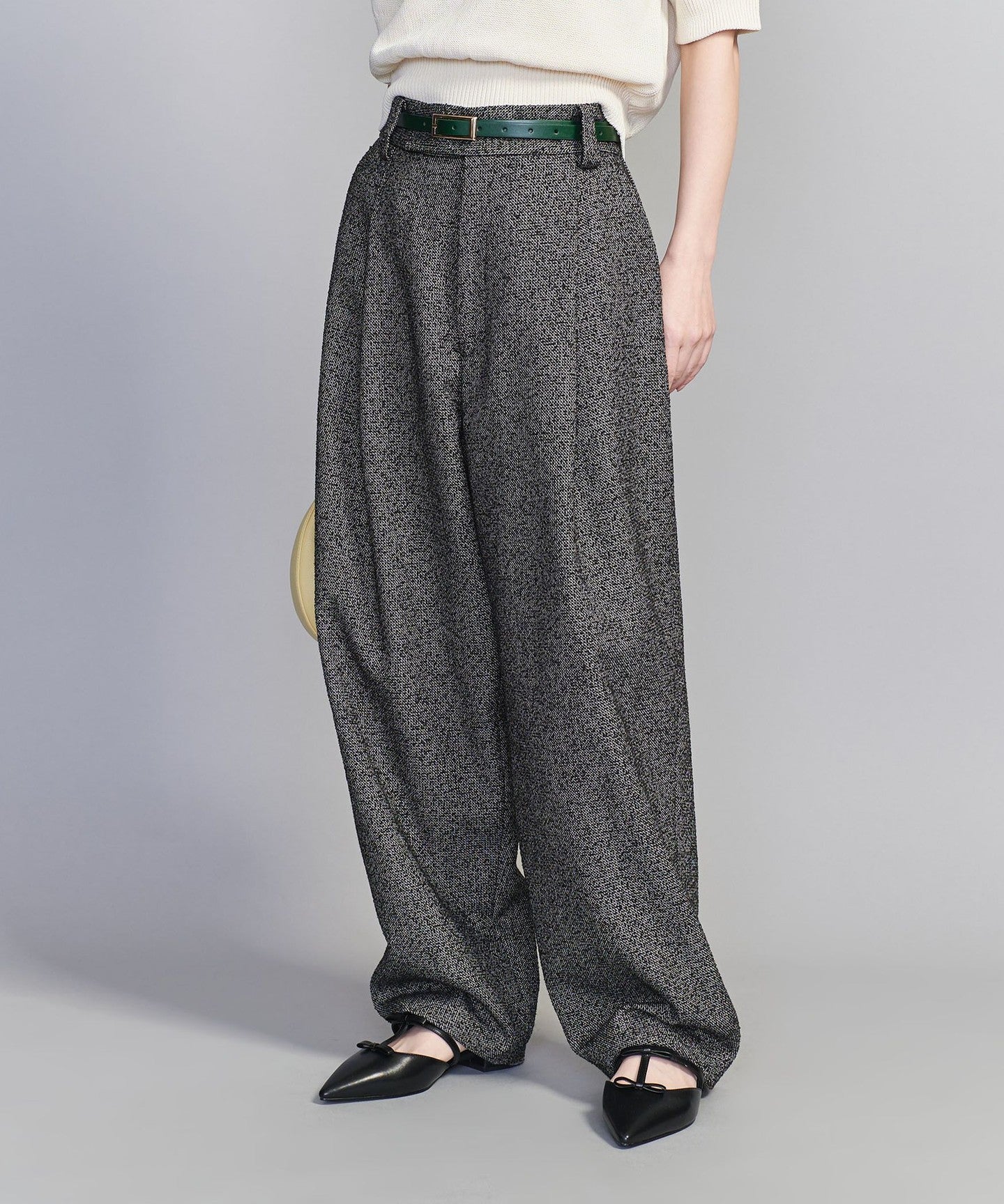Tapered silhouette pants featuring a textured tweed-like fabric.