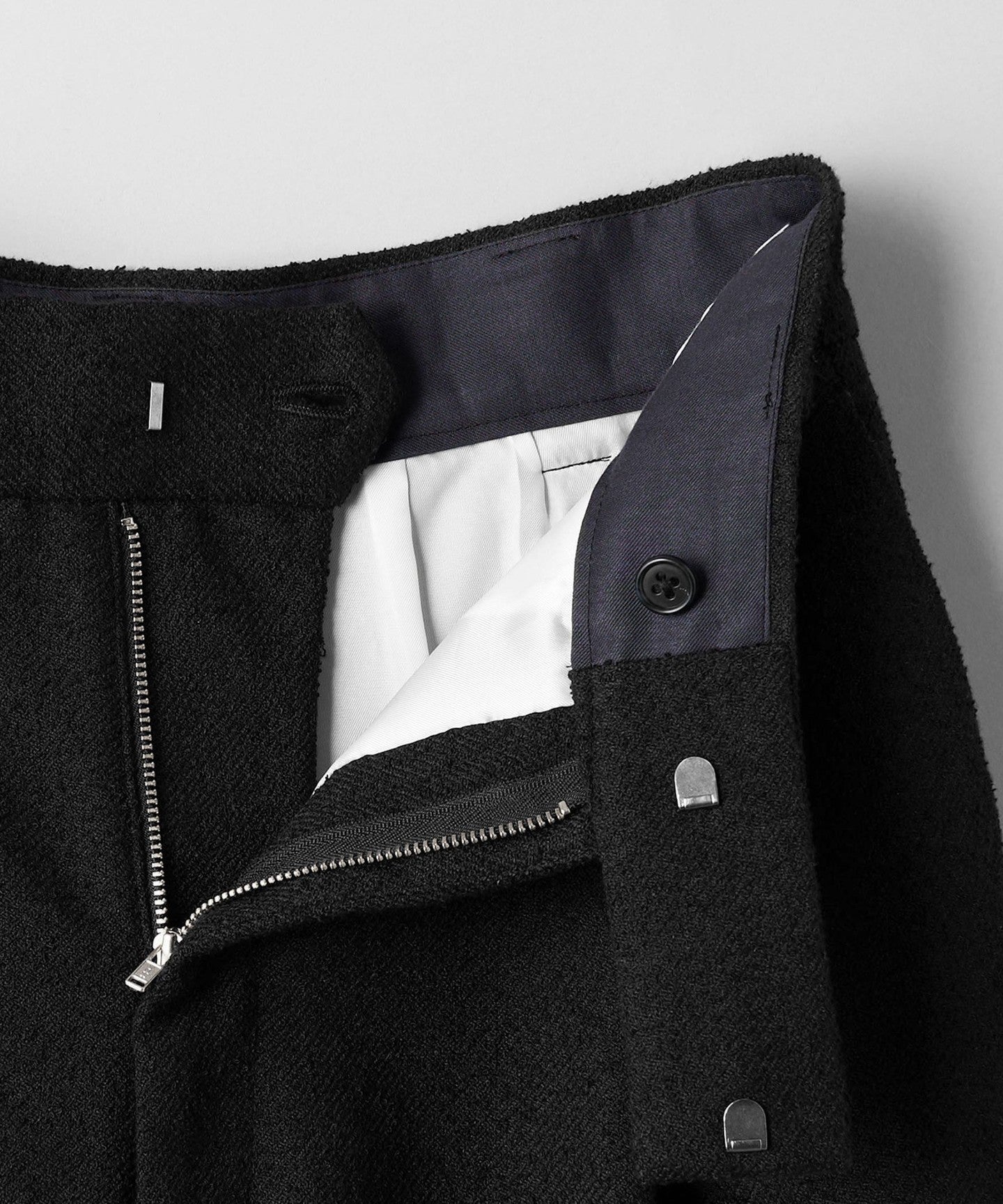 With its simple design that makes the most of the tweed-like texture of the material, this is a piece that can be worn in a wide range of situations, from work and ceremonies to everyday use.