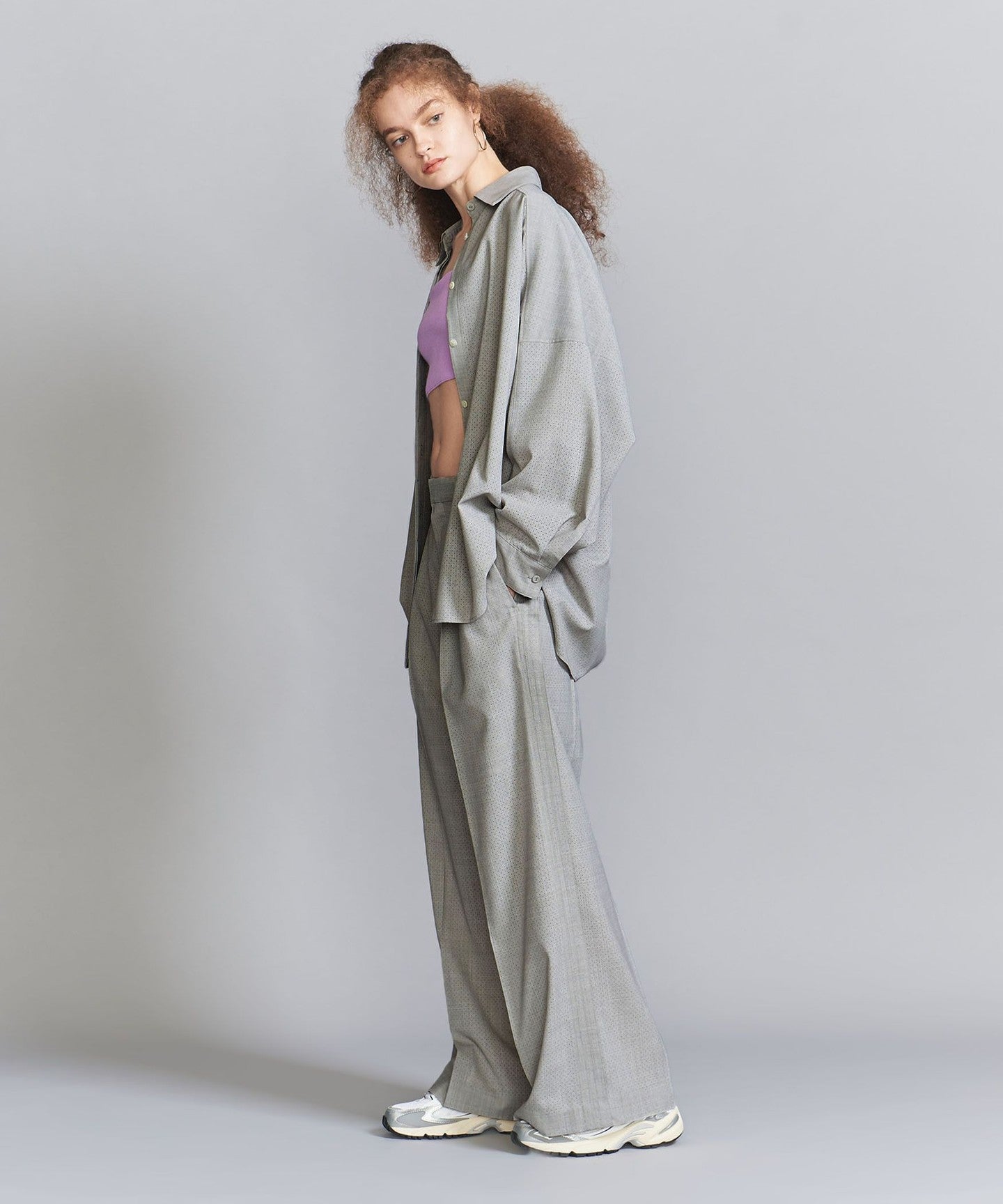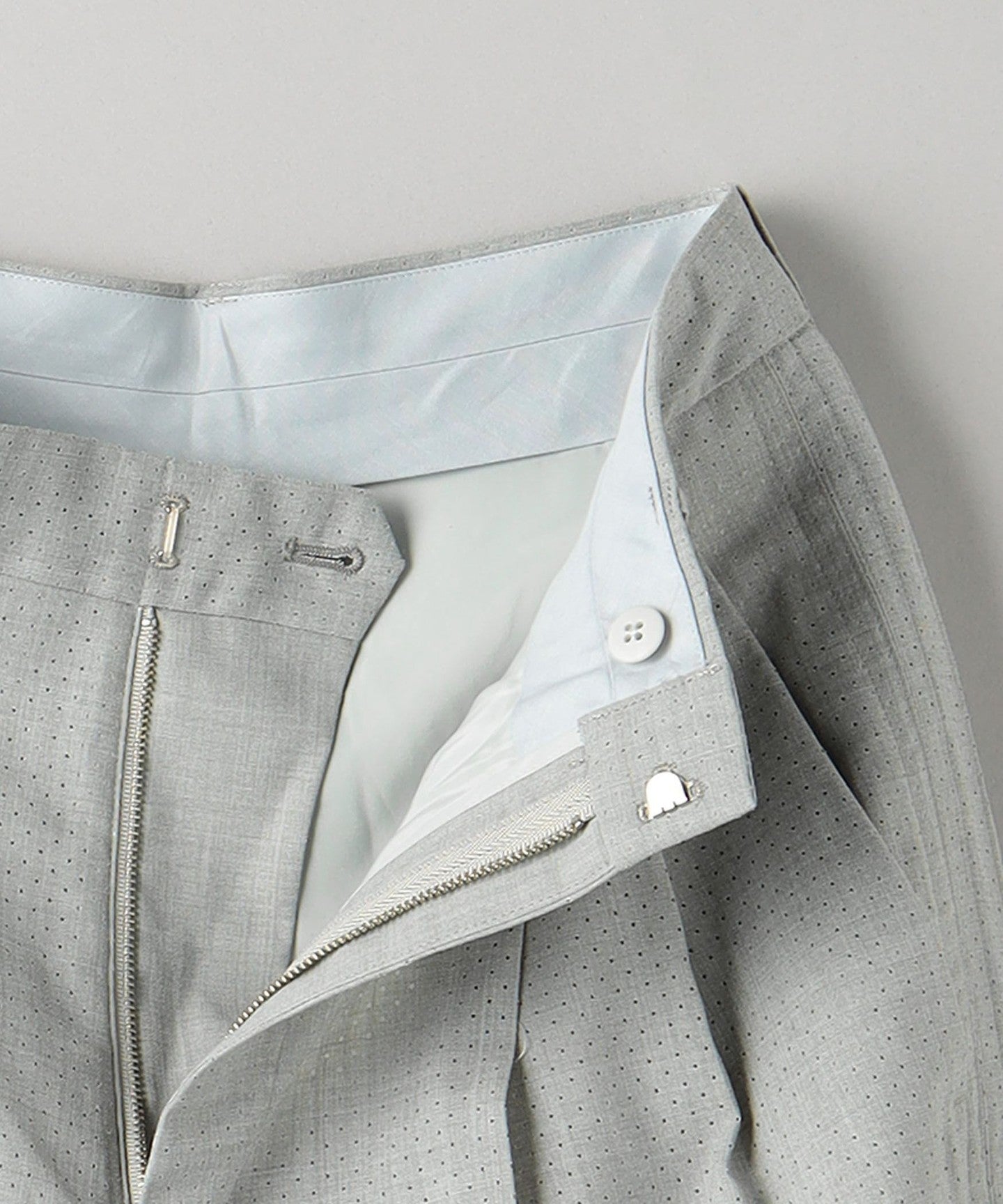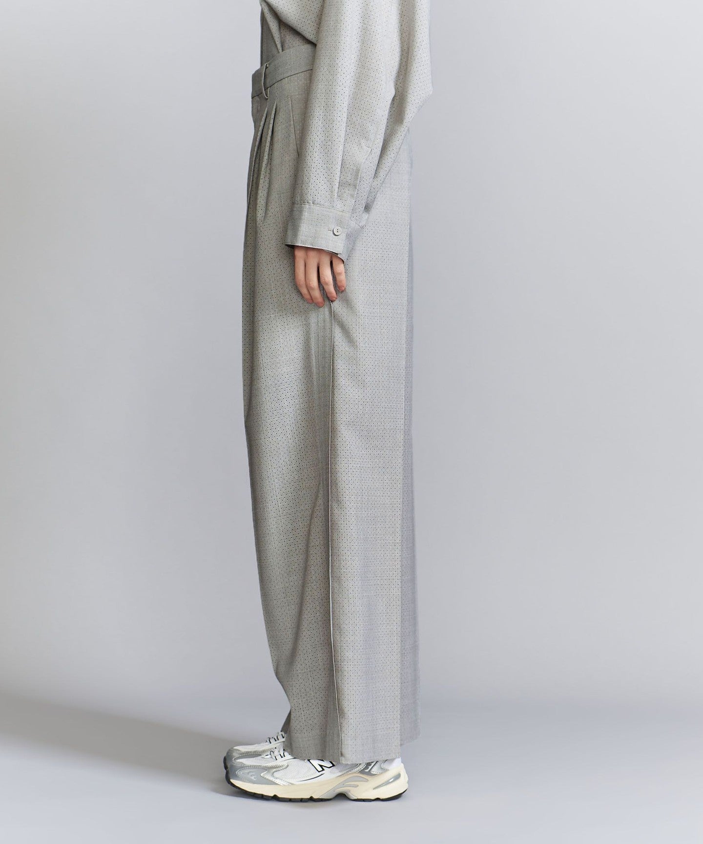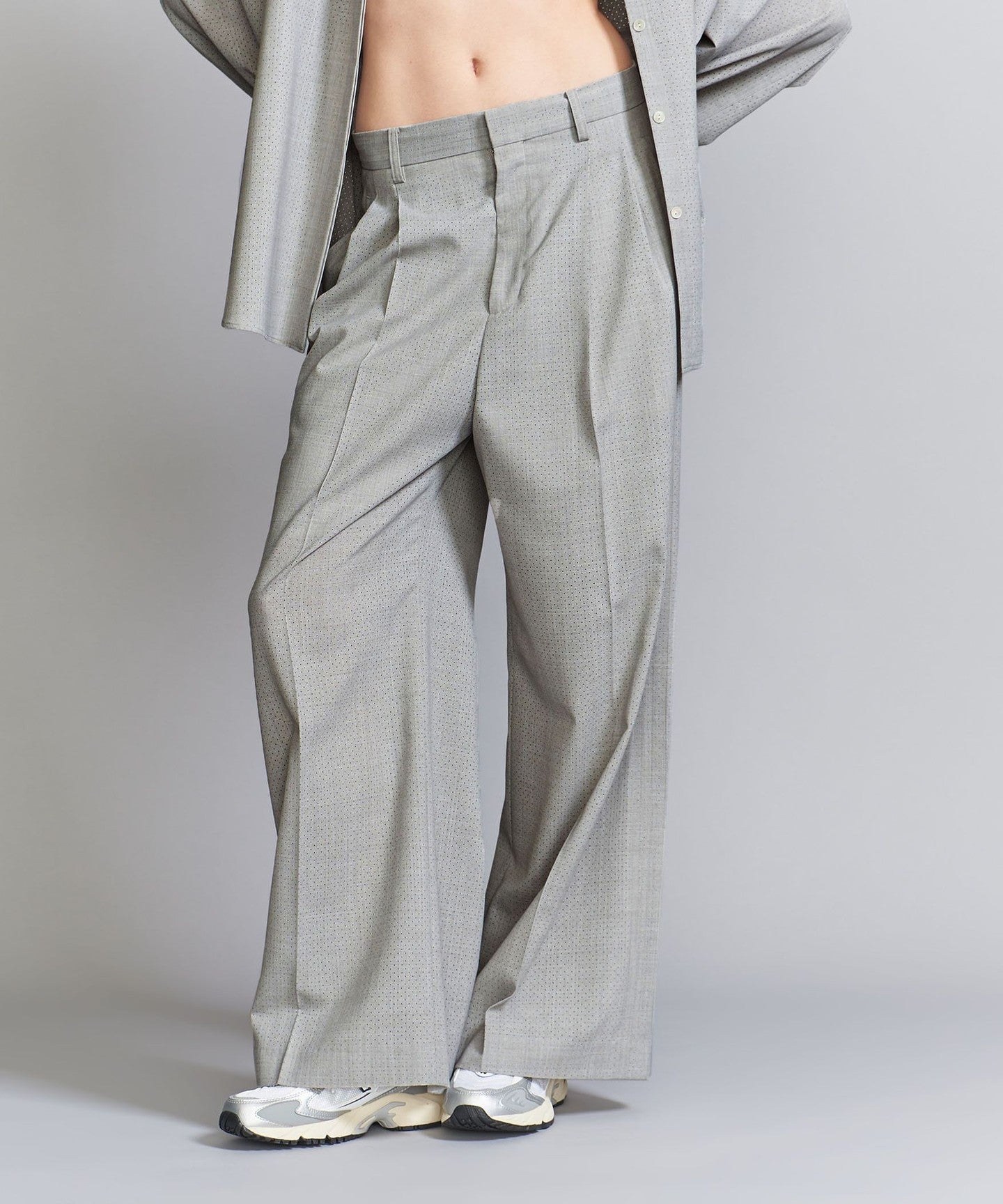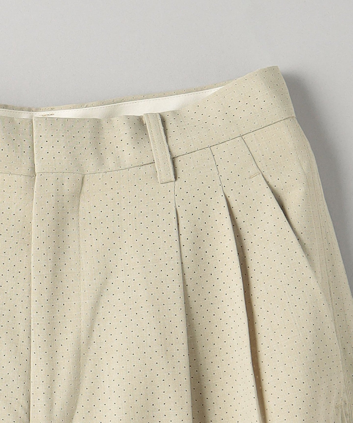 These are two-pleat pants with a distinctive men's-like texture.