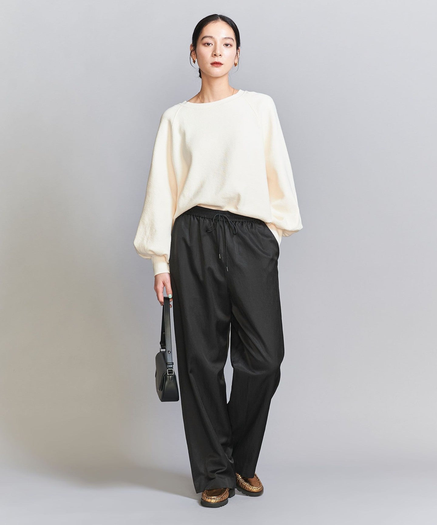 It goes well with a wide range of styles, from casual styles paired with compact cut-and-sew tops to neat blouses.