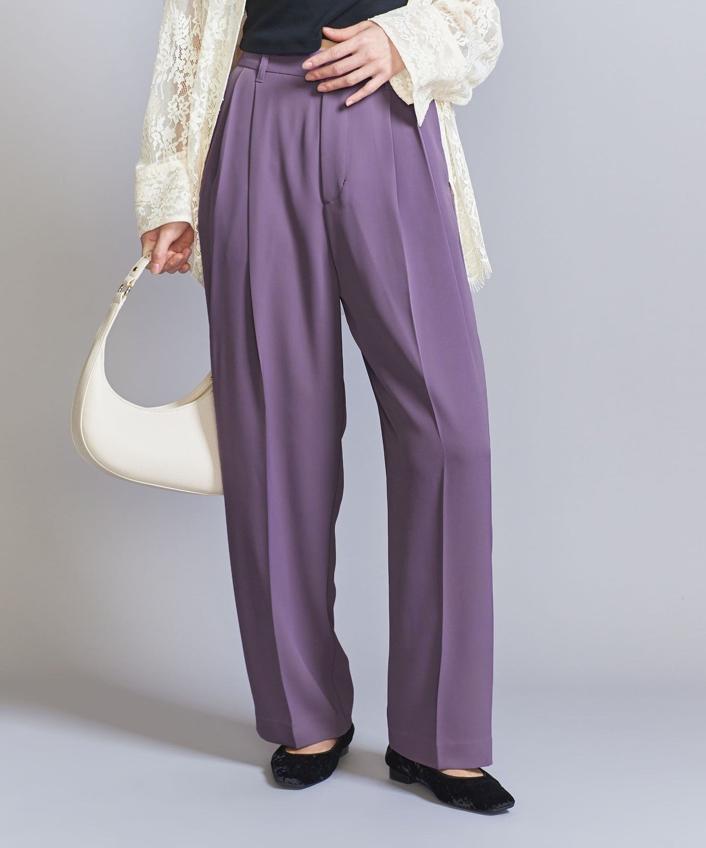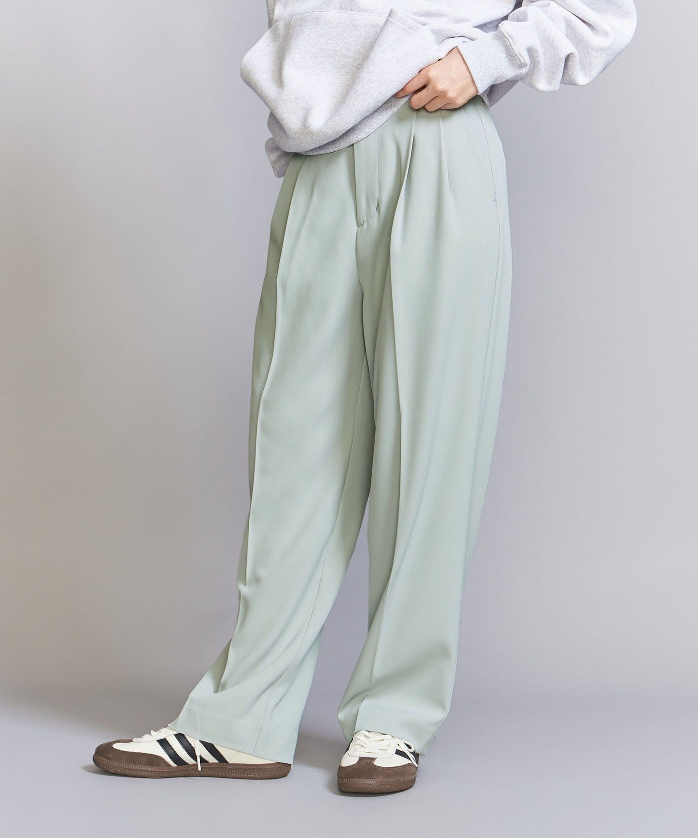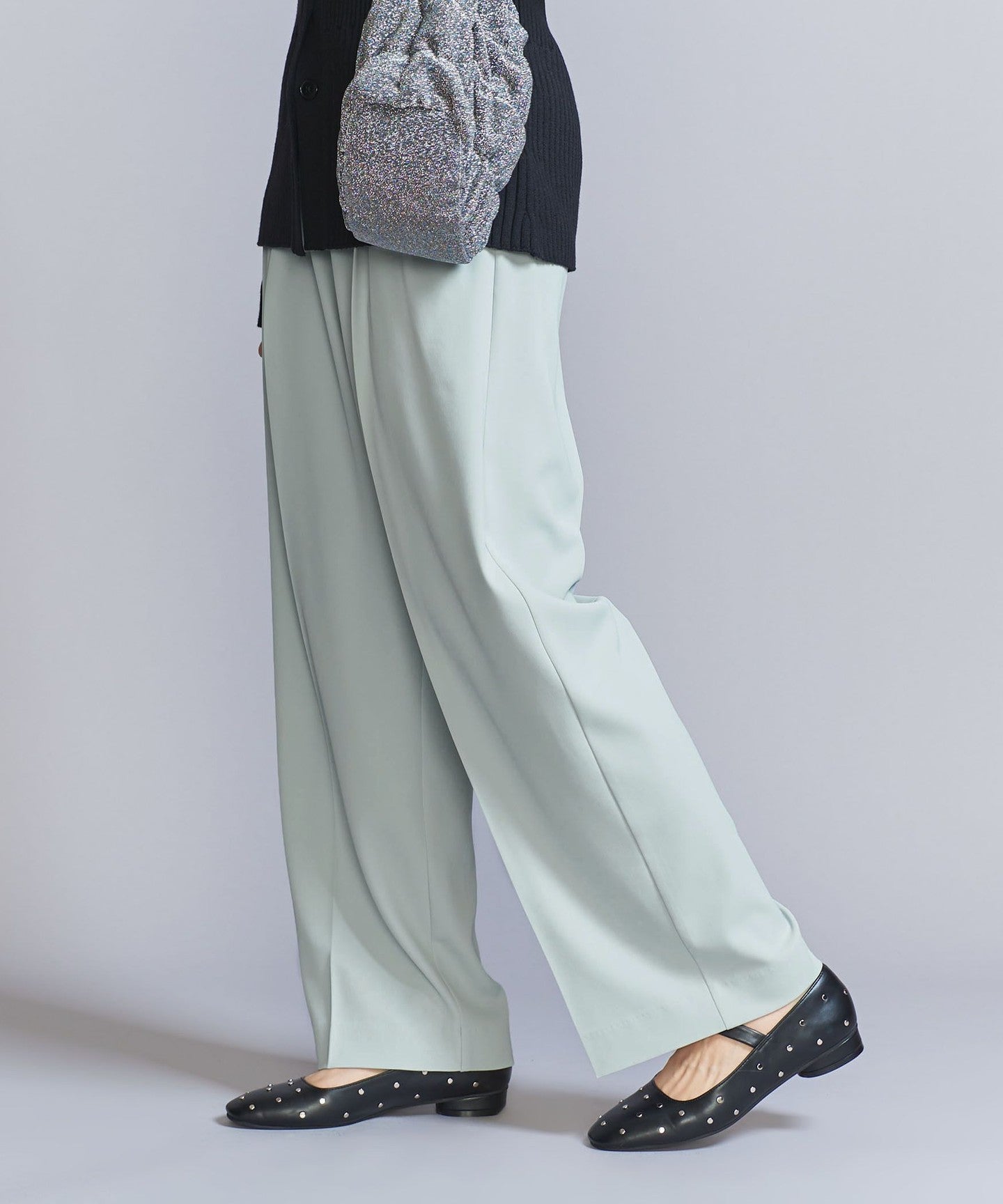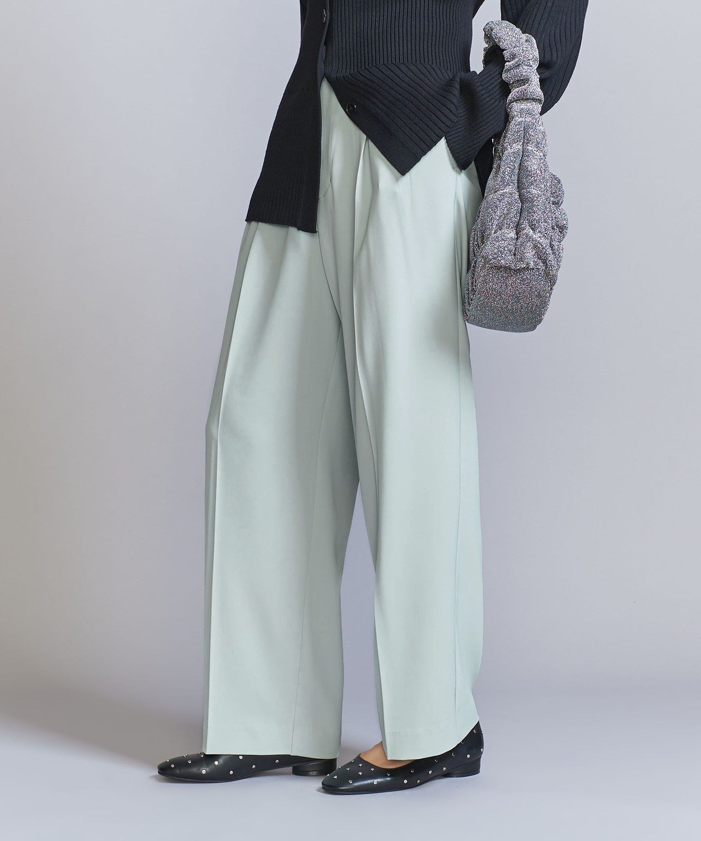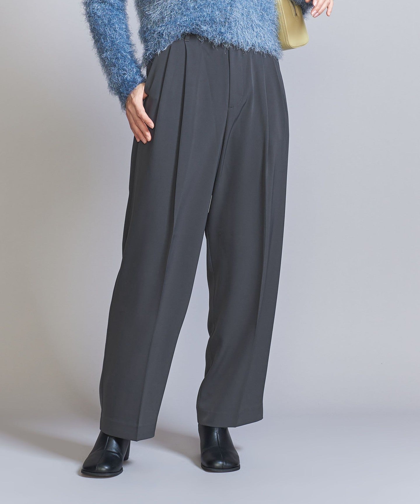 These tucked wide pants have just the right amount of room and a smooth fabric texture.