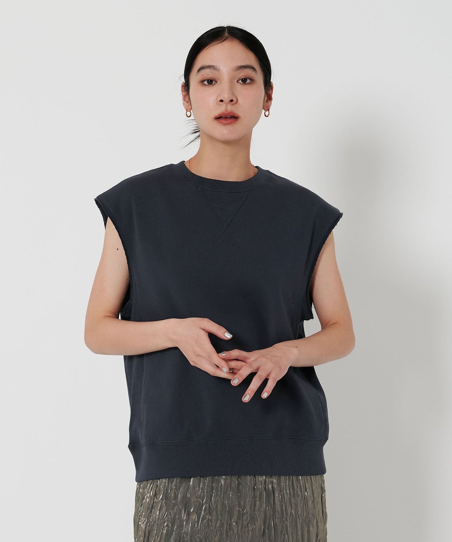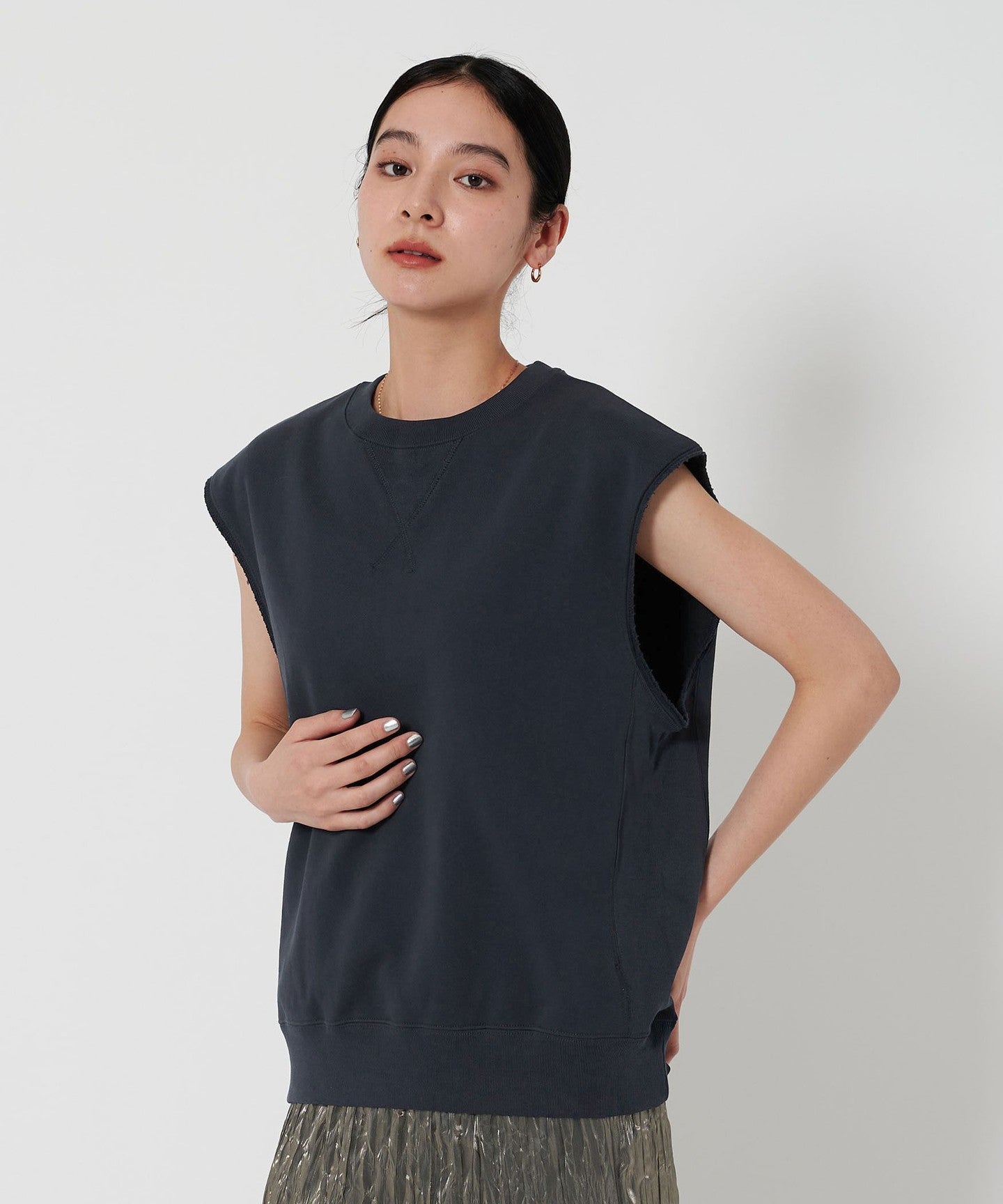 A sleeveless sweatshirt with an oversized silhouette that's perfect for the current mood